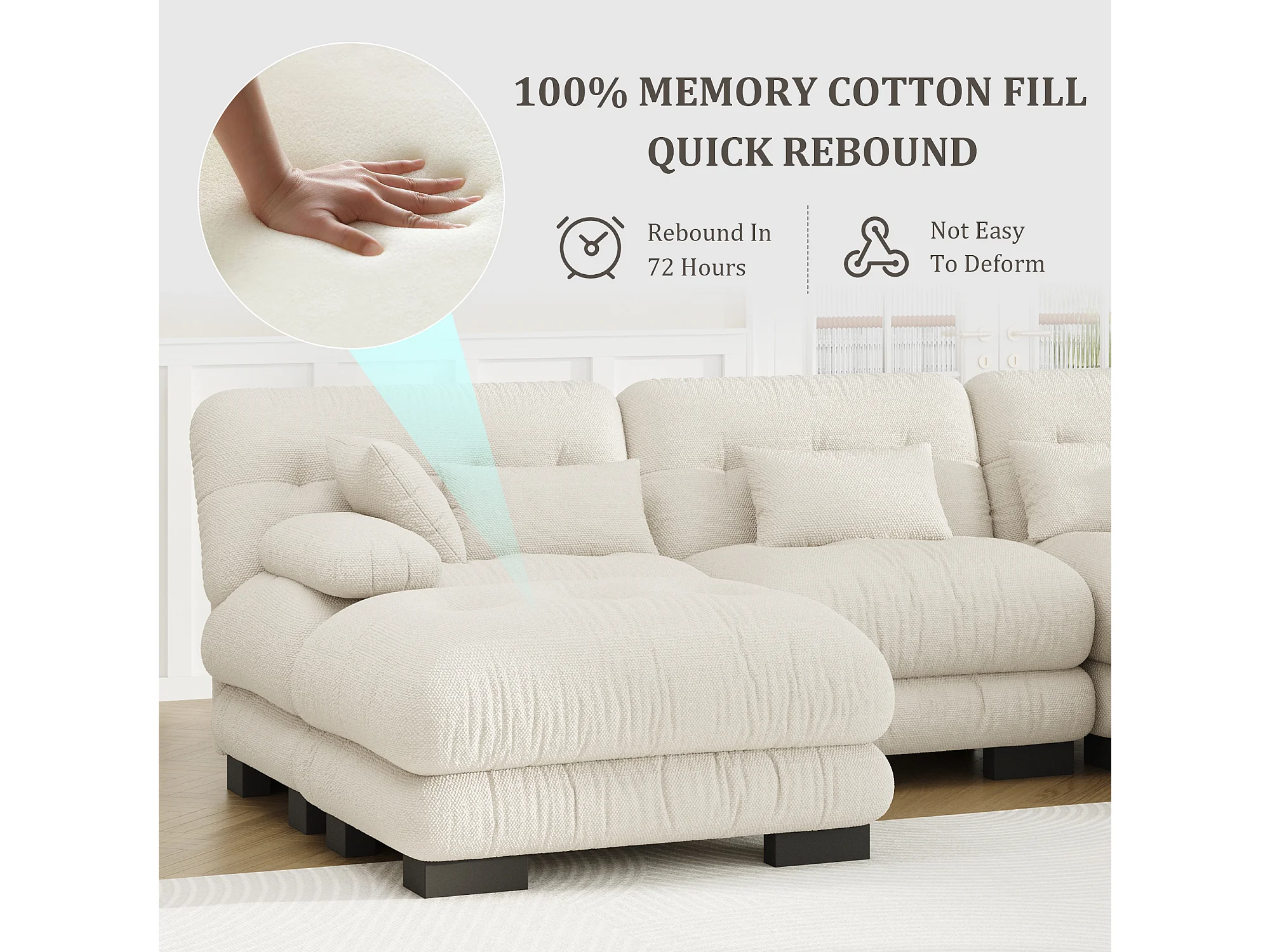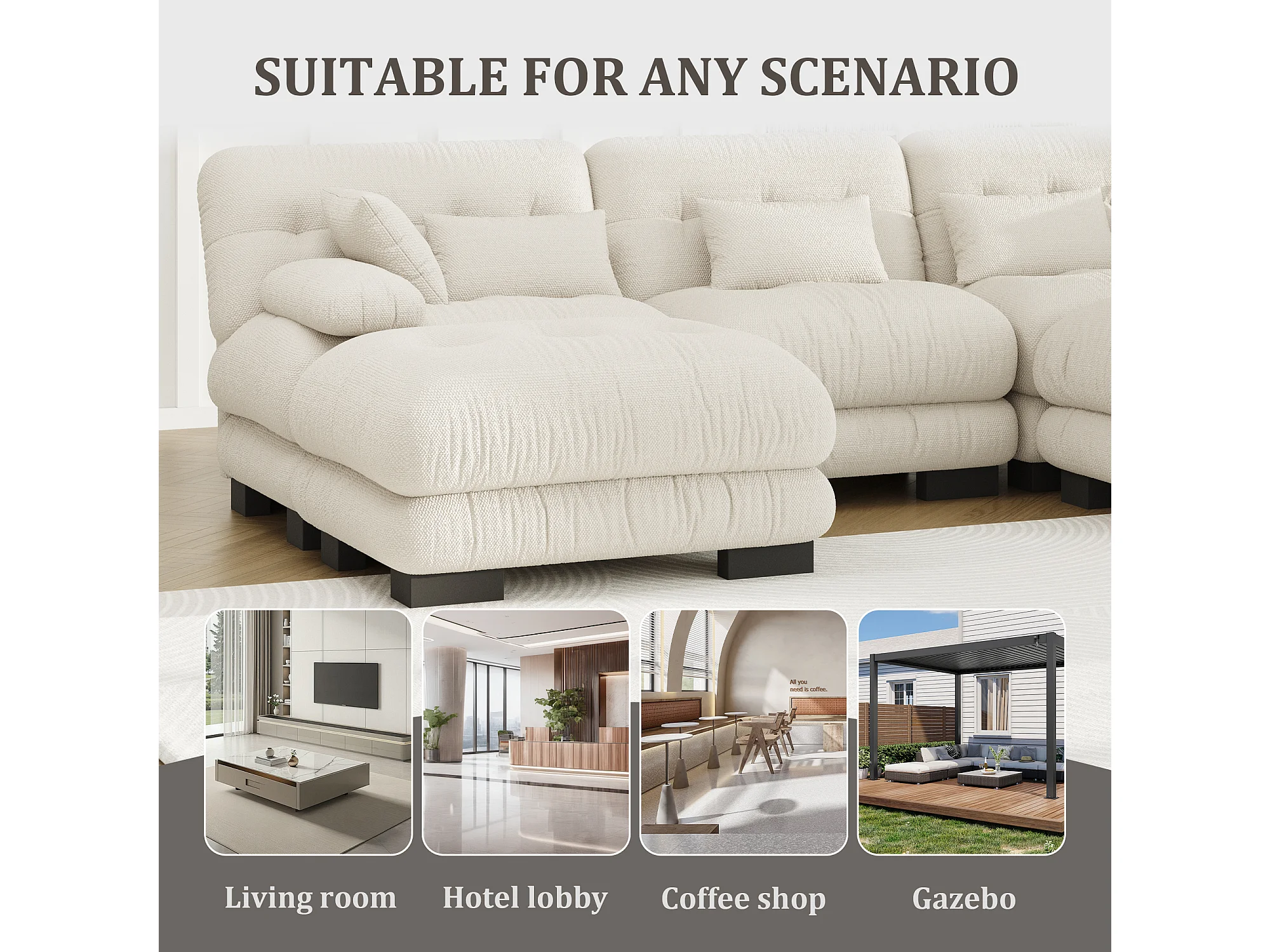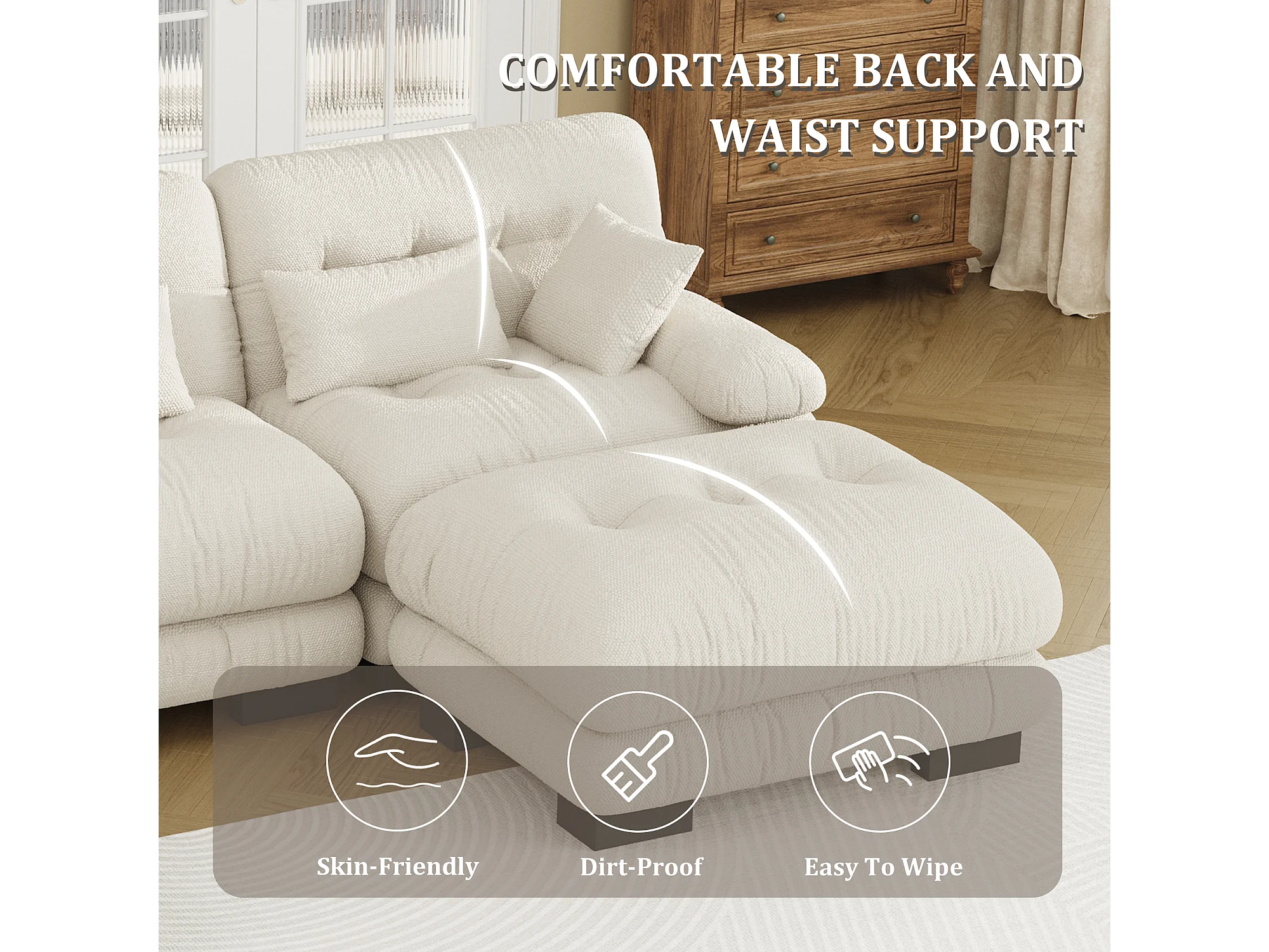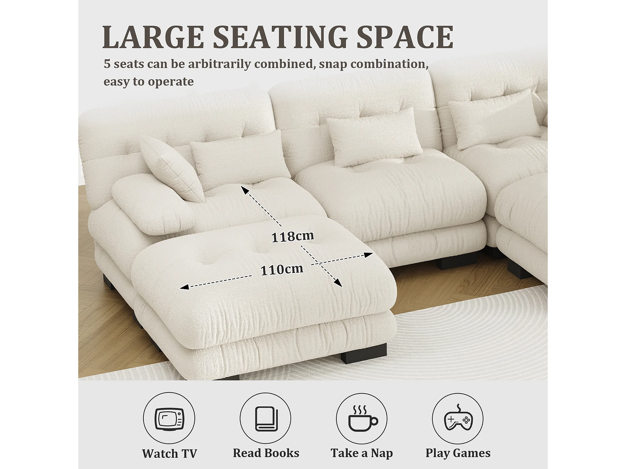 Canapé 5 Places en Velours Beige - canapé d'angle modulable - 300 x 143 x 80 cm - Confort et Douceur Absolus pour Votre Salon