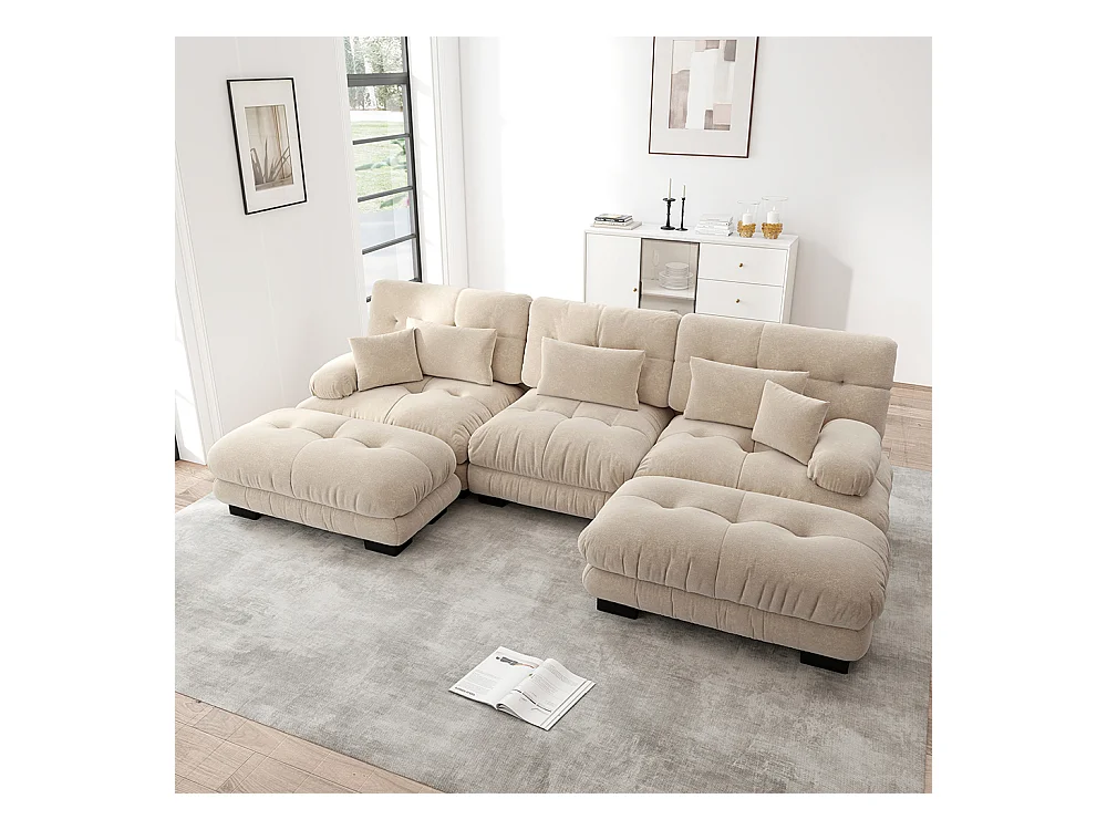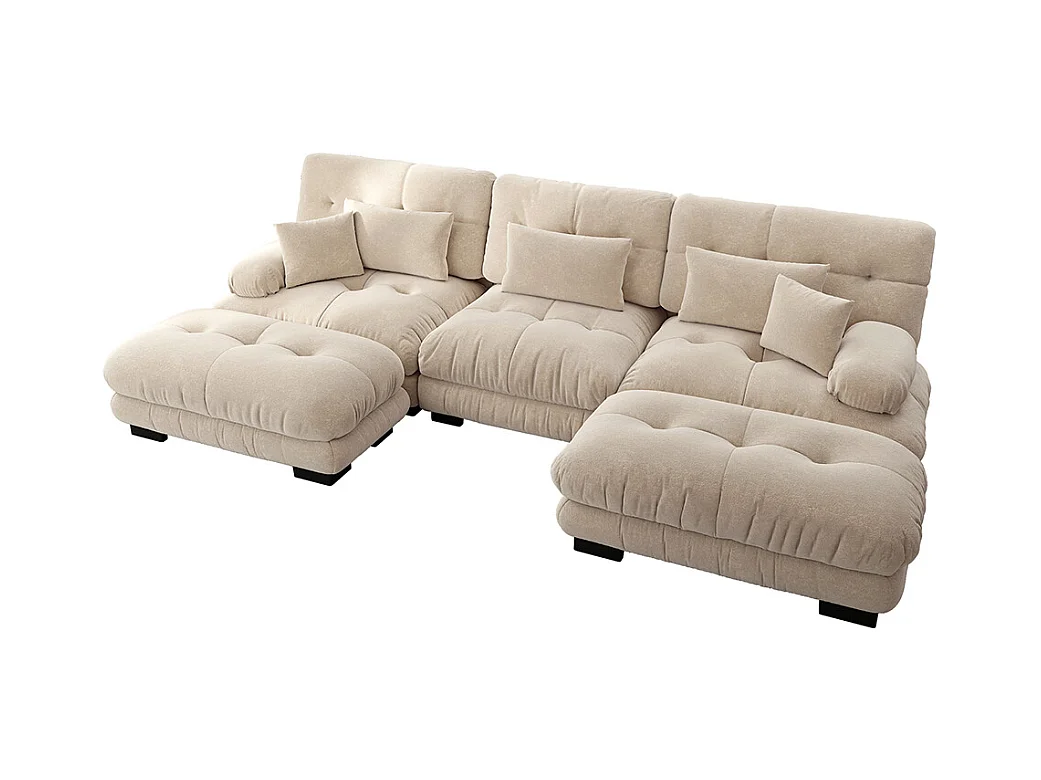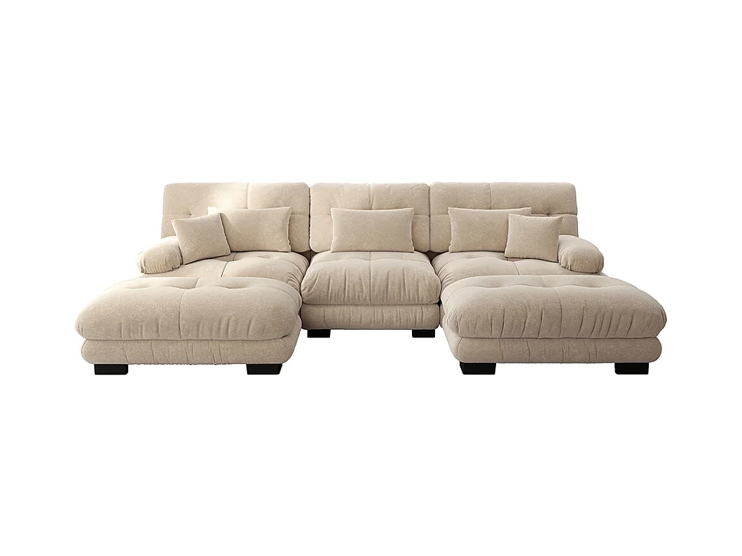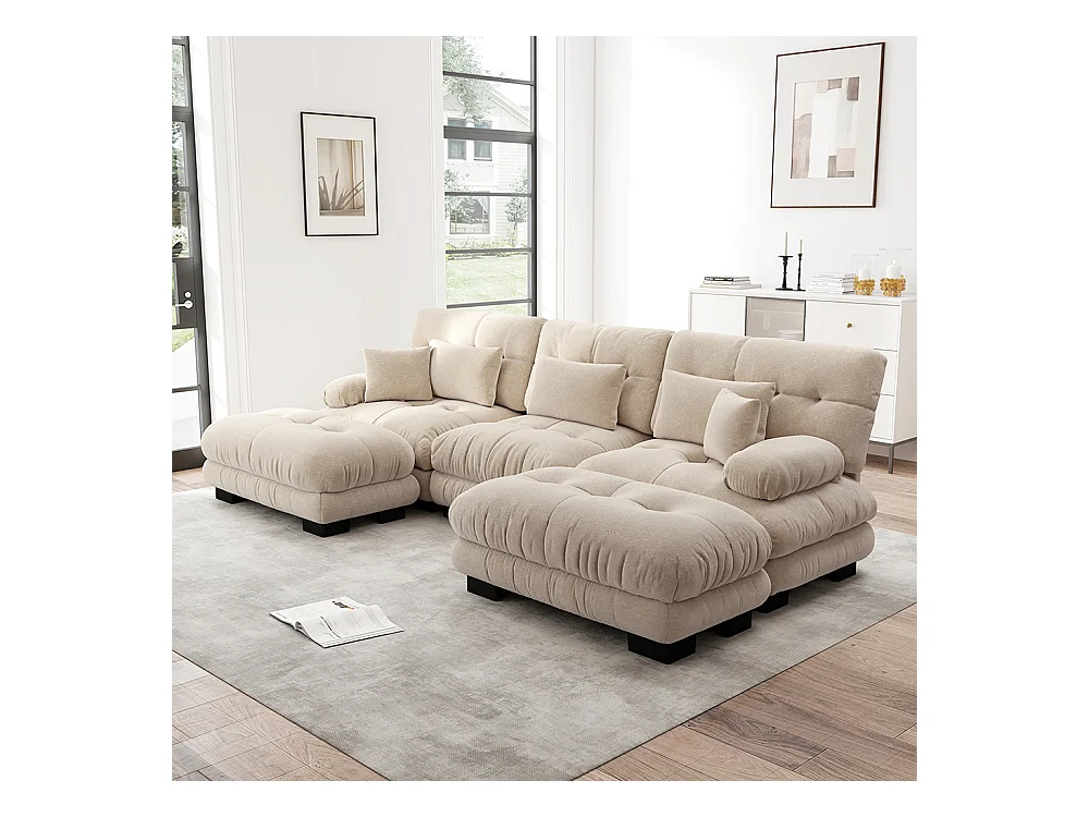 Canapé nuage extra-large en forme de U, canapé-lit convertible avec repose-pieds, chenille, beige
