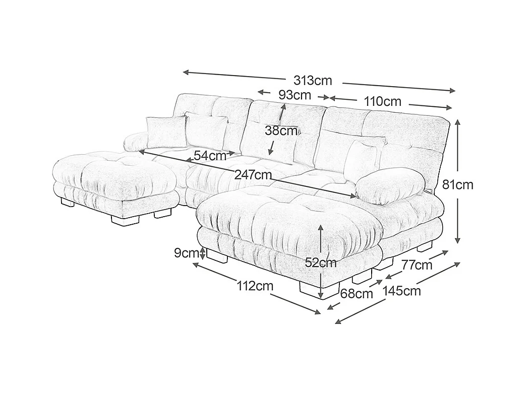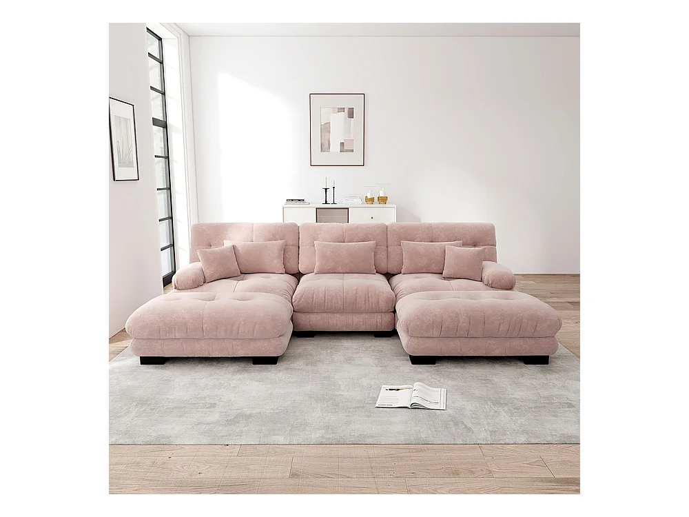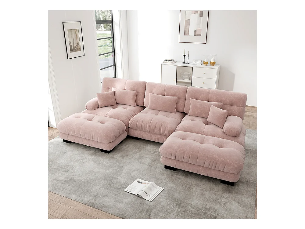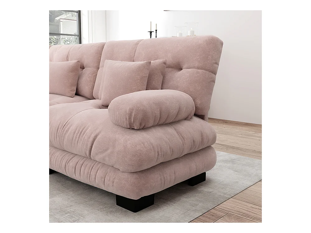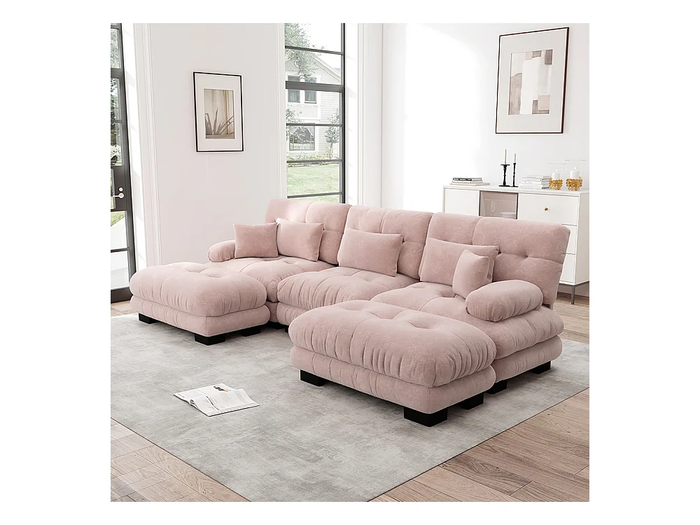 Canapé nuage extra-large en forme de U, canapé-lit convertible avec repose-pieds, chenille, rose