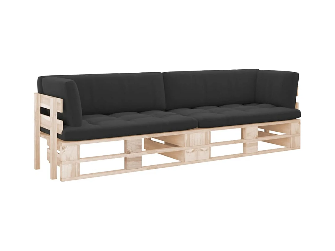 Canapé palette 2 places avec coussins Bois de pin imprégné