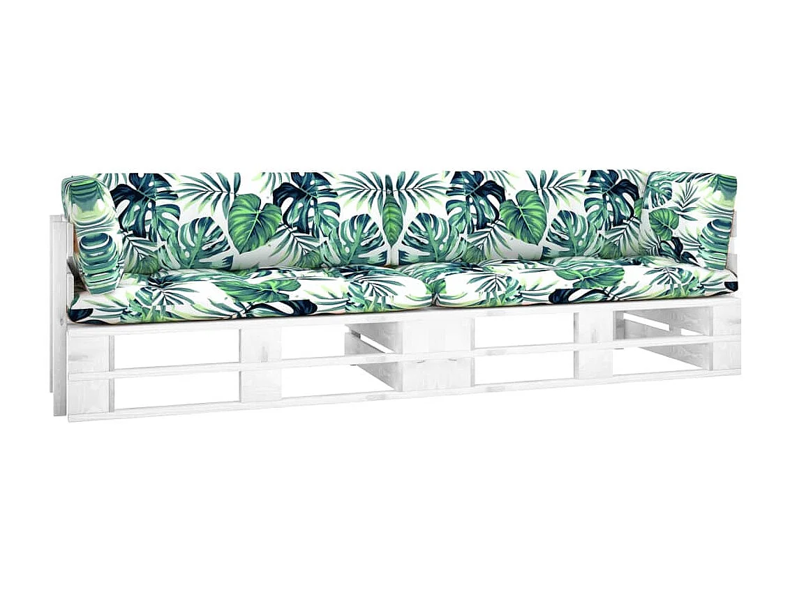 Canapé palette 2 places avec coussins Pin imprégné de blanc