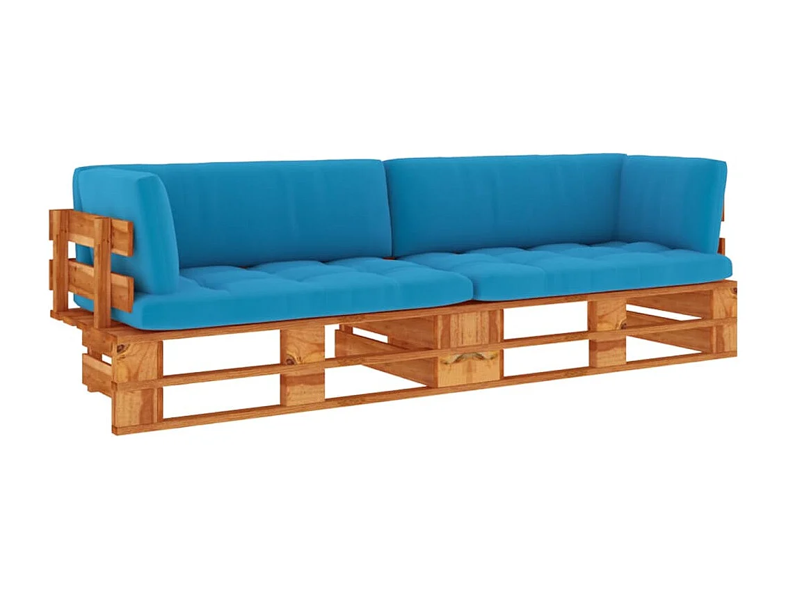 Canapé palette 2 places et coussins Pin imprégné de marron miel