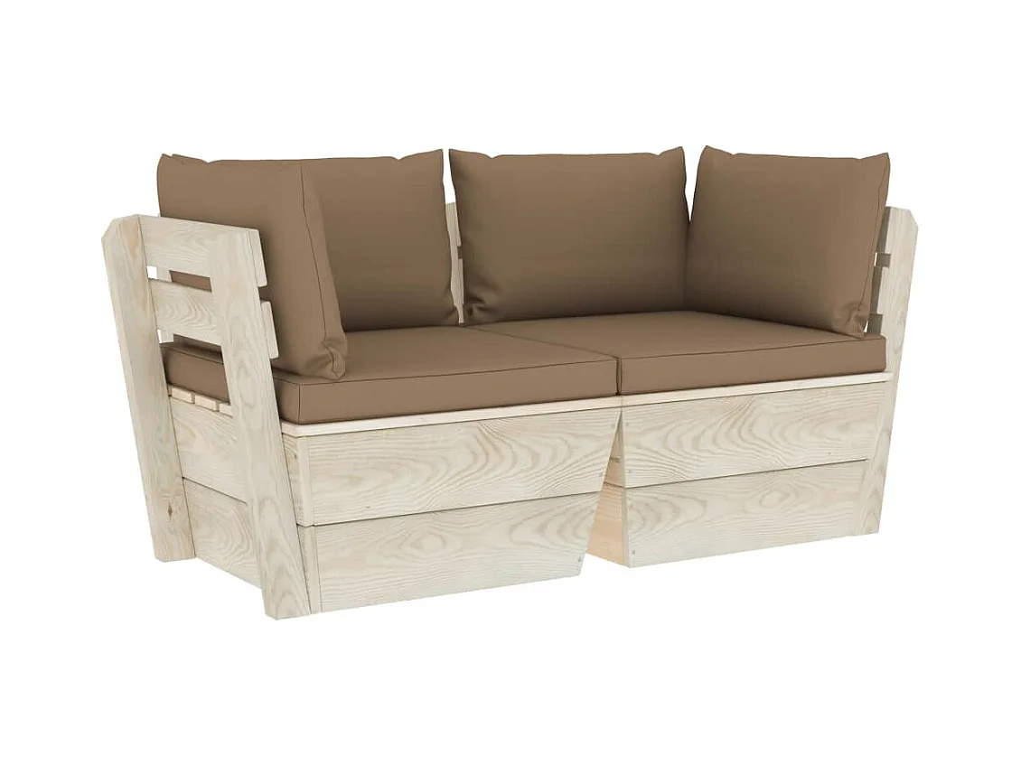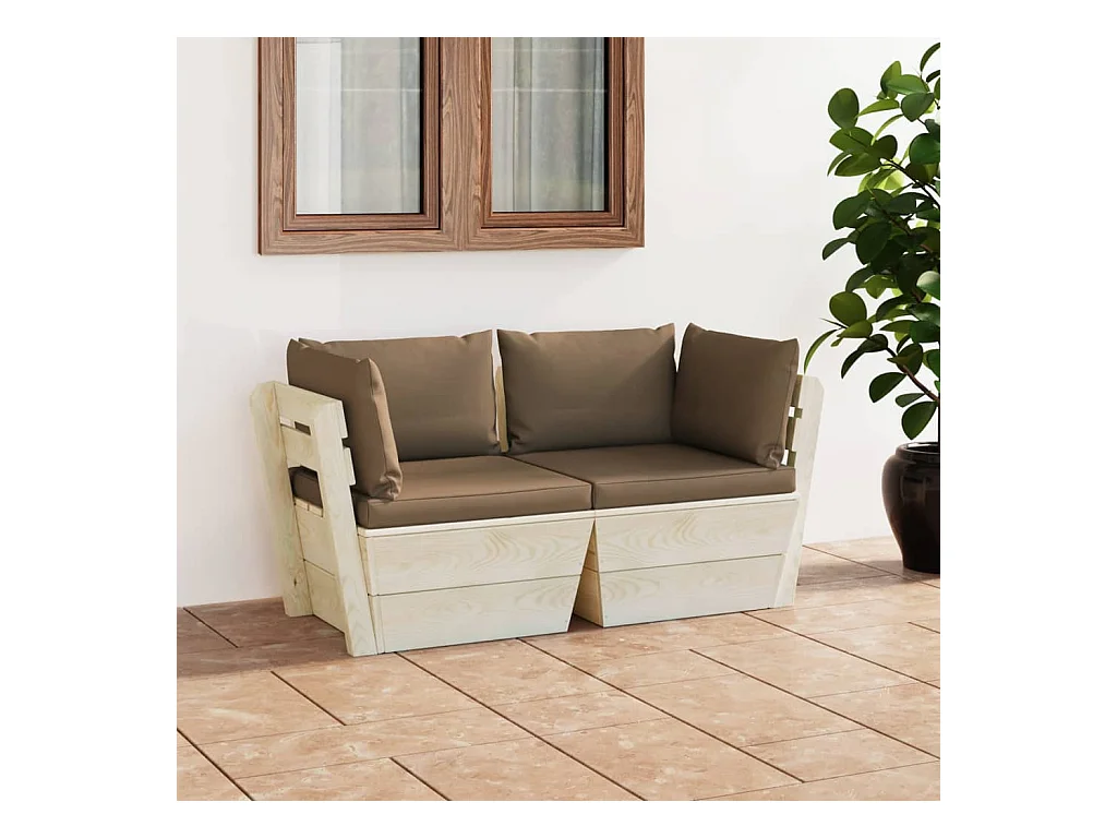 Canapé palette à 2 places de jardin avec coussins Bois d'épicéa 12