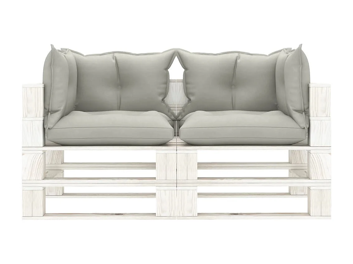 Canapé palette à 2 places de jardin avec coussins taupe Bois