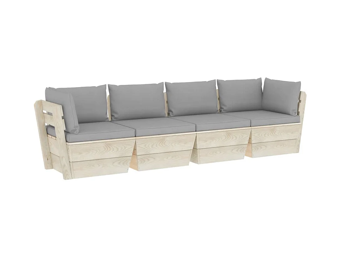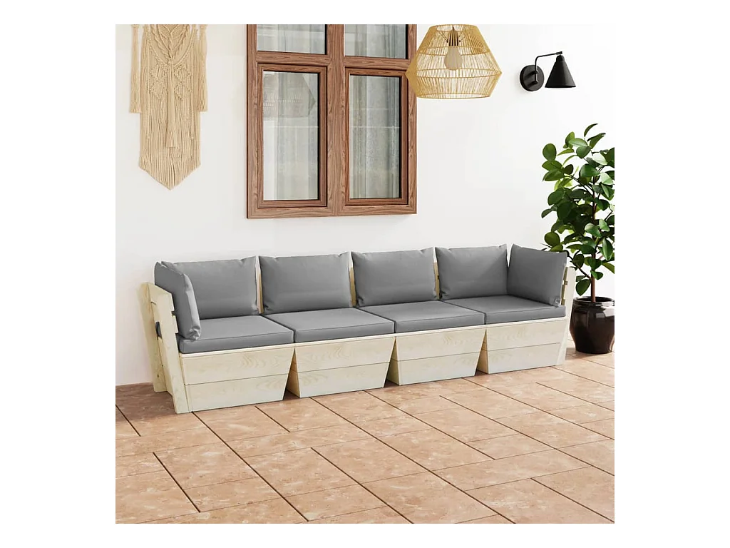 Canapé palette à 4 places de jardin avec coussins Bois d'épicéa