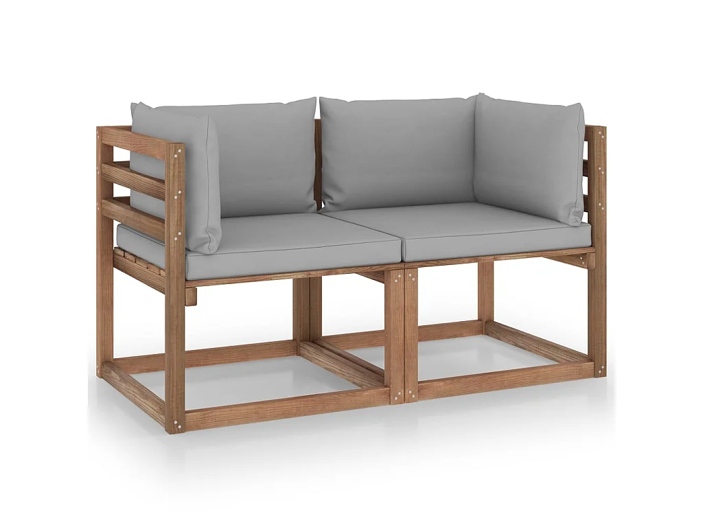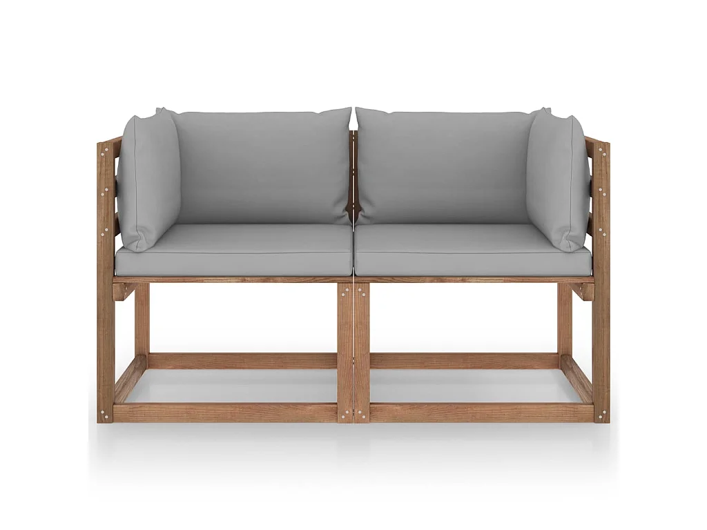 Canapé palette de jardin 2 places et coussins gris Pinède