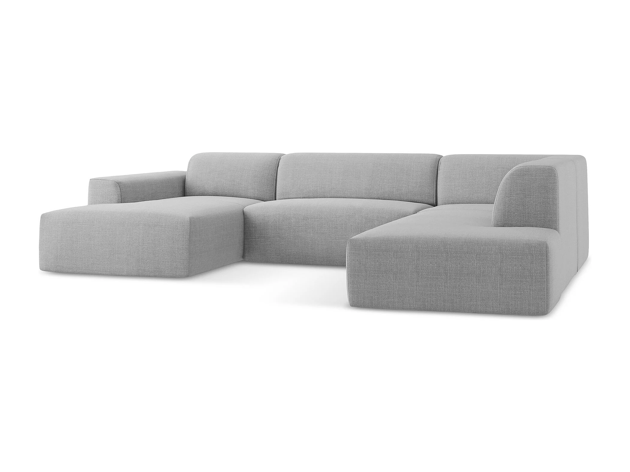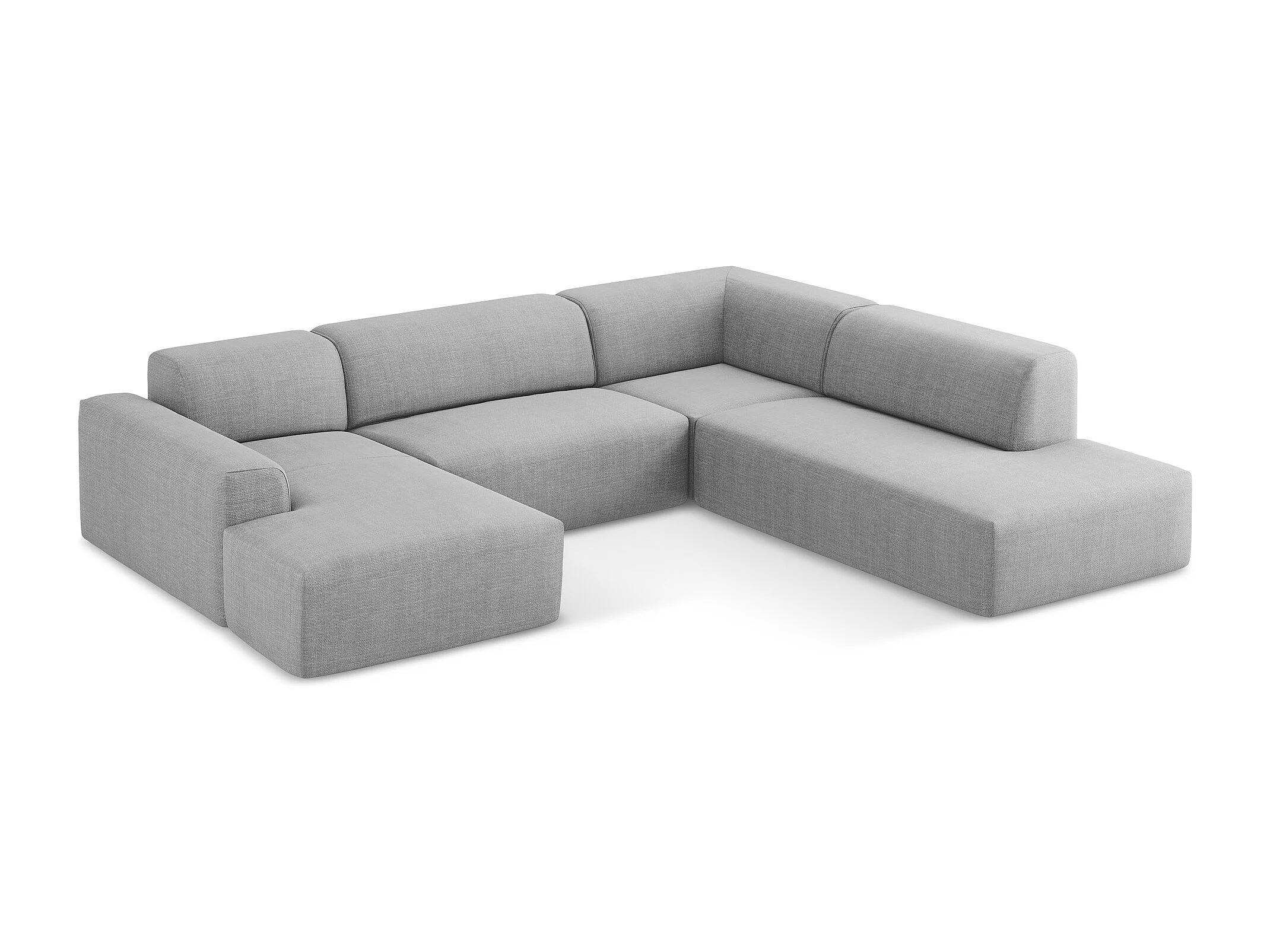 Canapé panoramique 5 places droit en tissu texturé - gris clair - KELI