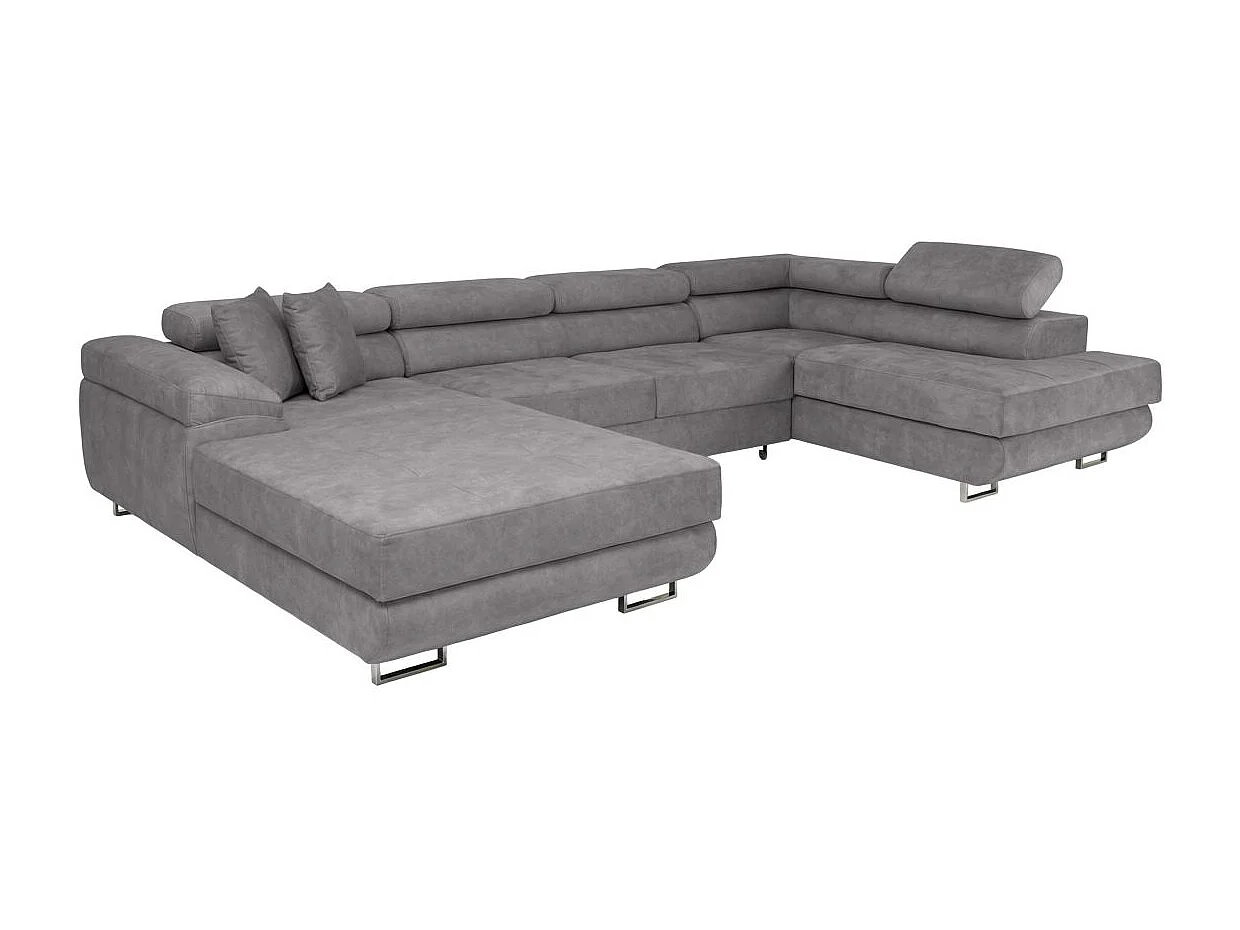 Canapé panoramique 6 places FLAVIO convertible avec 2 coffres en tissu - Gris moyen