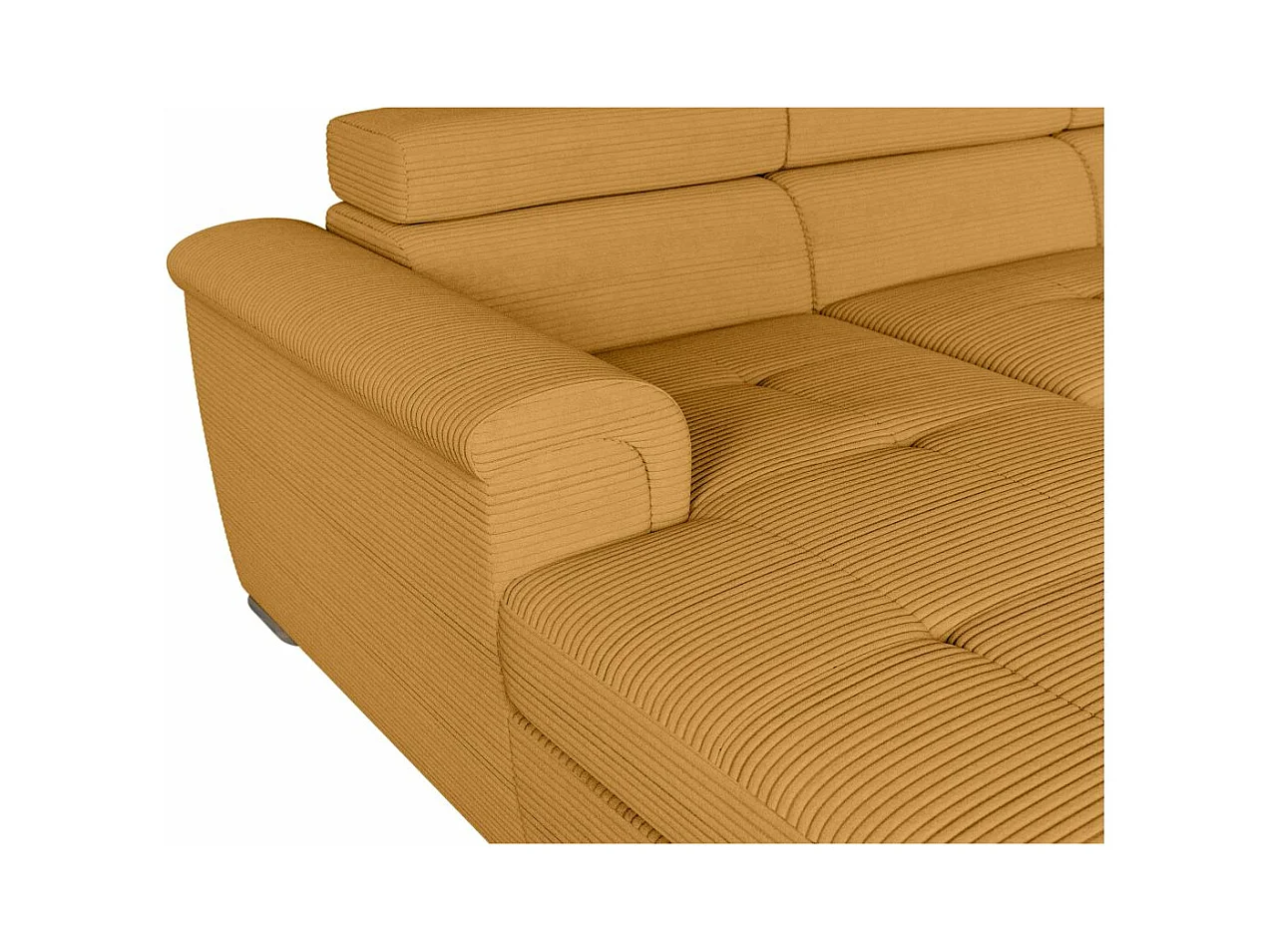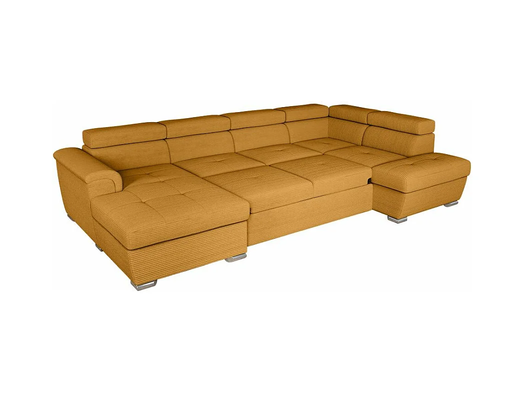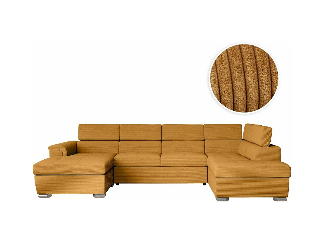 Canapé panoramique 6 places Paola convertible avec 2 coffres en velours côtelé - Jaune - L320,5 x P188 x H76cm - Loungitude