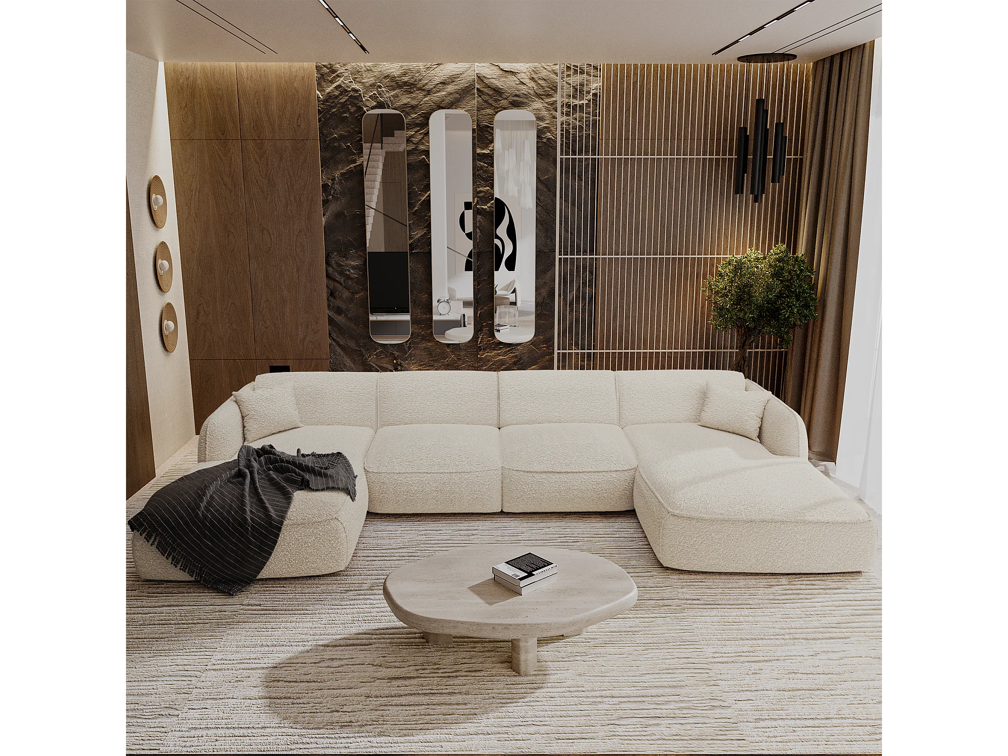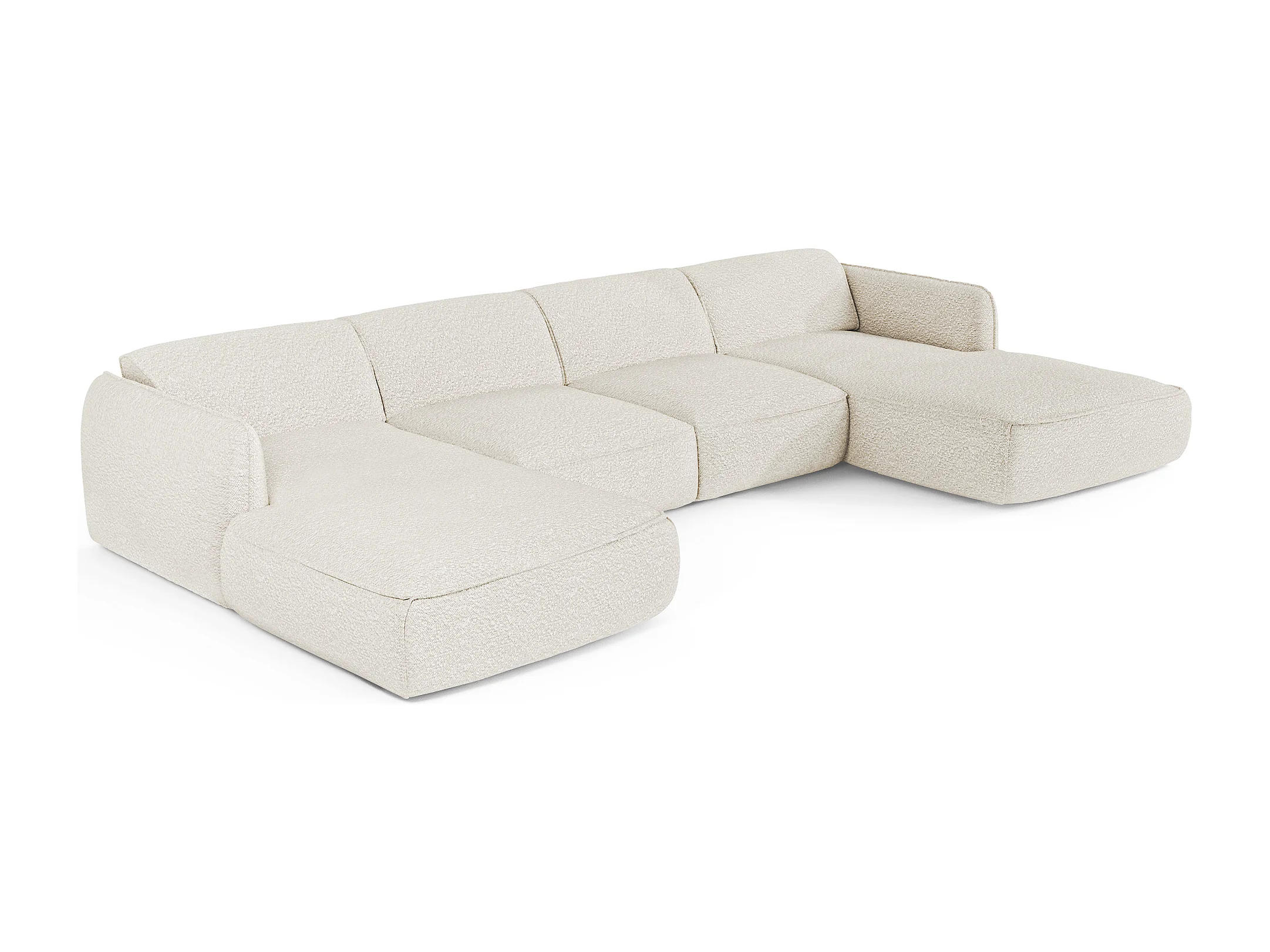 Canapé panoramique 7 places bouclette crème LIVIA