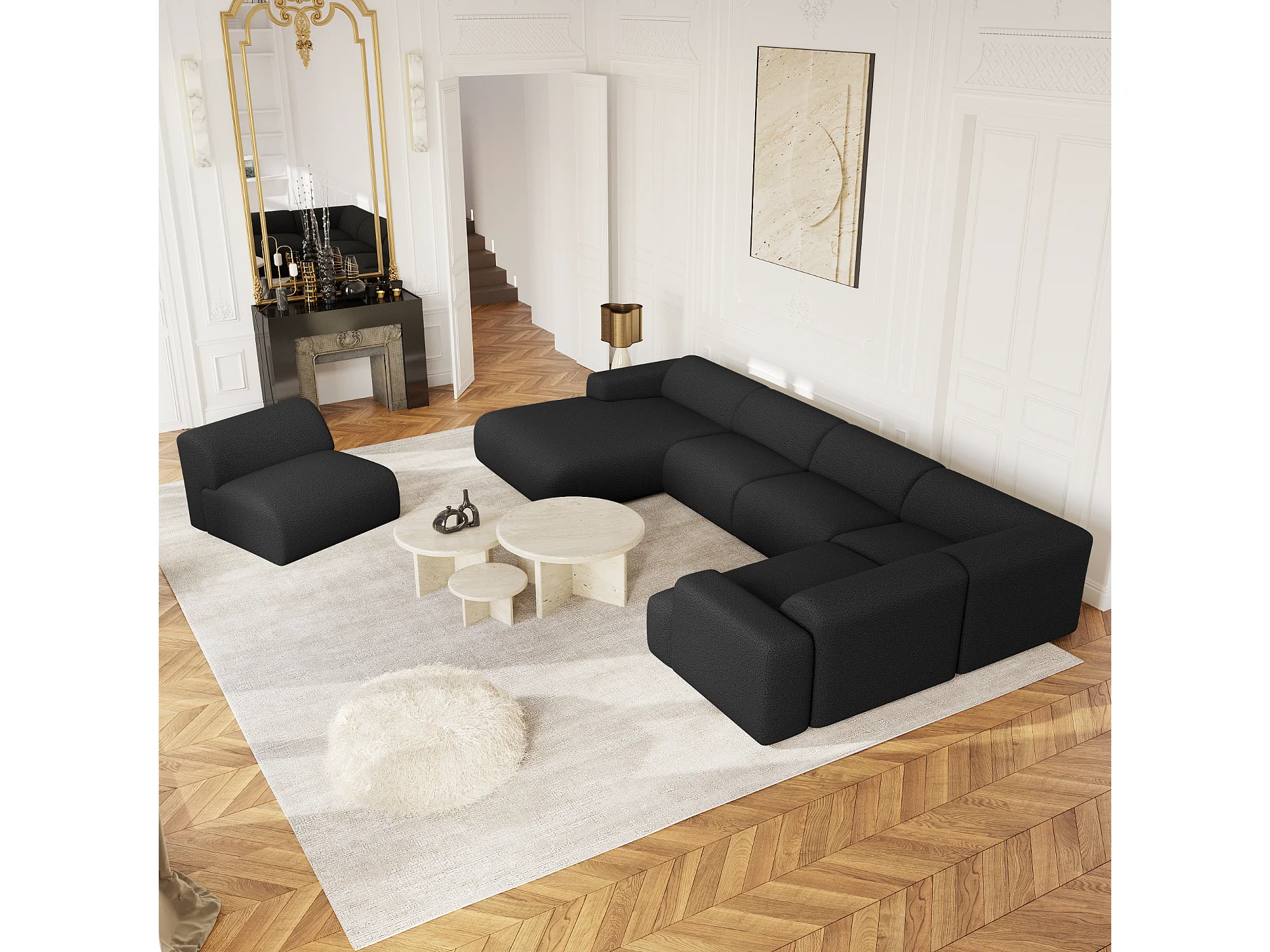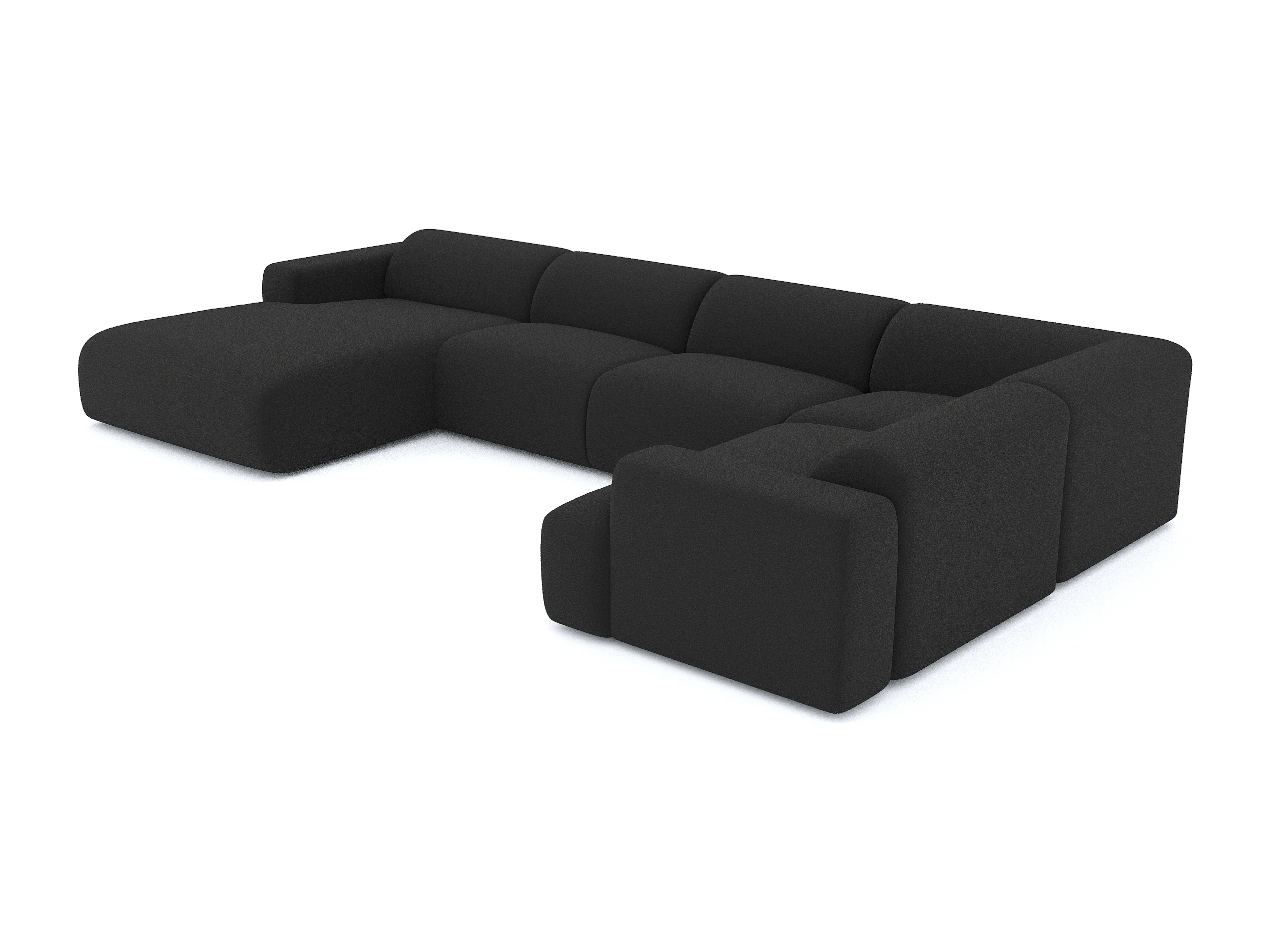 Canapé panoramique 7 places angle gauche bouclette anthracite foncé MYRA