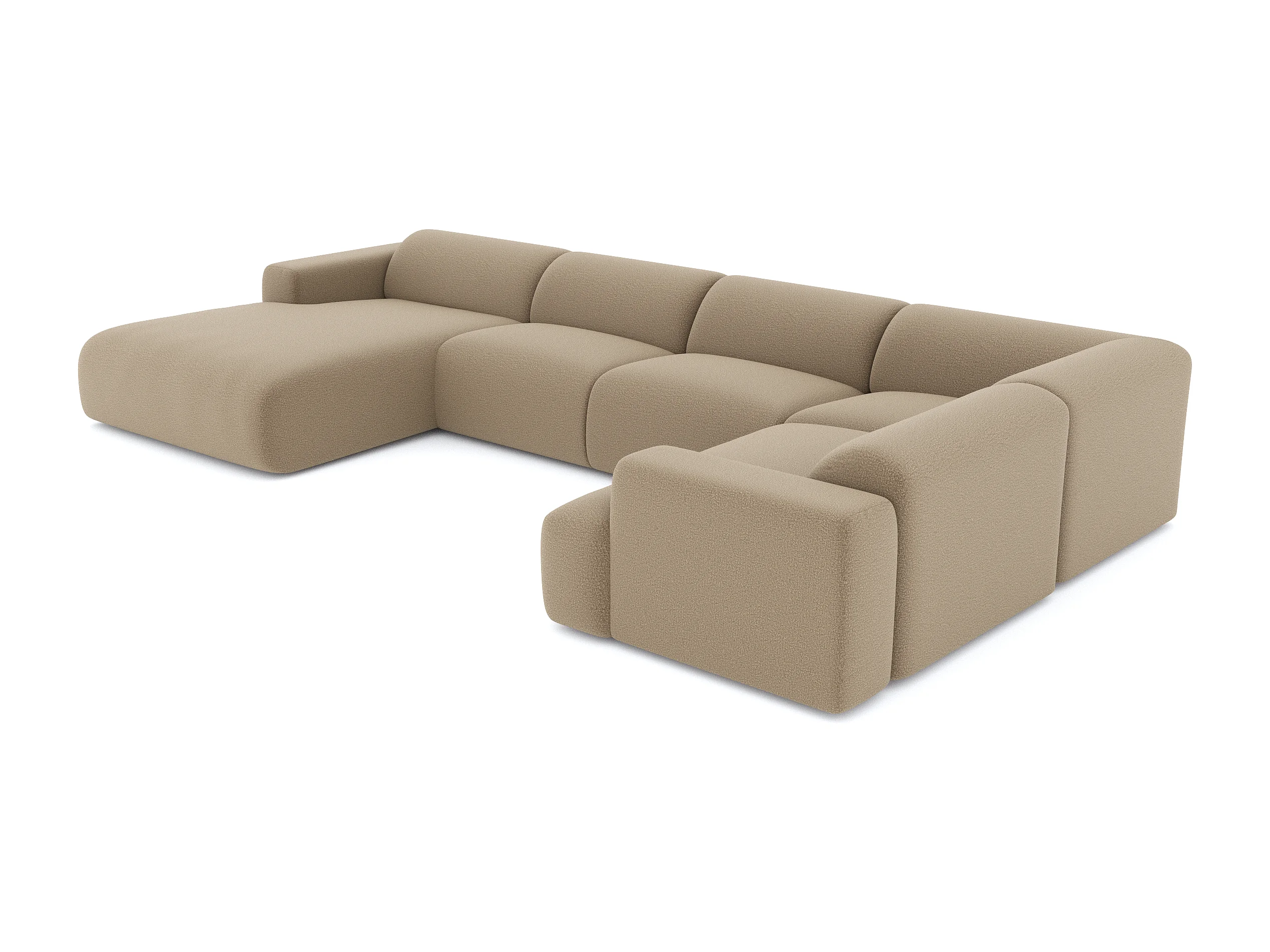 Canapé panoramique 7 places angle gauche en bouclette XXL taupe MYRA