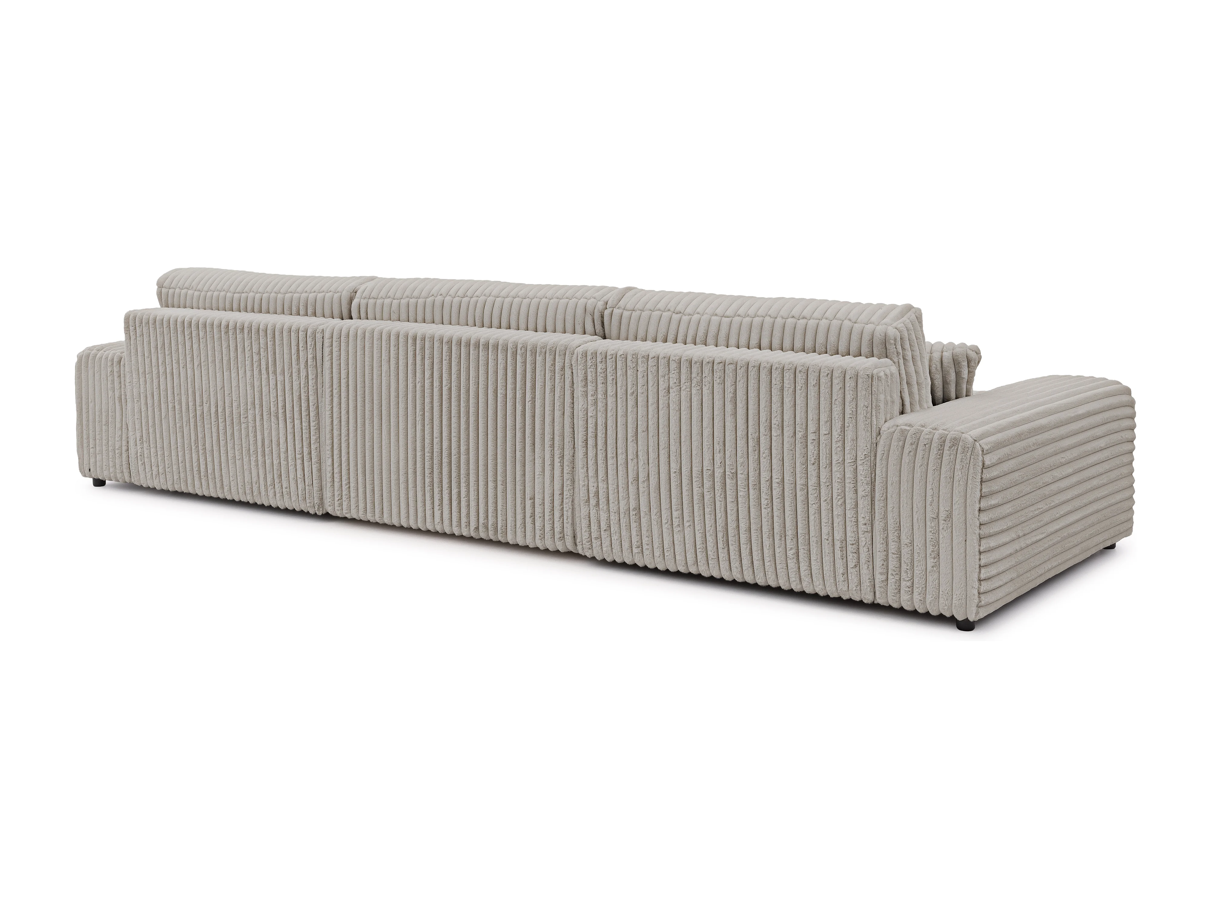 Canapé panoramique avec fonction couchage et coffre de rangement en velours côtelé pelucheux gris clair MOLLIS