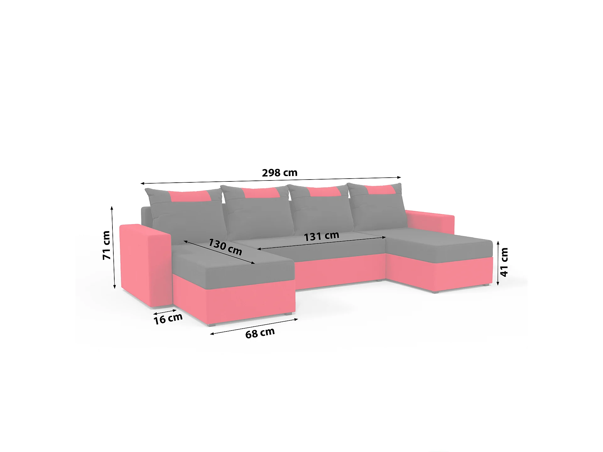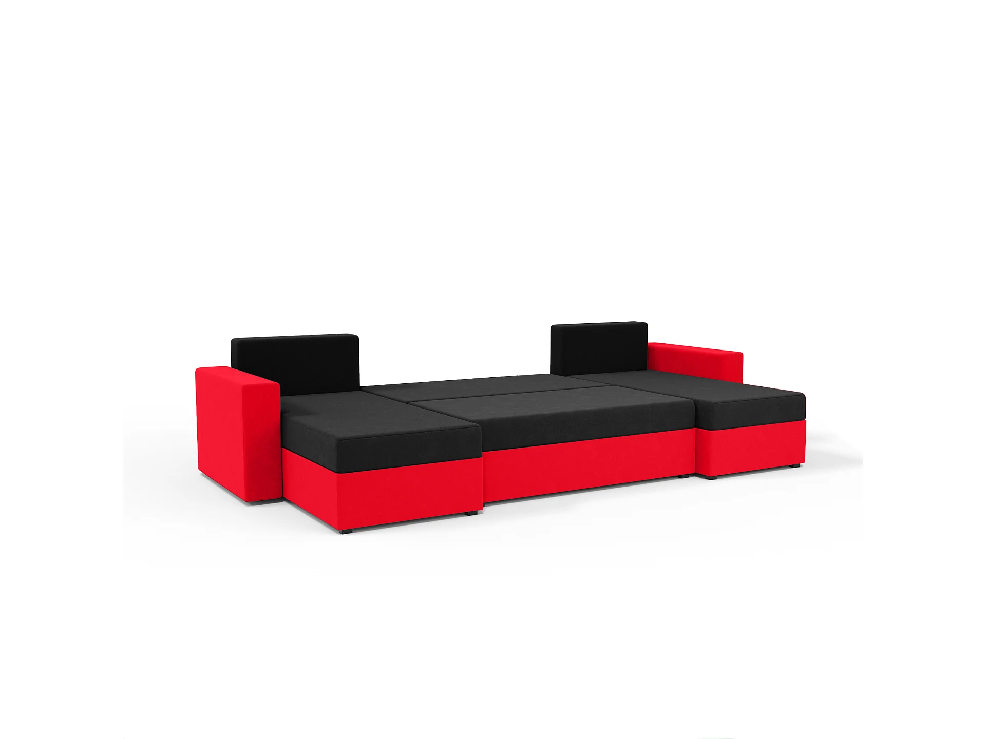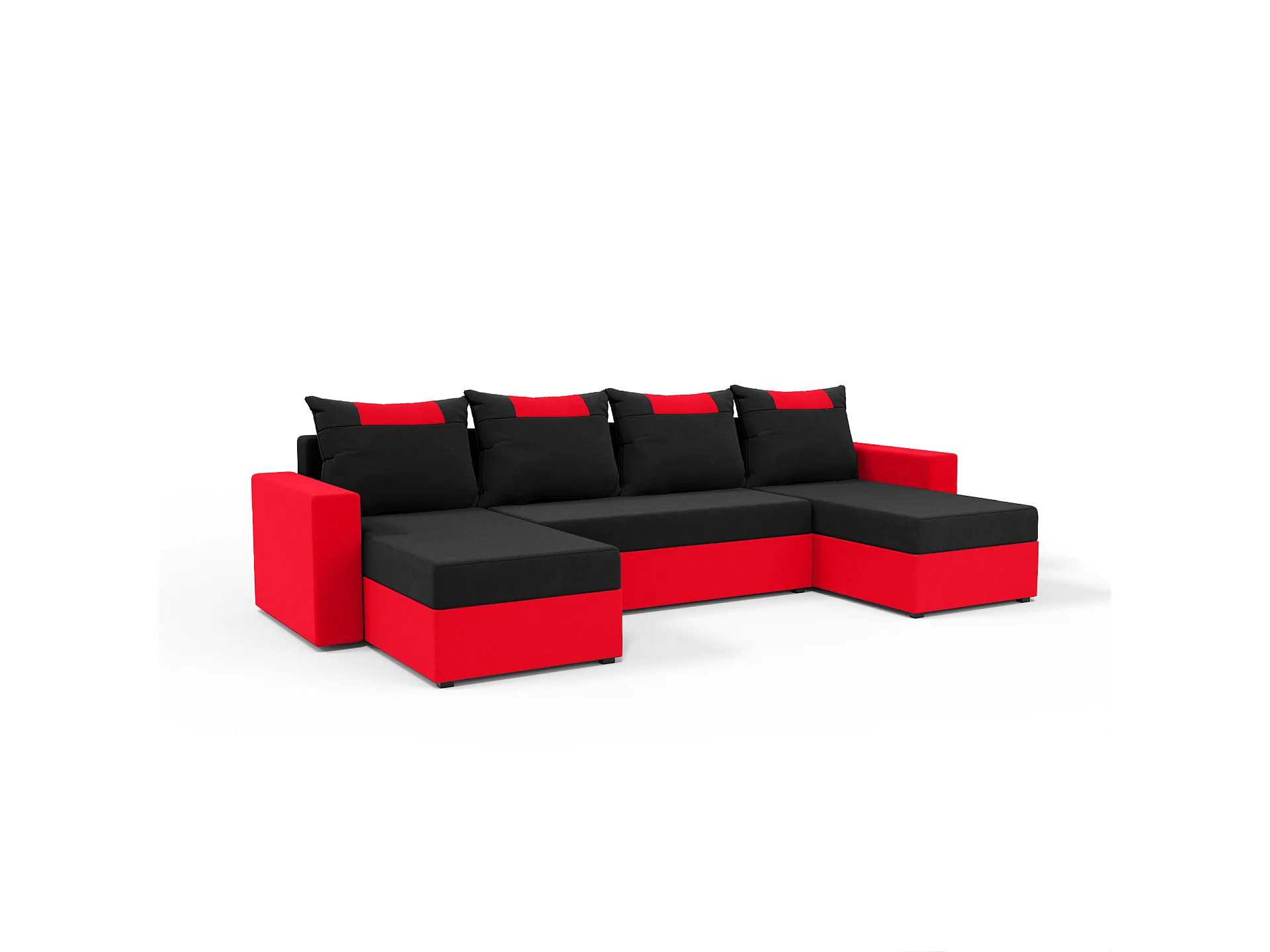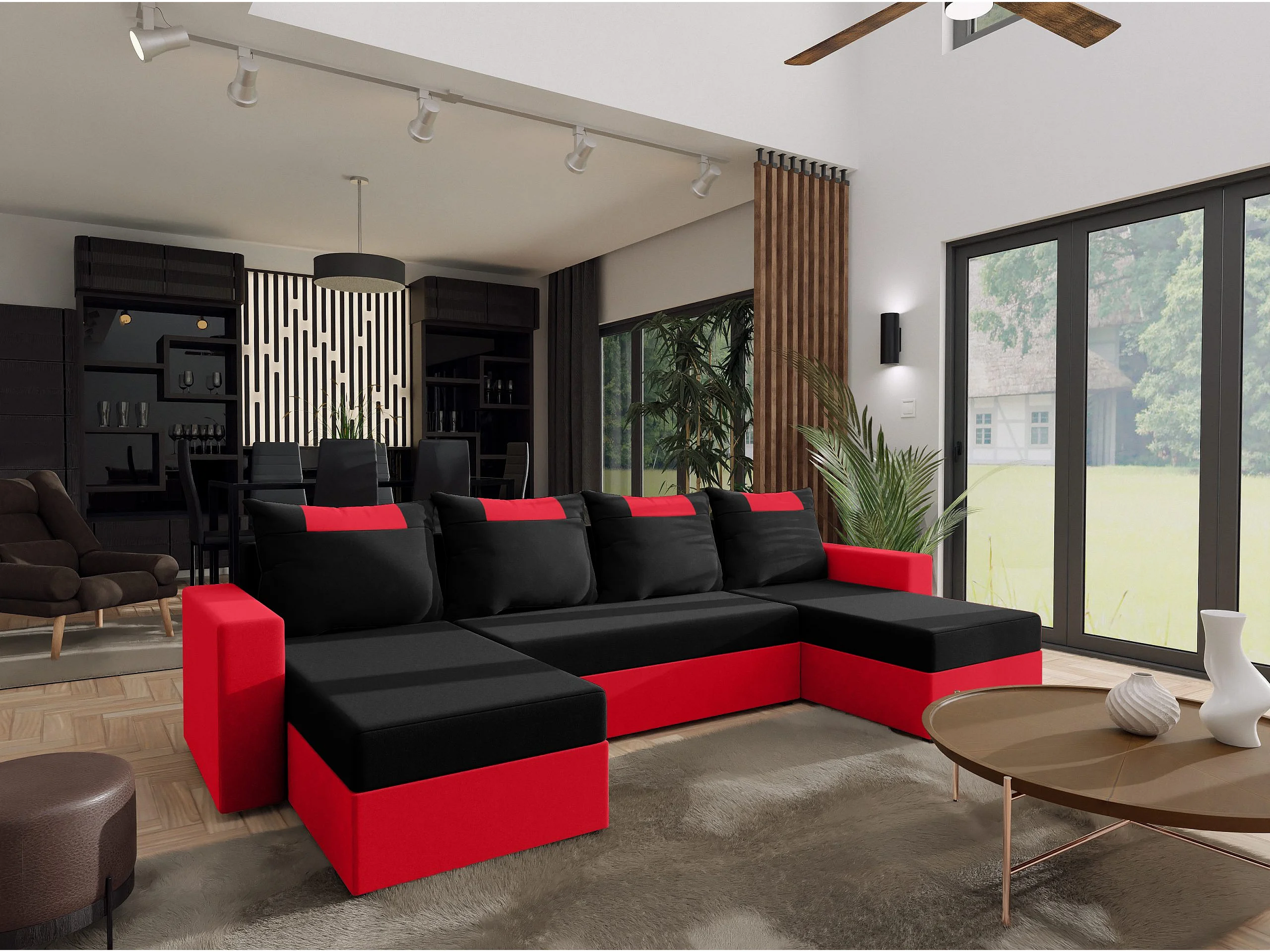 CANAPÉ PANORAMIQUE avec fonction de couchage Susanne jusqu’à 8 places, Noir+Rouge