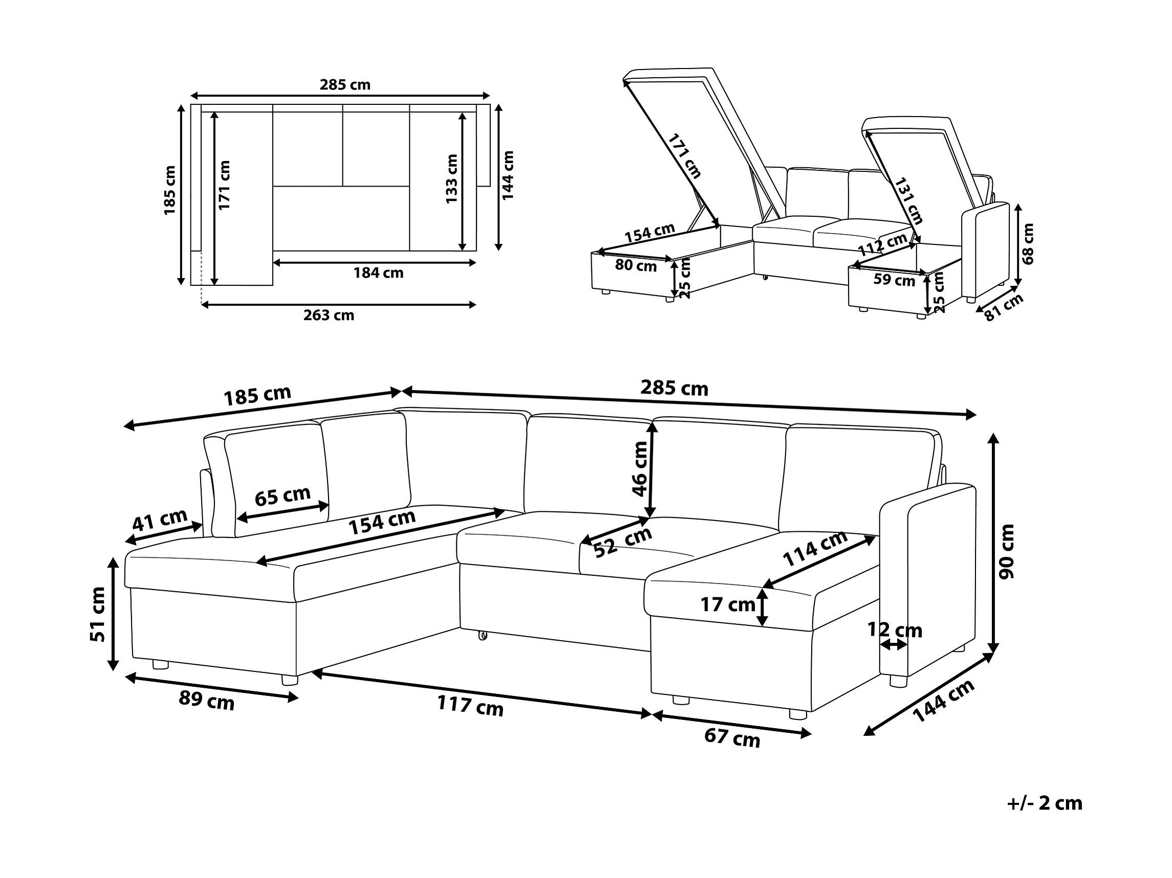 Canapé-lit en forme de U 5 places KARRABO Tissu Gris foncé avec rangement
