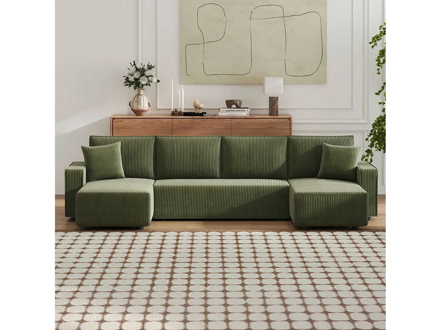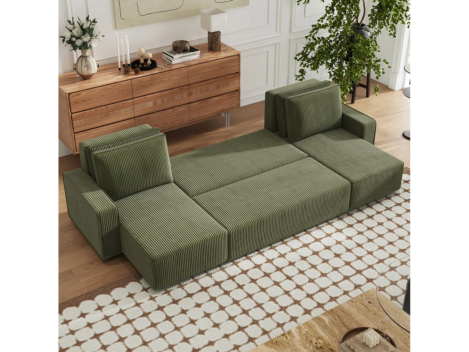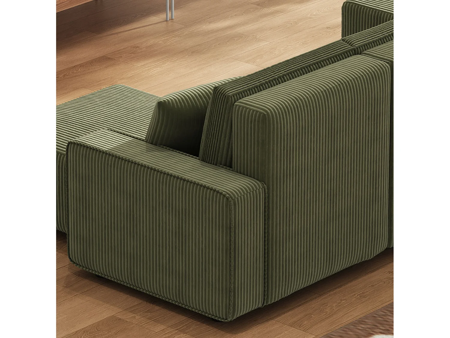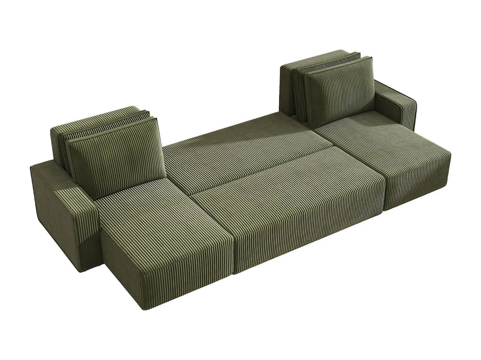 Canapé panoramique convertible 6 places avec coffre en velours côtelé vert SALISBURY