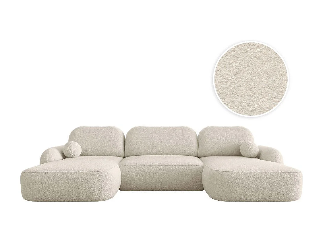 Canapé panoramique convertible 6 places MILLY avec coffre en tissu bouclette - Beige