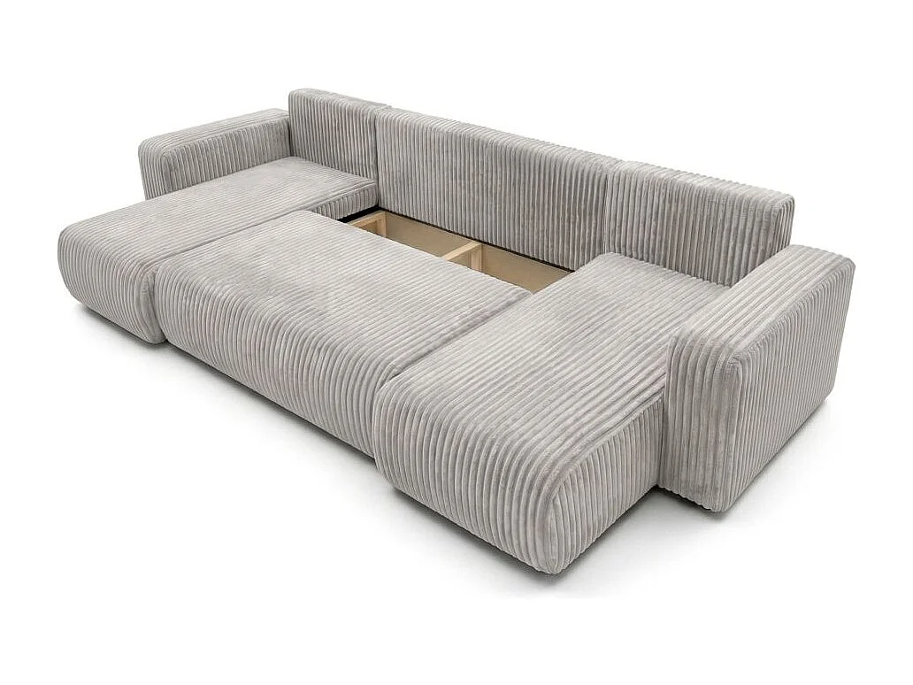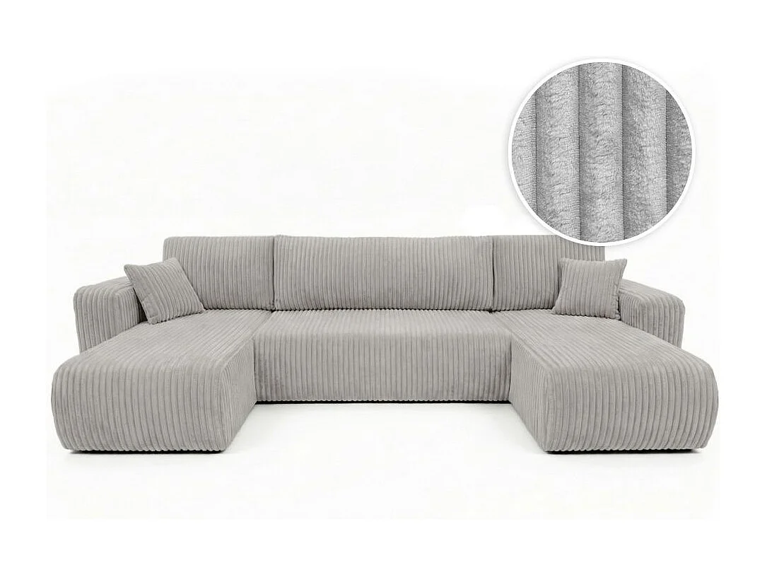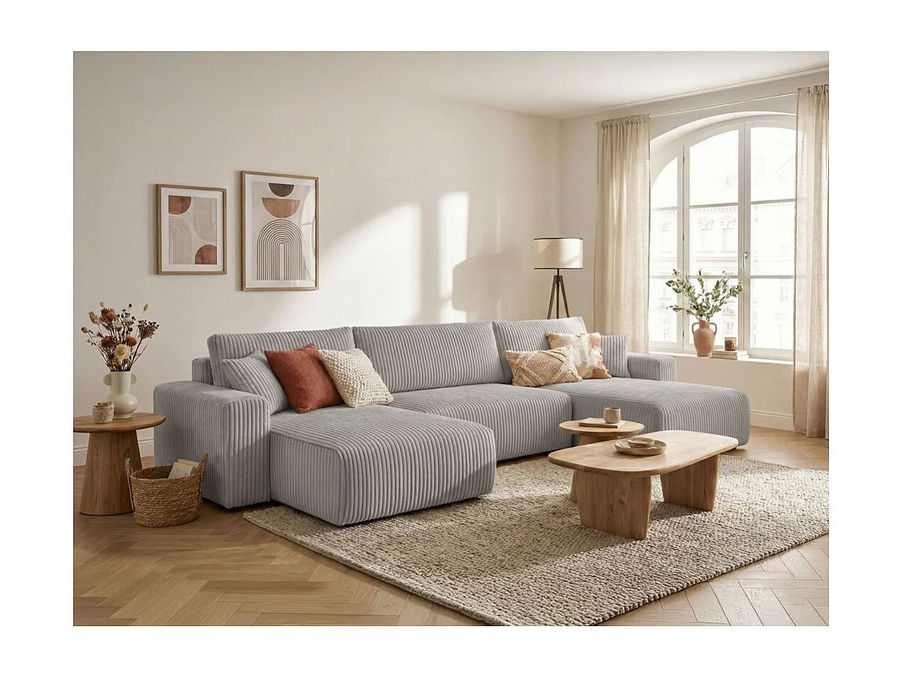 Canapé panoramique convertible 6p ALYA velours cotelé épais Gris clair