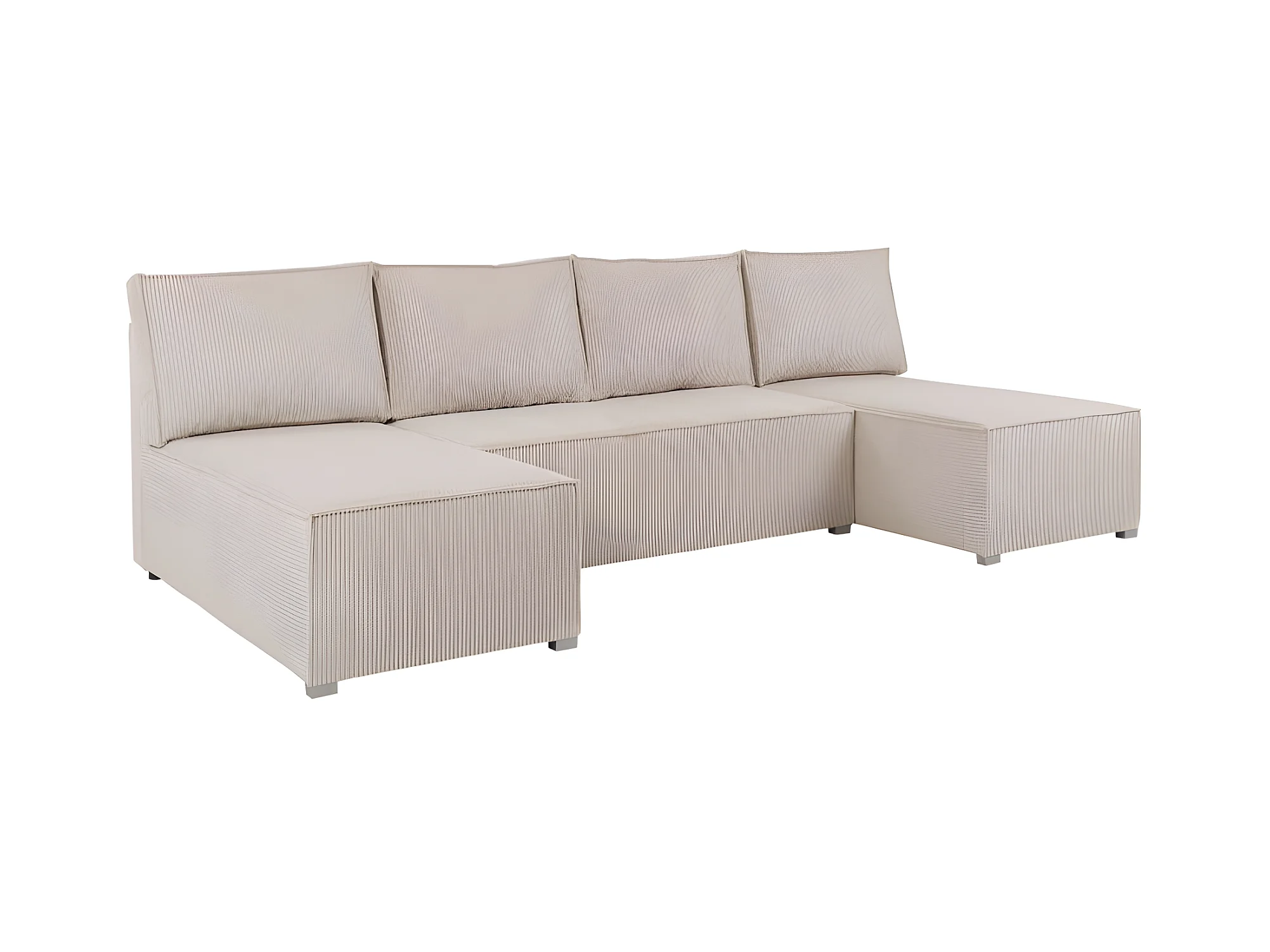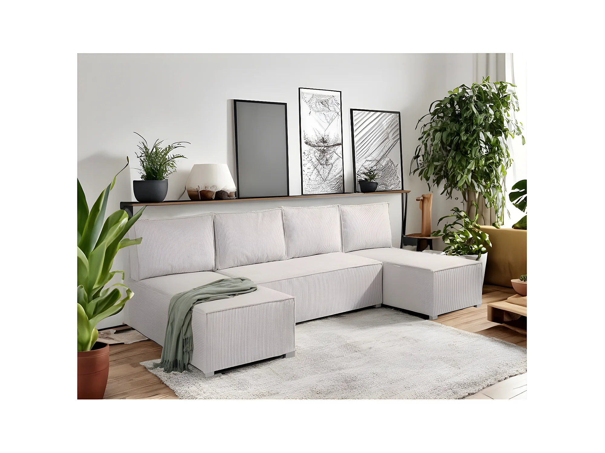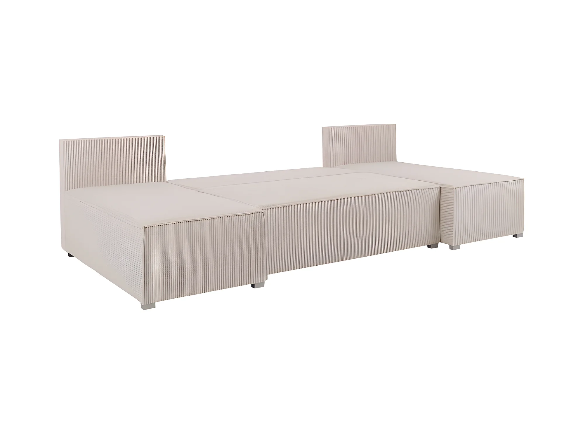 Canapé panoramique convertible ANALI en velours côtelé beige