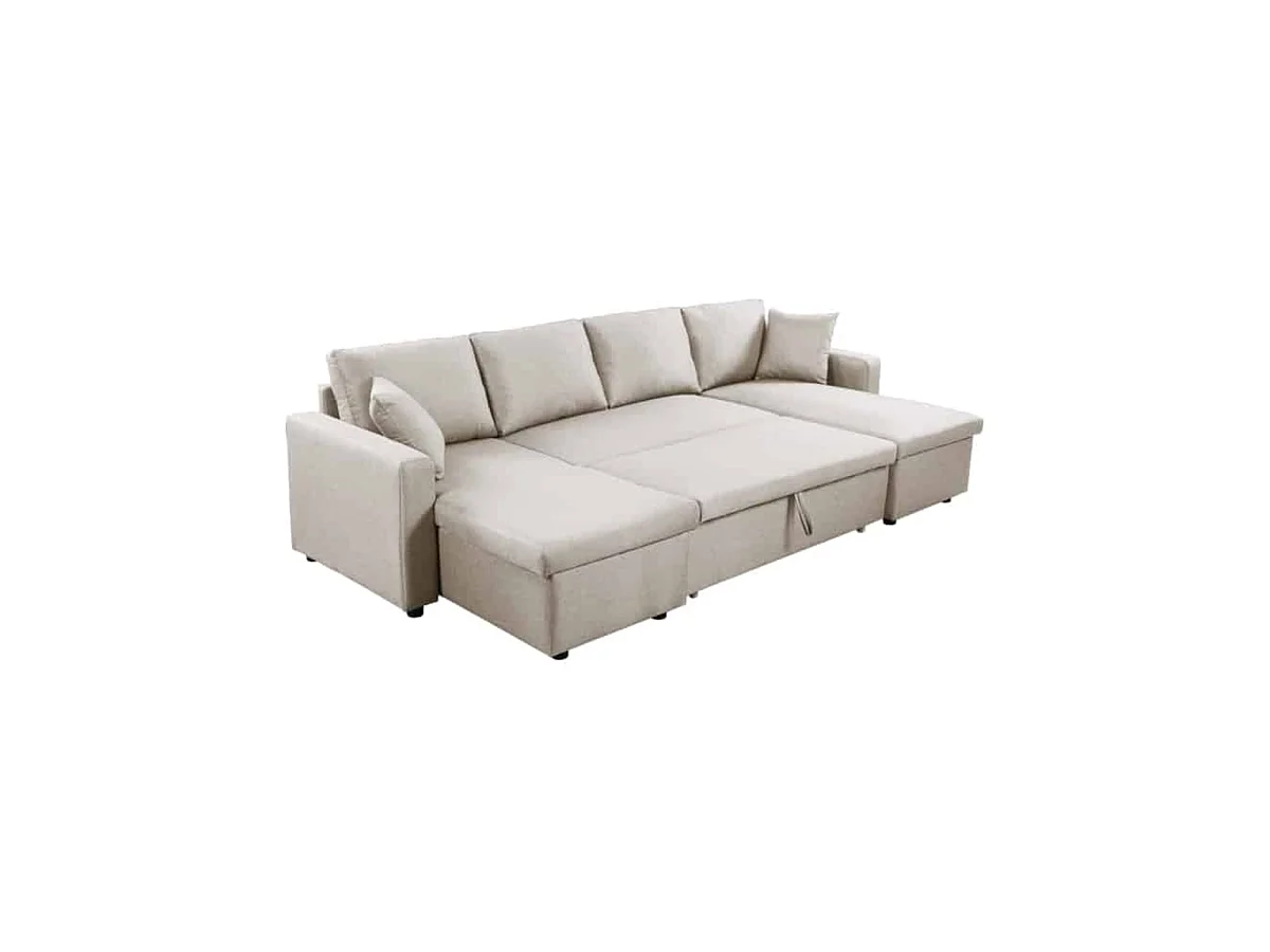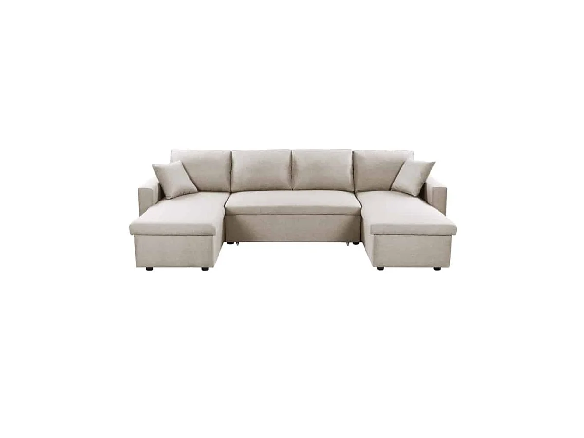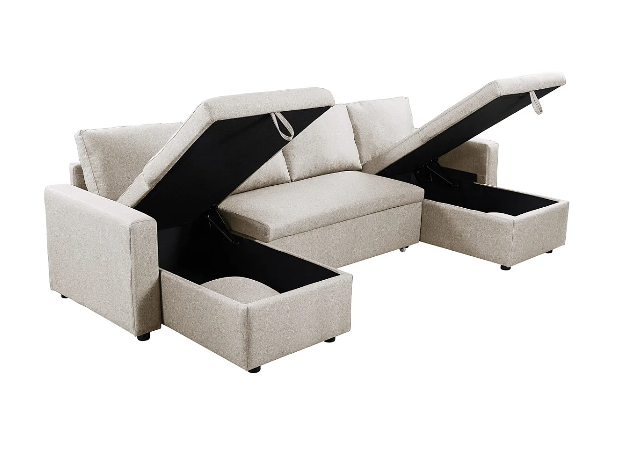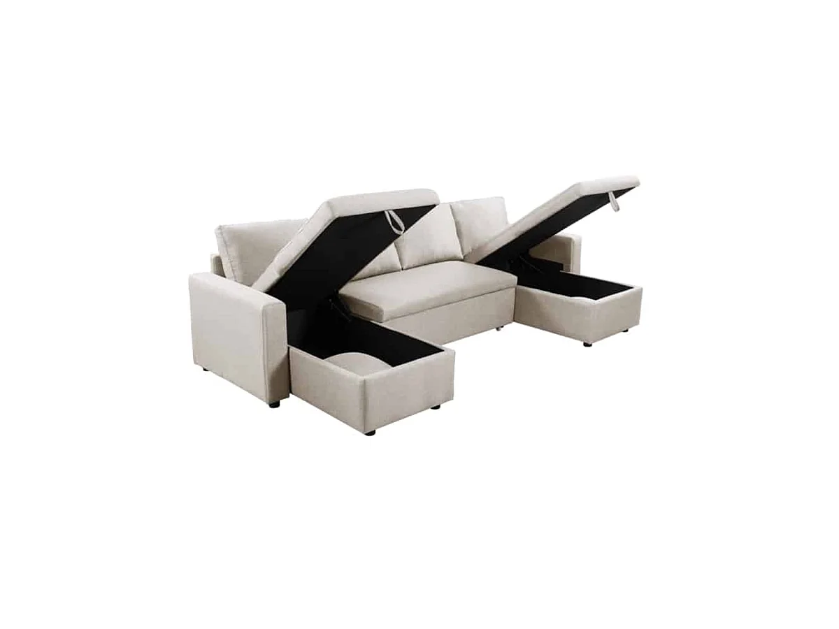 Canapé Panoramique Convertible avec 2 Coffres en Tissu
