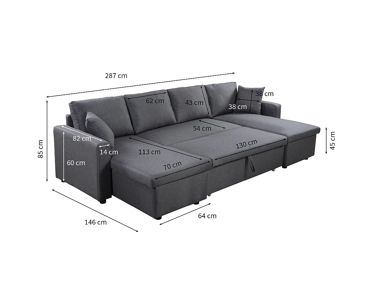 Canapé Panoramique Convertible avec 2 Coffres en Tissu