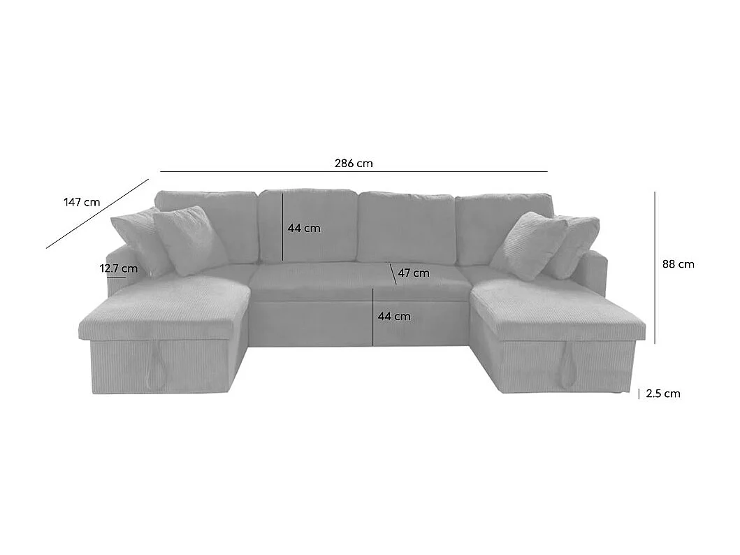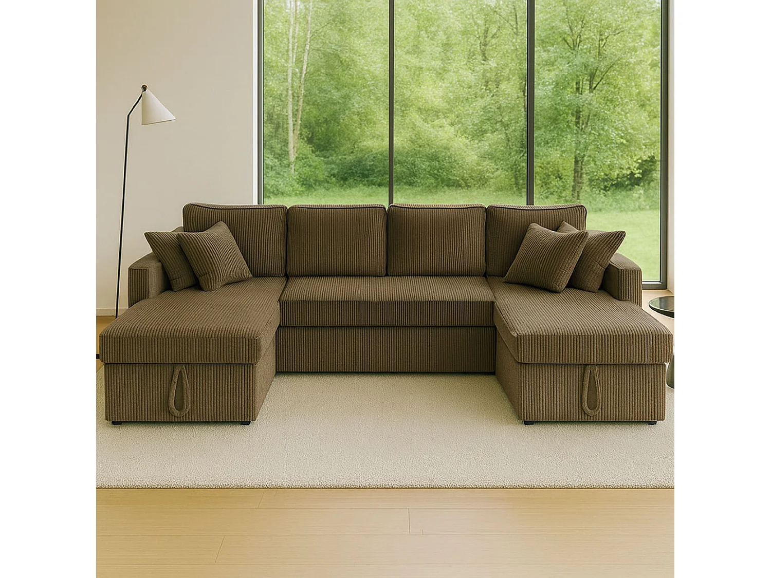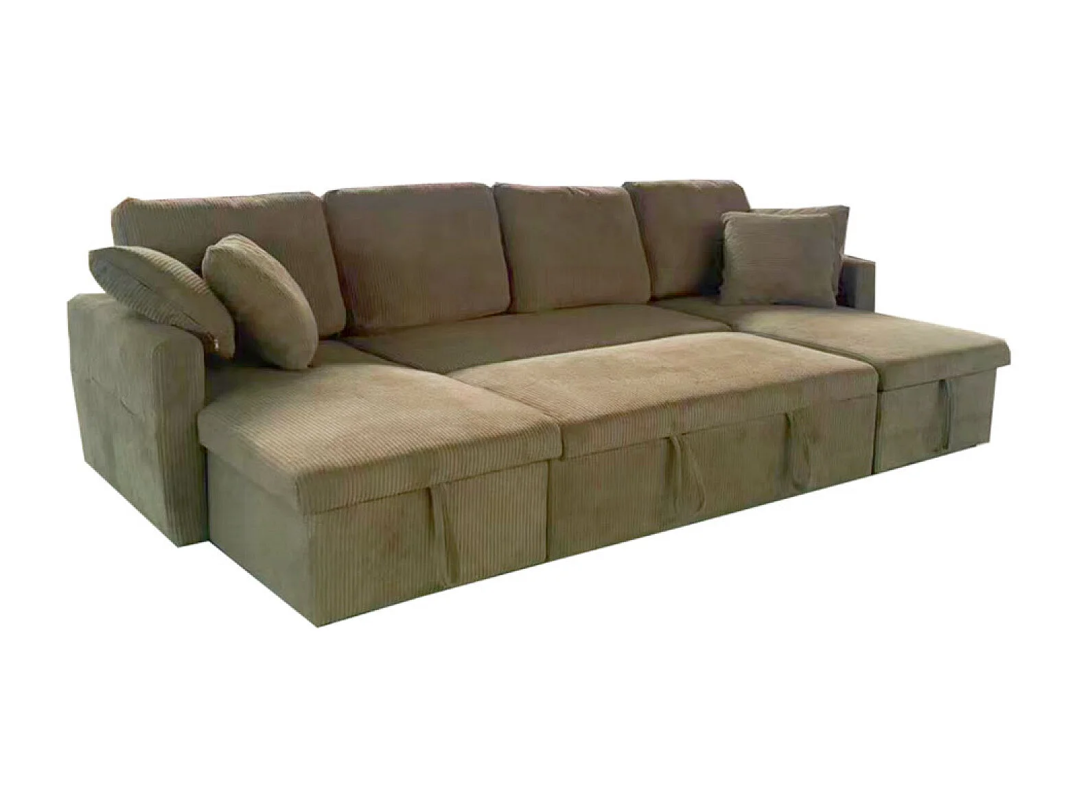 Canapé panoramique convertible avec coffres 4 places en velours côtelé vert MAHÉ