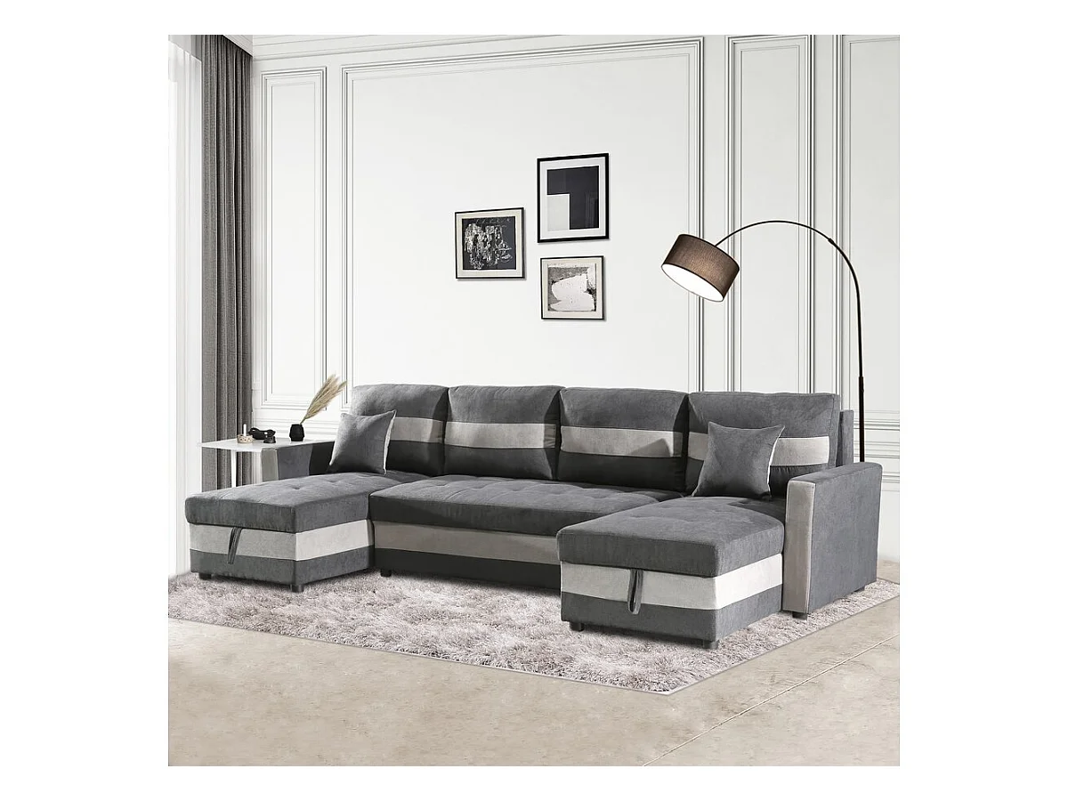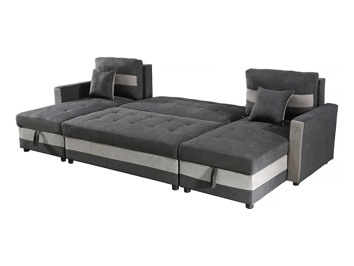 Canapé panoramique convertible avec coffres de rangement "Antoine" - 5 places - Gris foncé/ Gris clair