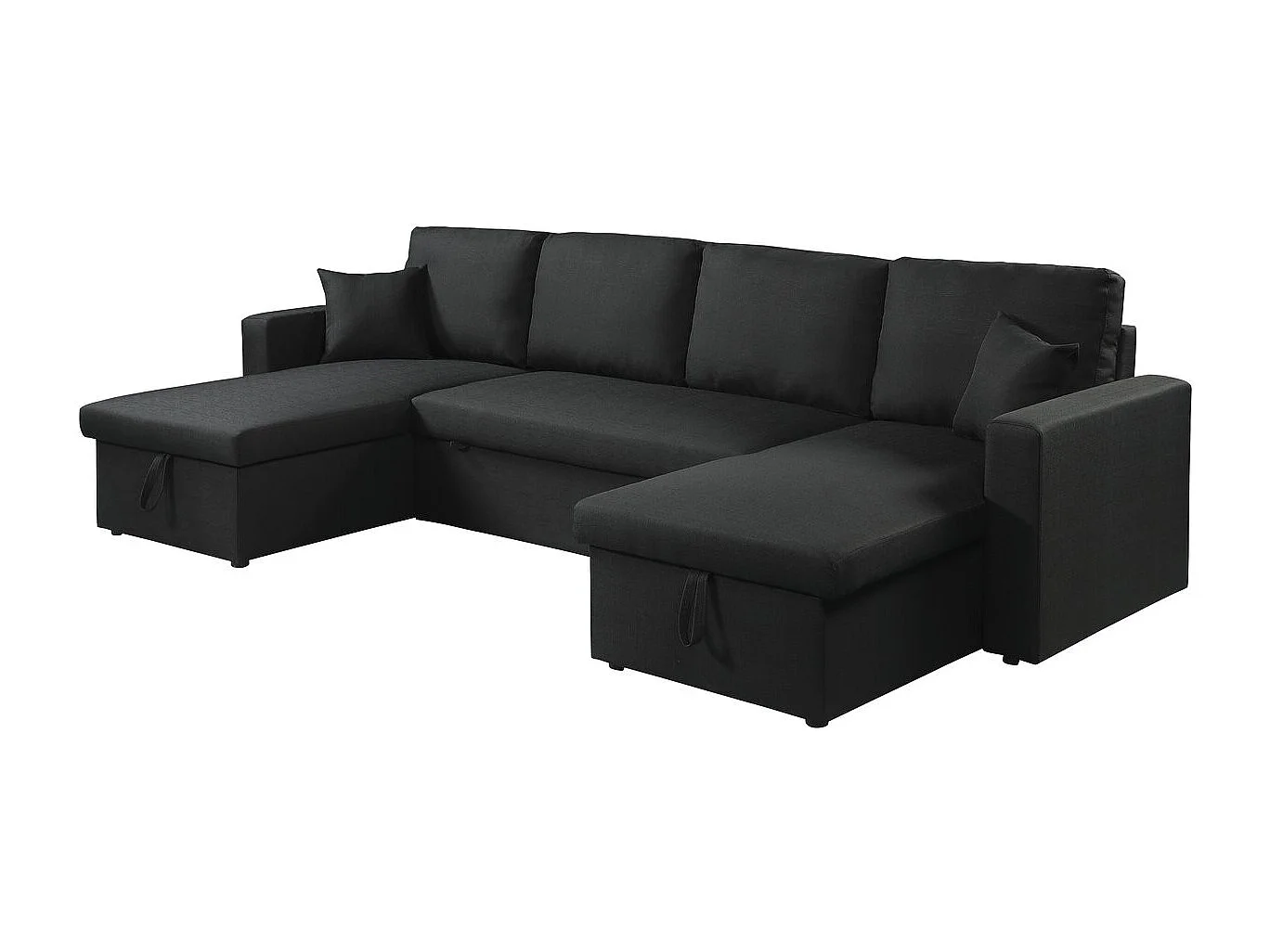 Canapé panoramique convertible en tissu "Alain" - 4 places - Noir