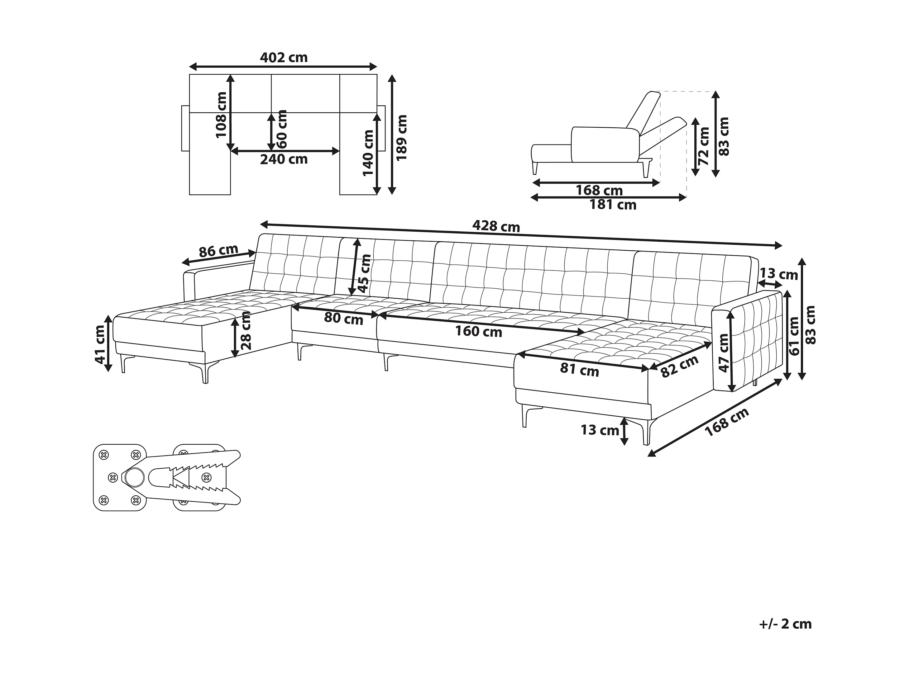 Canapé-lit modulable en forme de U 6 places ABERDEEN Tissu Gris graphite