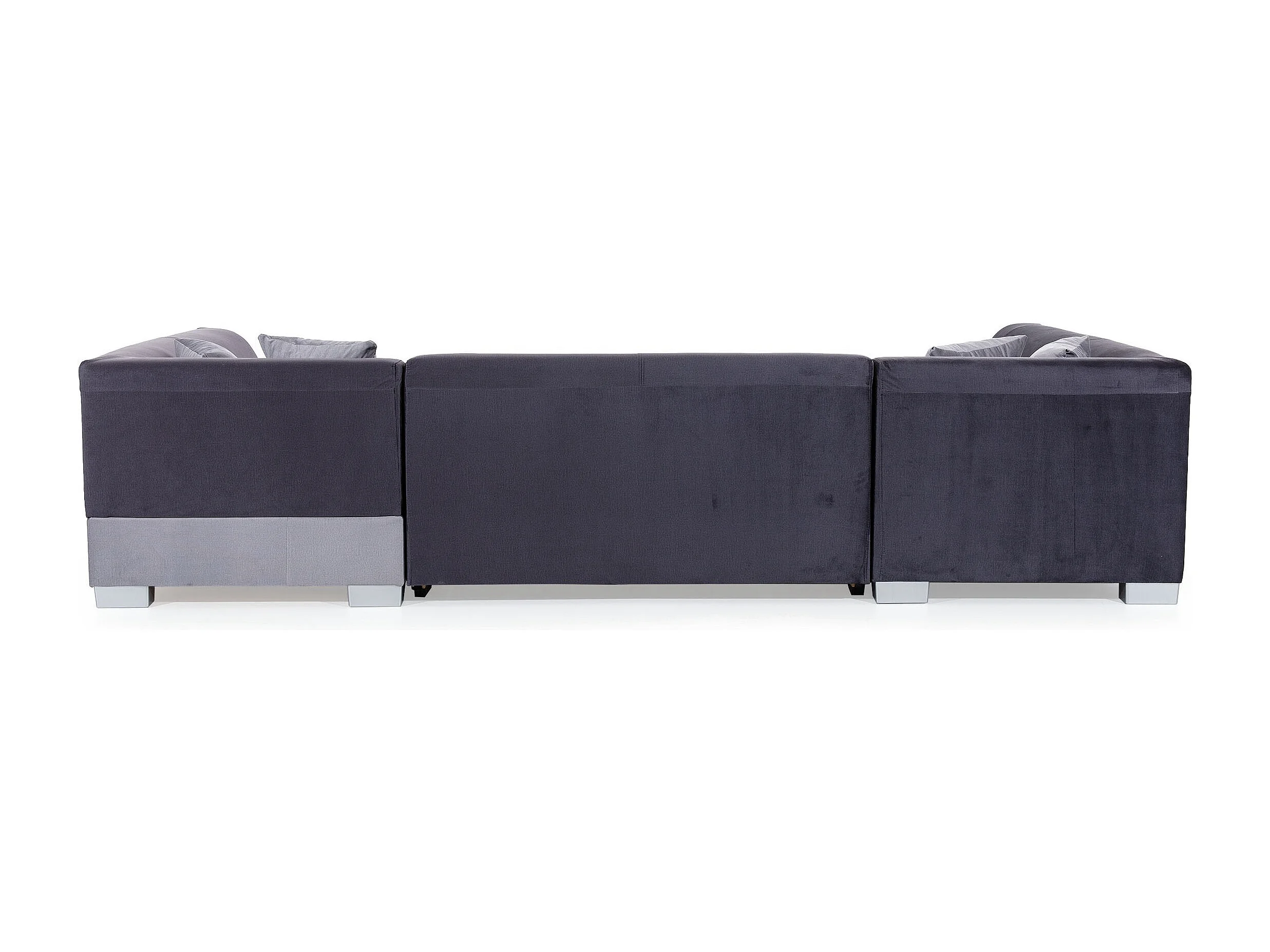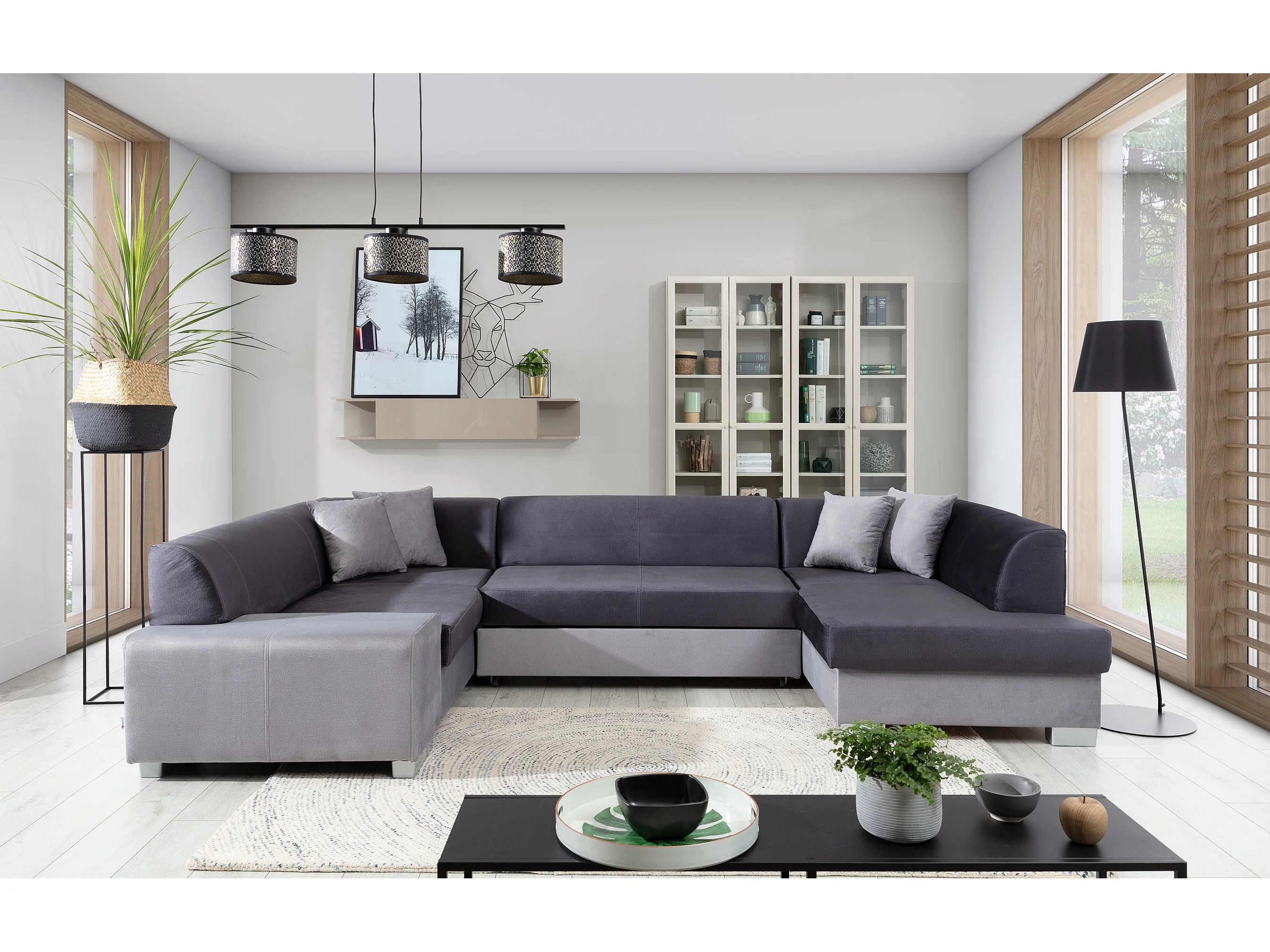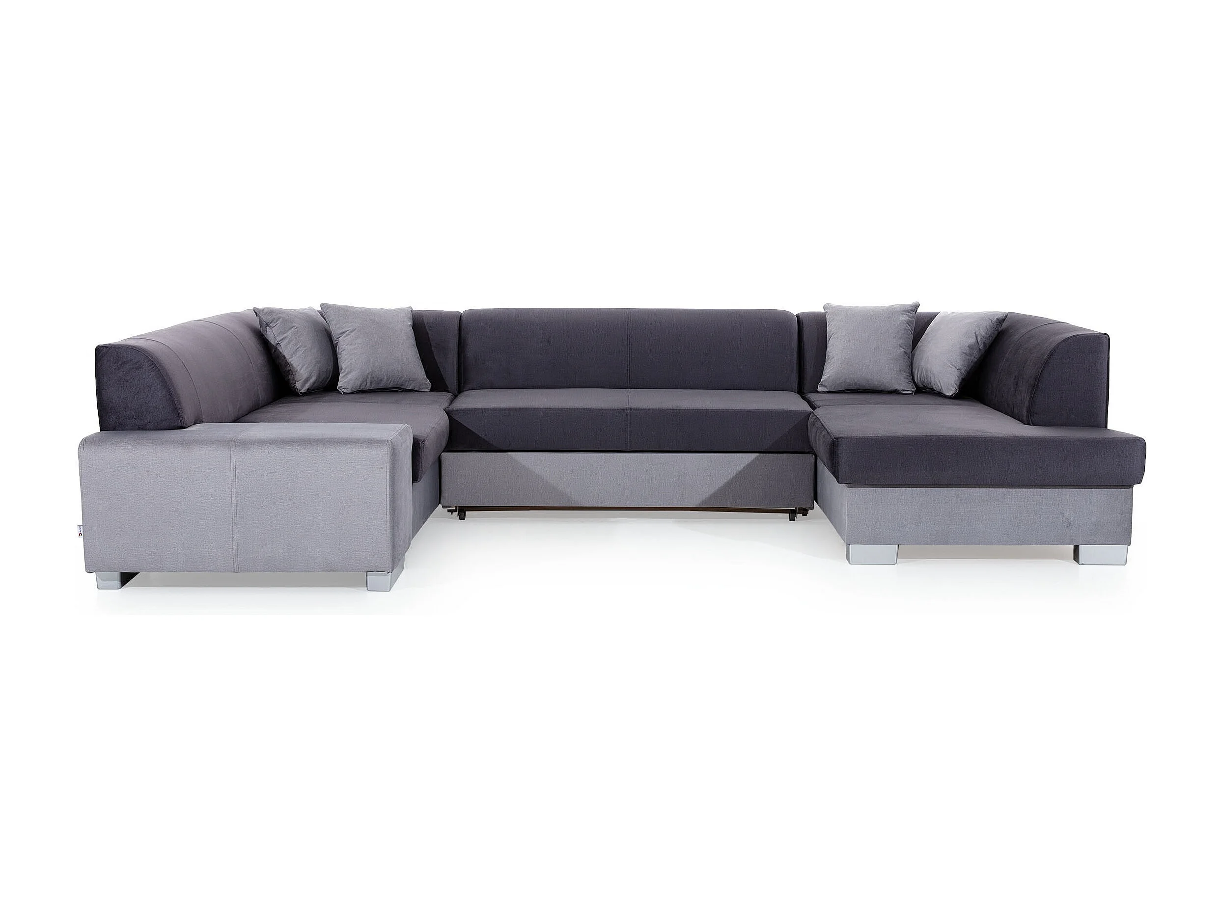 Canapé panoramique convertible HOUSTON en velours avec coffre de rangement-Gris clair/Gris-Coffre à droite