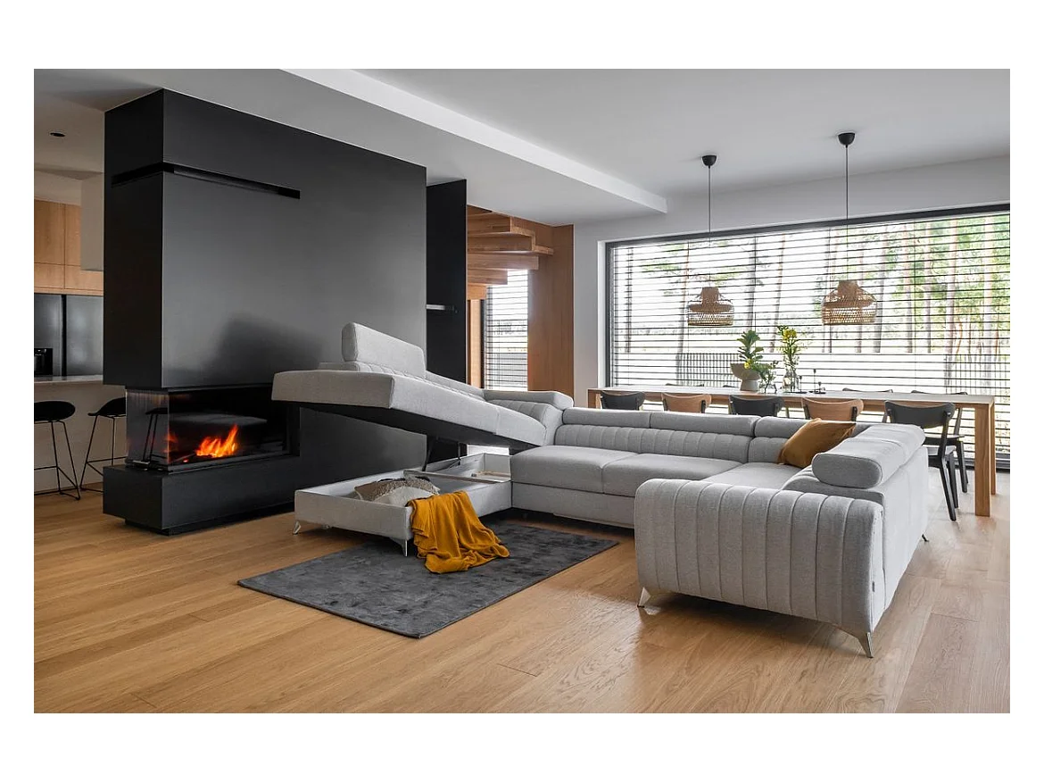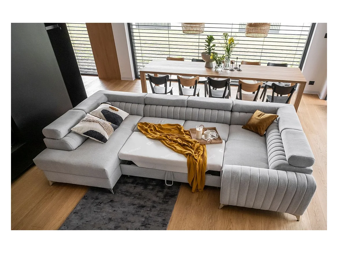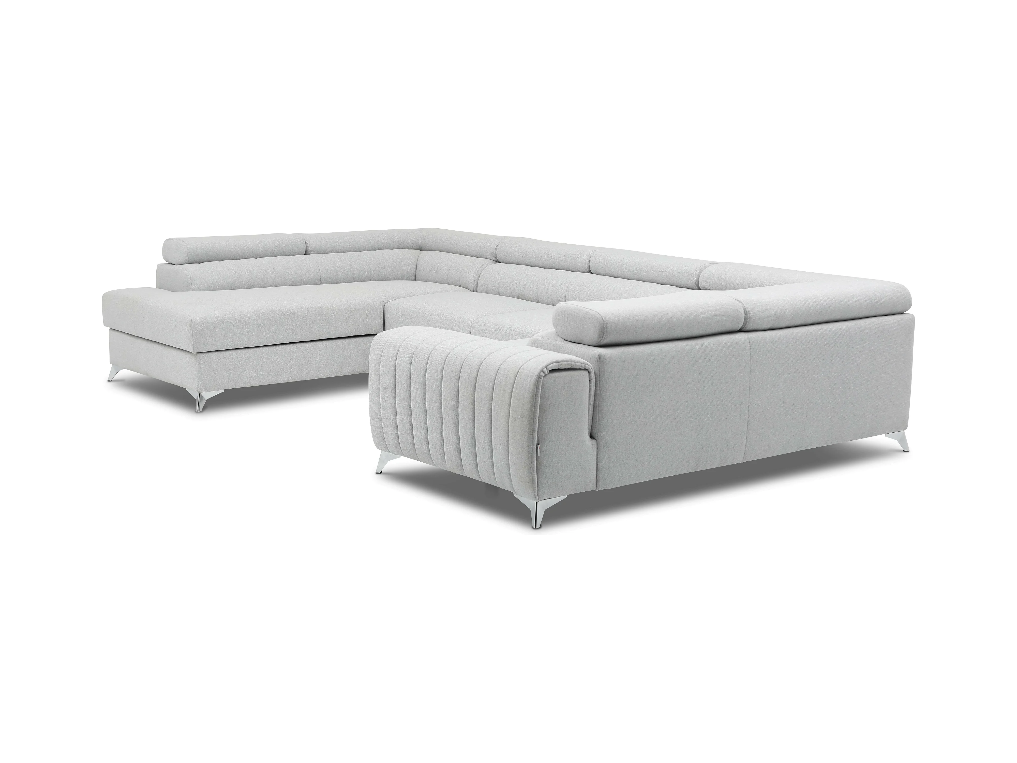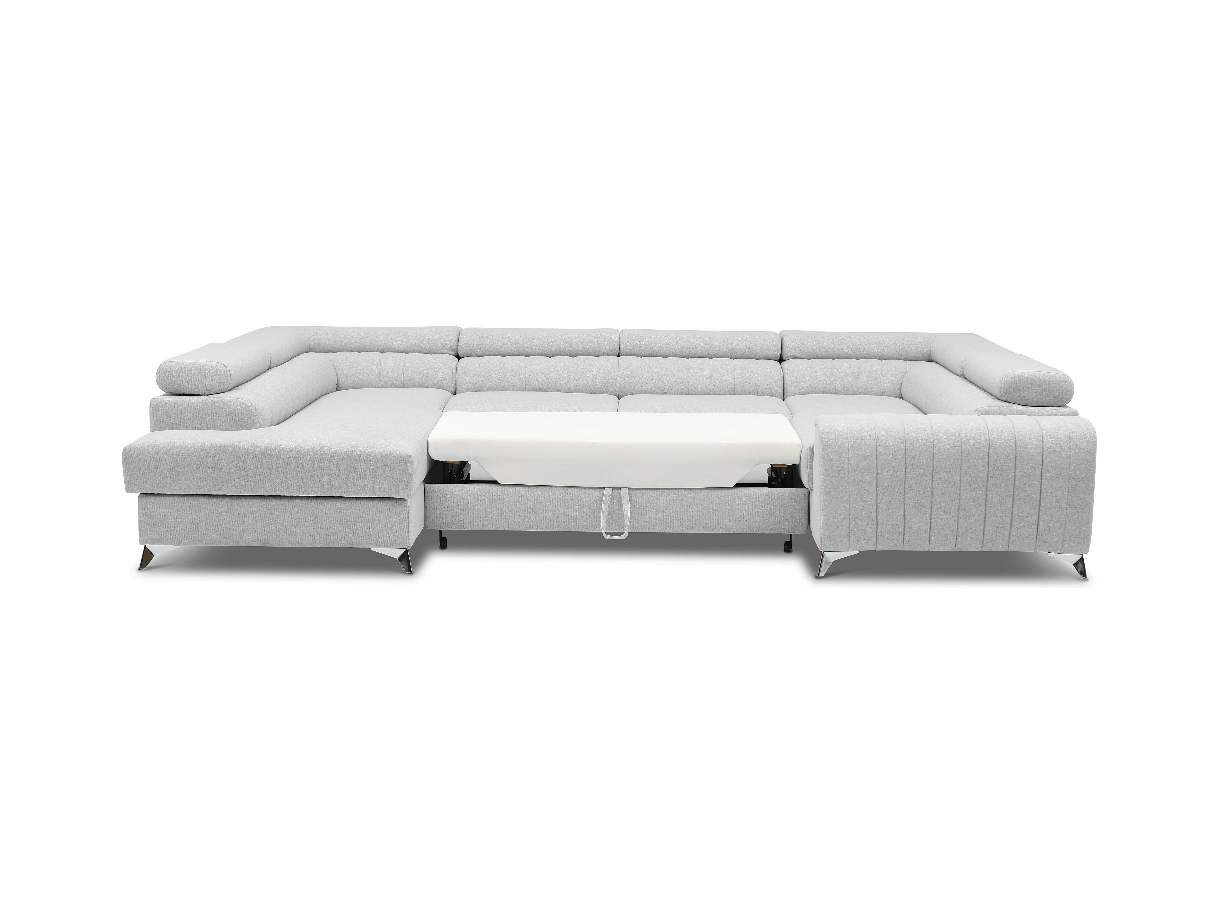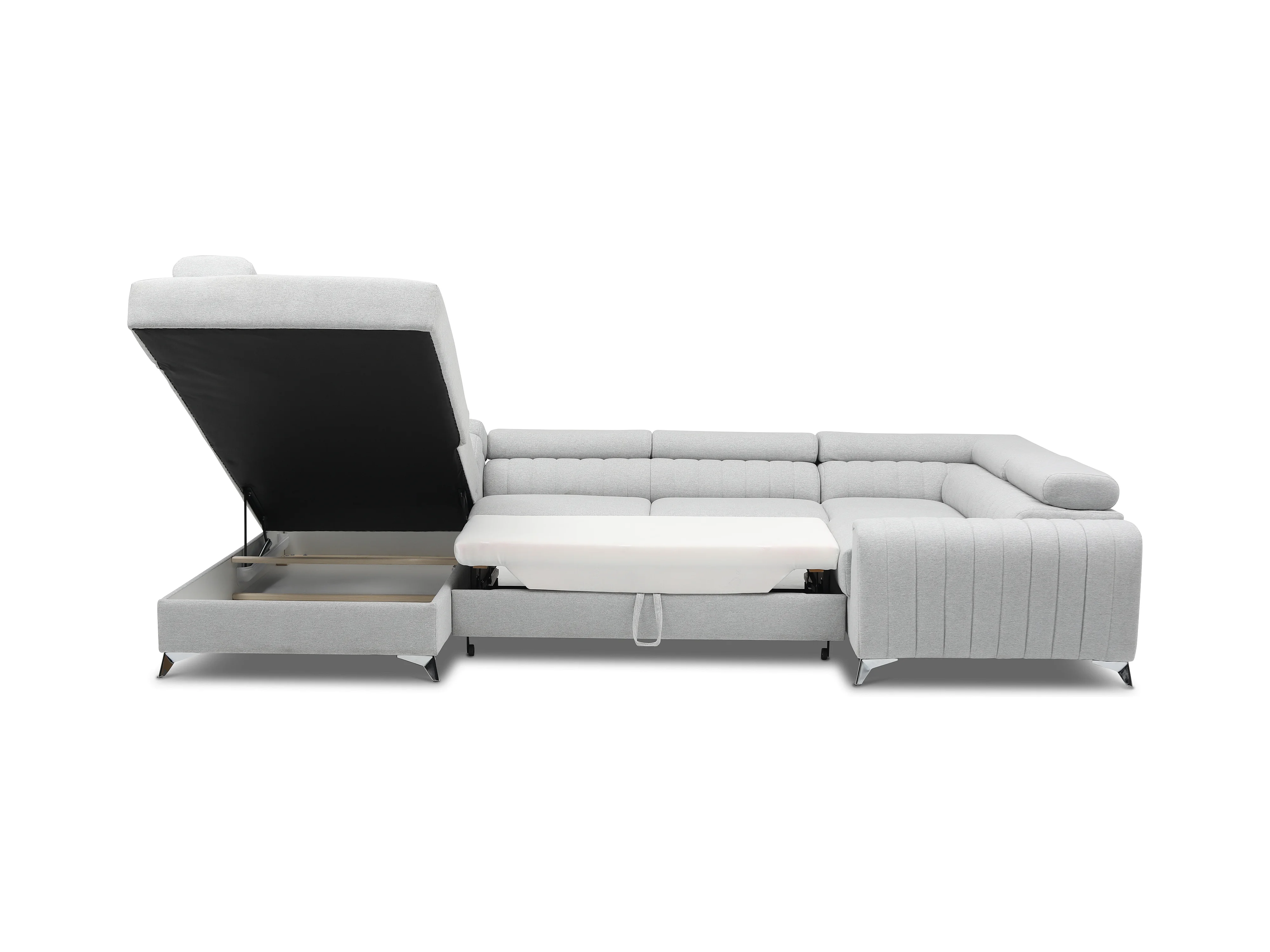 Canapé panoramique convertible simili cuir blanc avec coffre de rangement Louve 340cm-Coffre de rangement à gauche