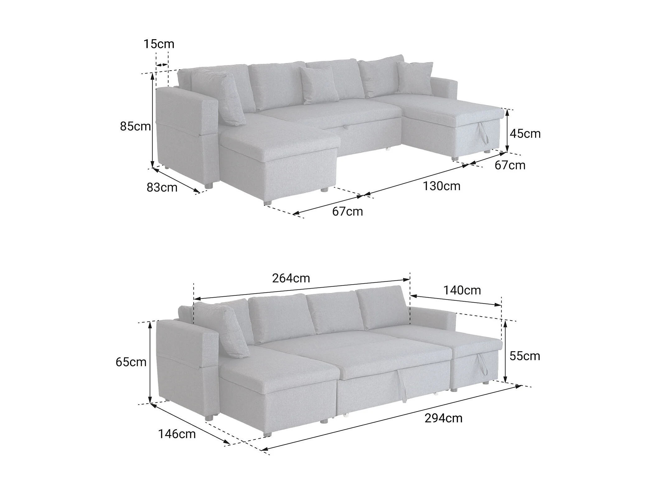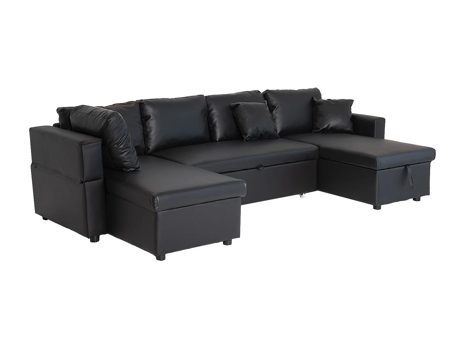 Canapé panoramique convertible simili SCOTT 4 places noir - HAPPY GARDEN