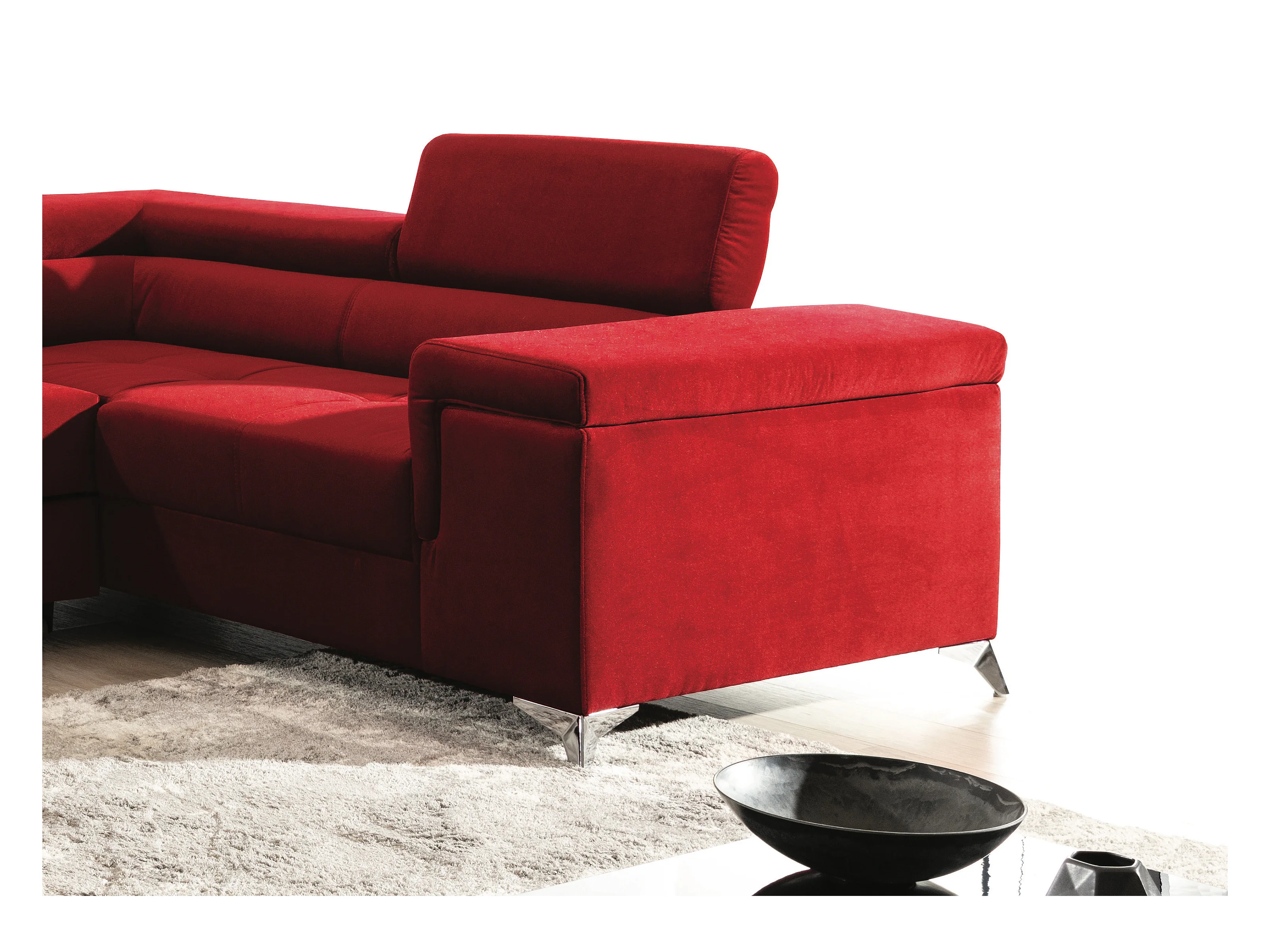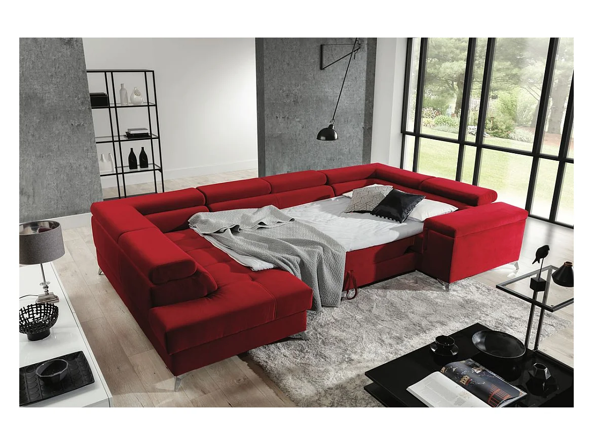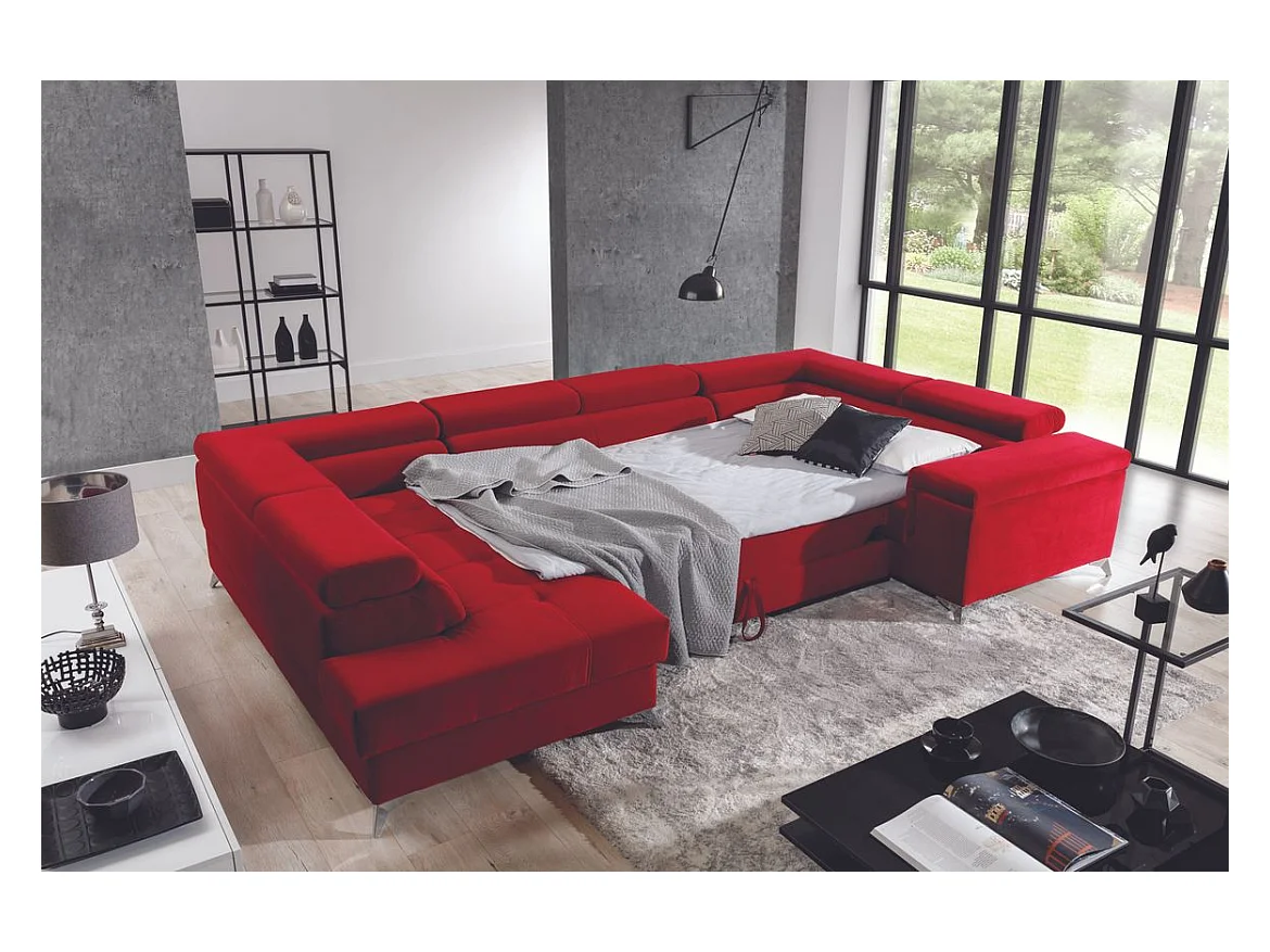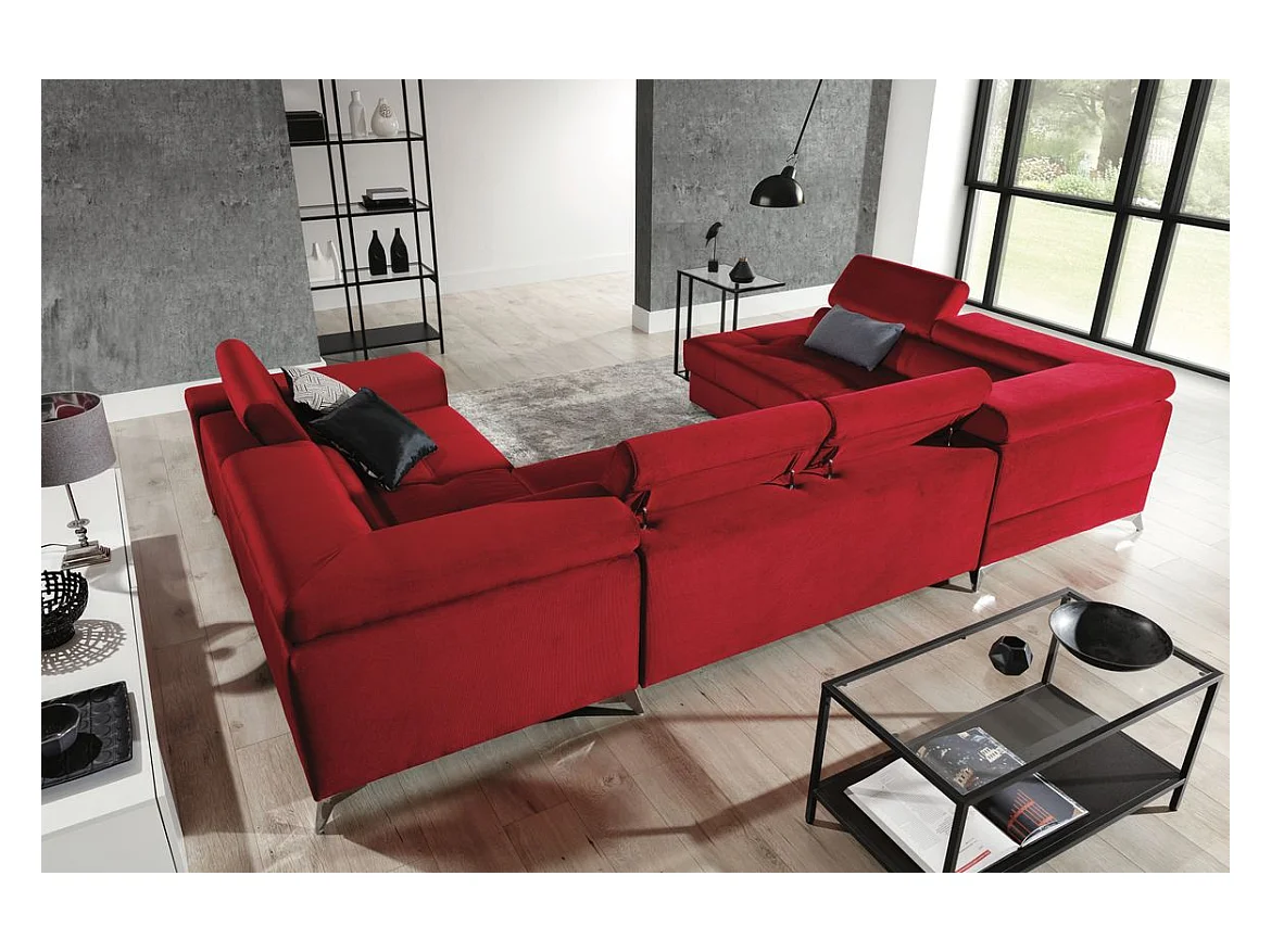 Canapé panoramique convertible tissu anthracite avec coffre de rangement Triano 342cm-Coffre de rangement à gauche