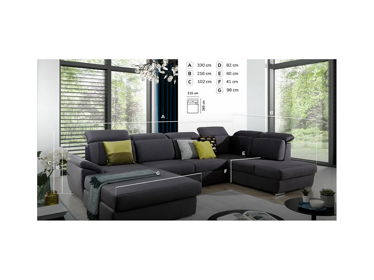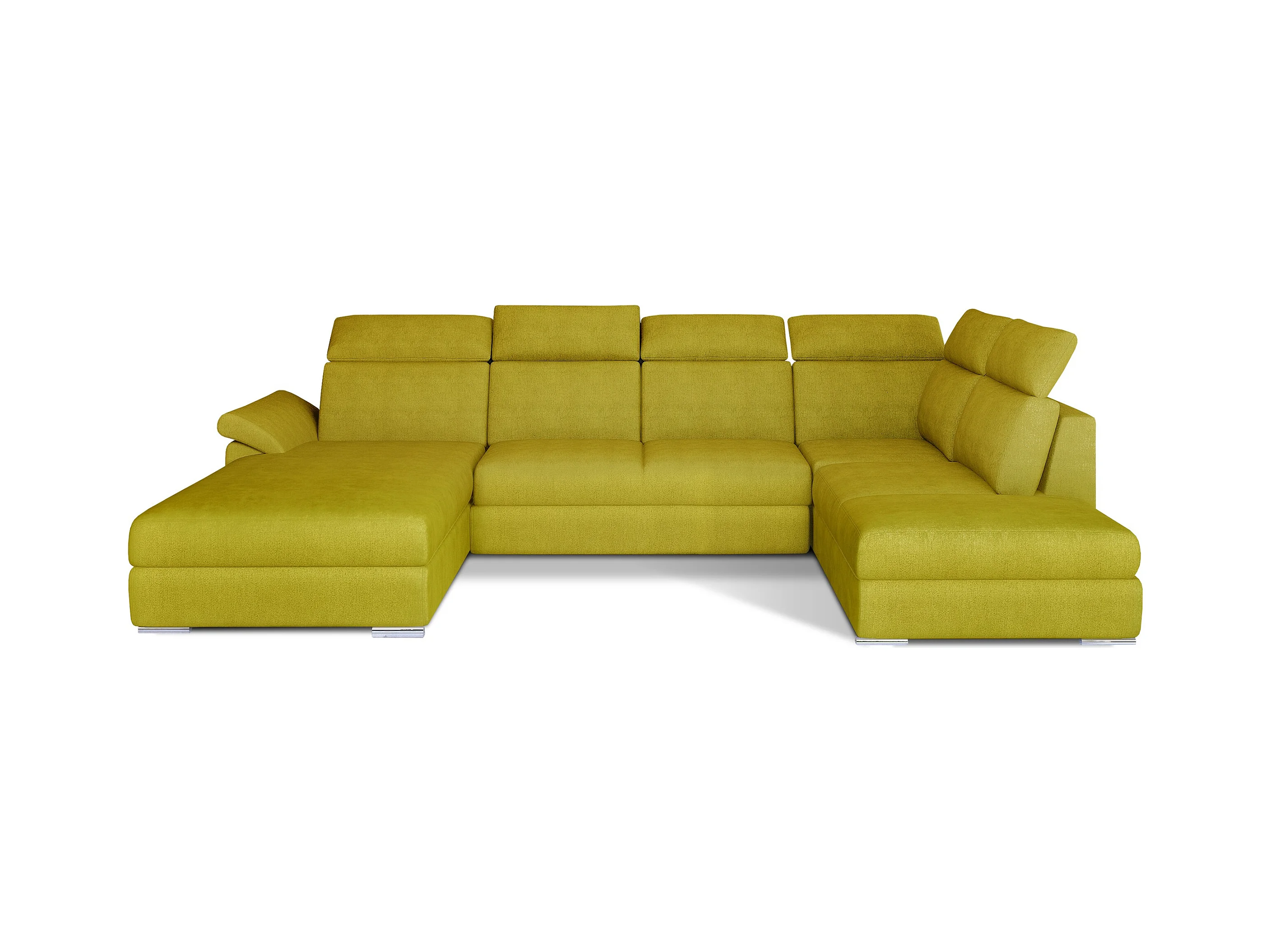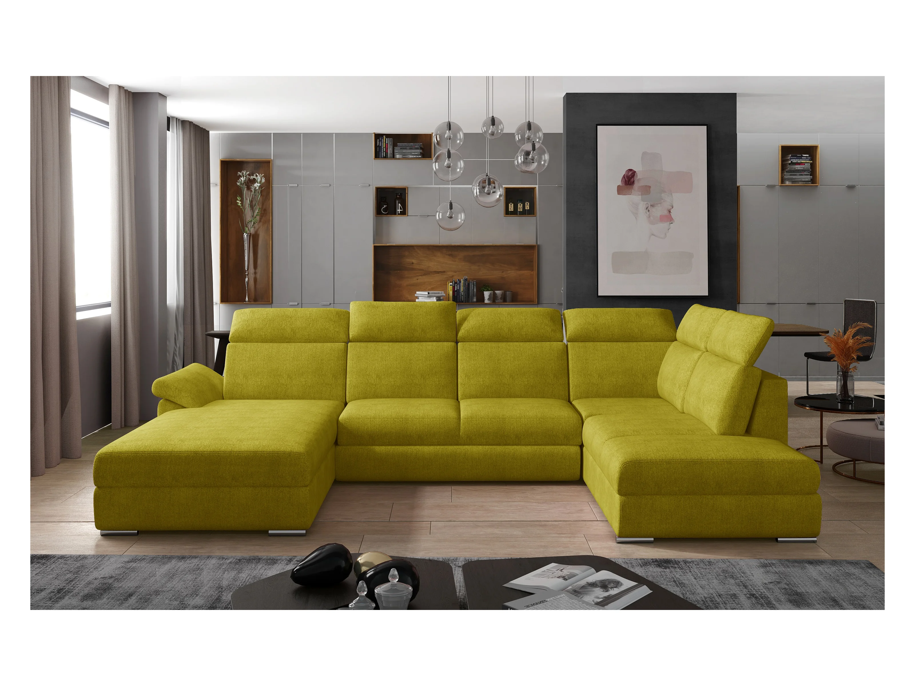 Canapé panoramique convertible tissu jaune coffre de rangement à gauche Levano 330cm