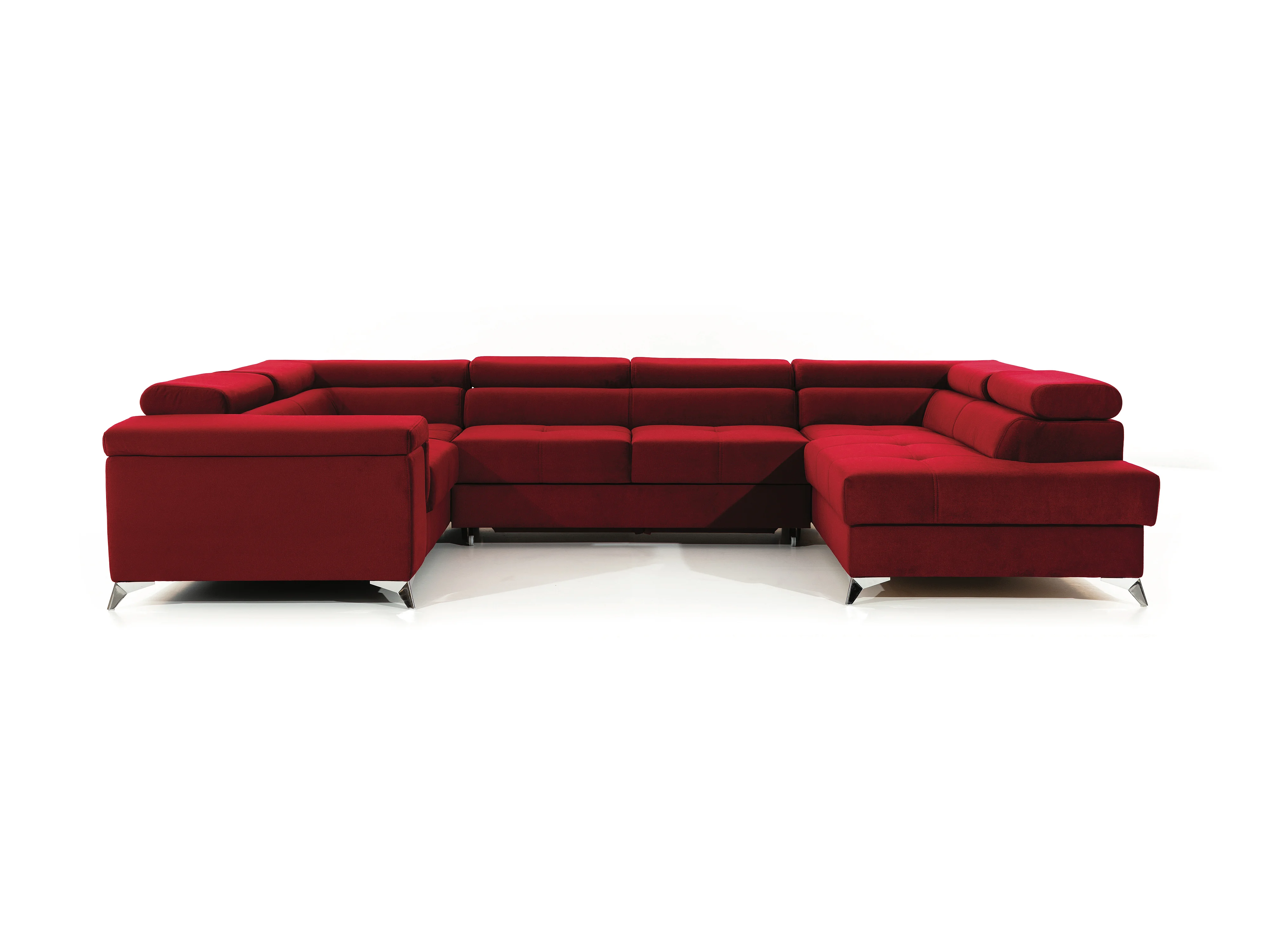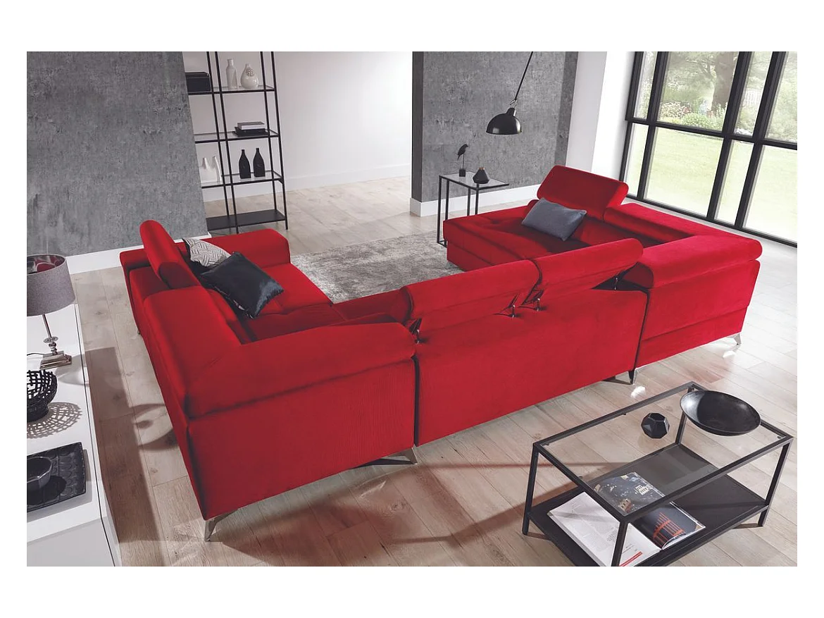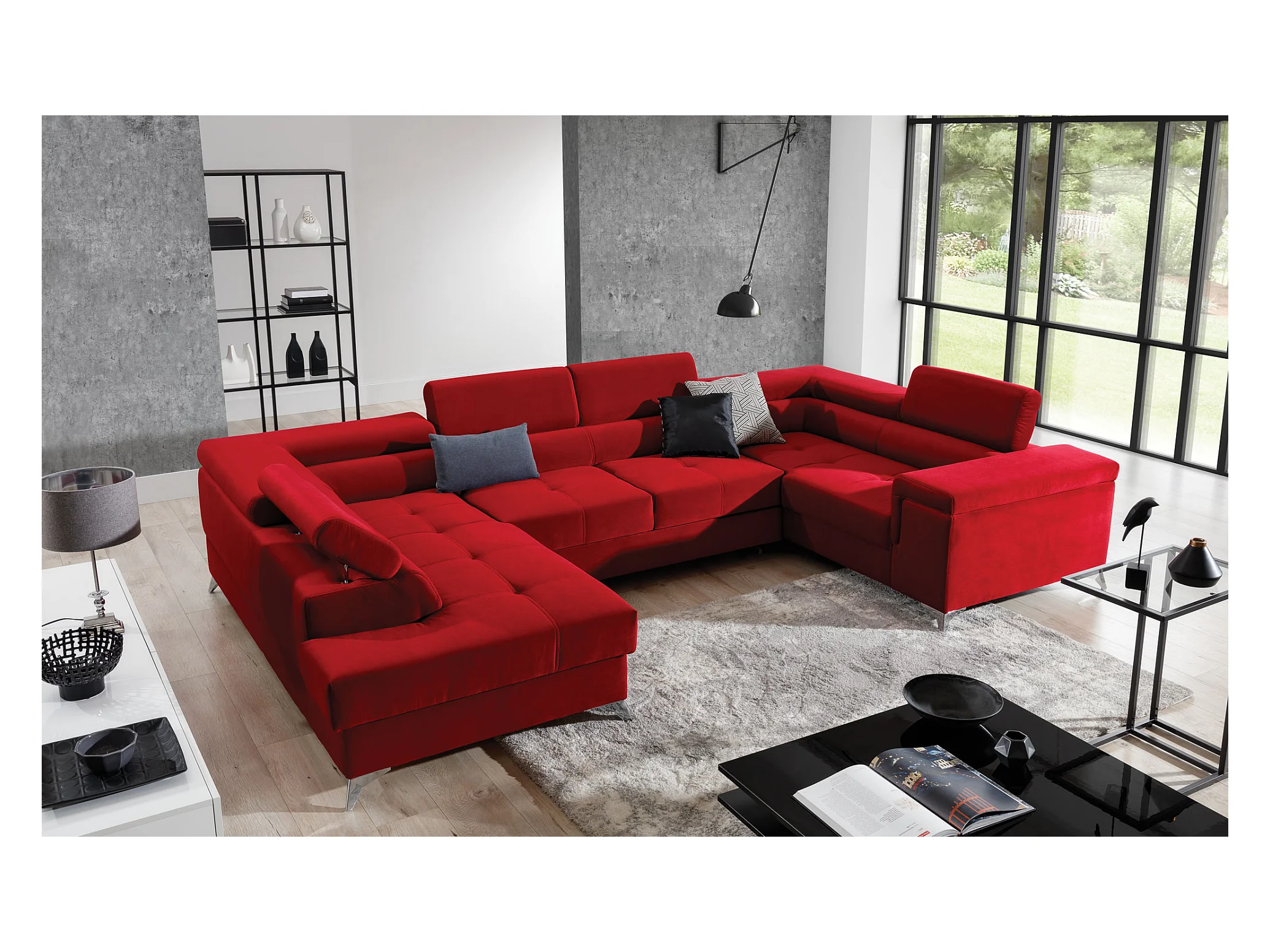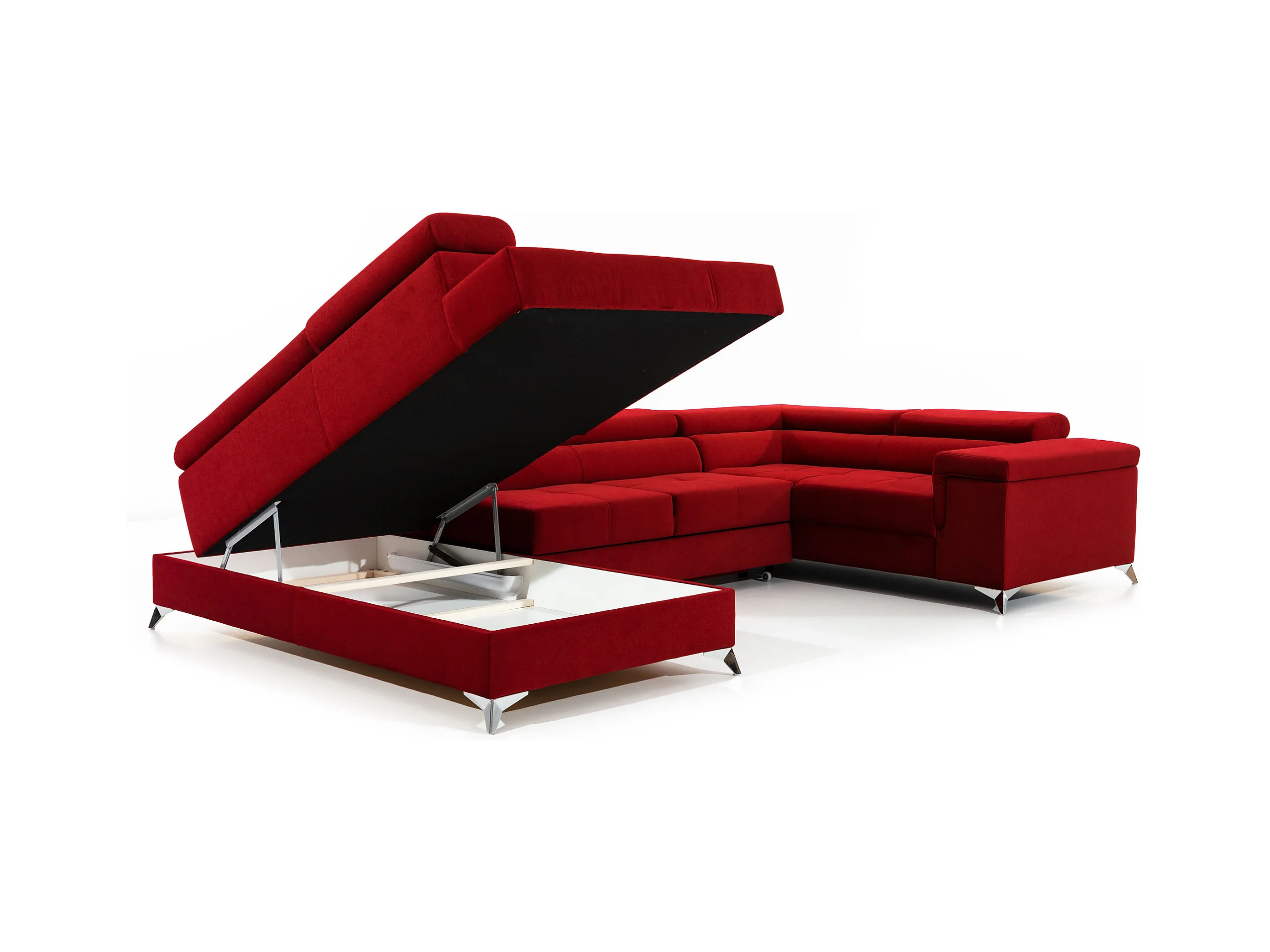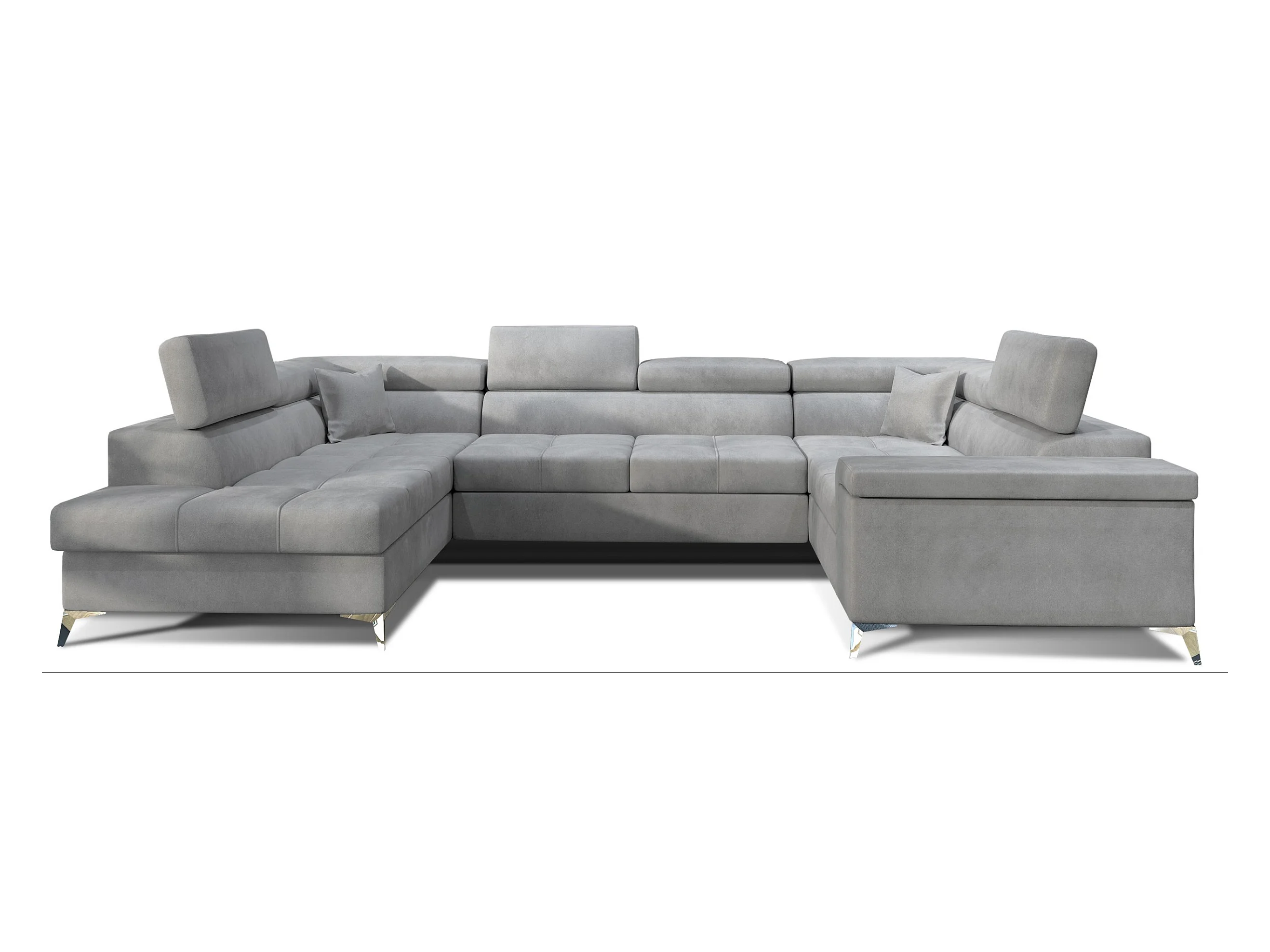 Canapé panoramique convertible velours gris clair avec coffre de rangement Triano 342cm-Coffre de rangement à gauche