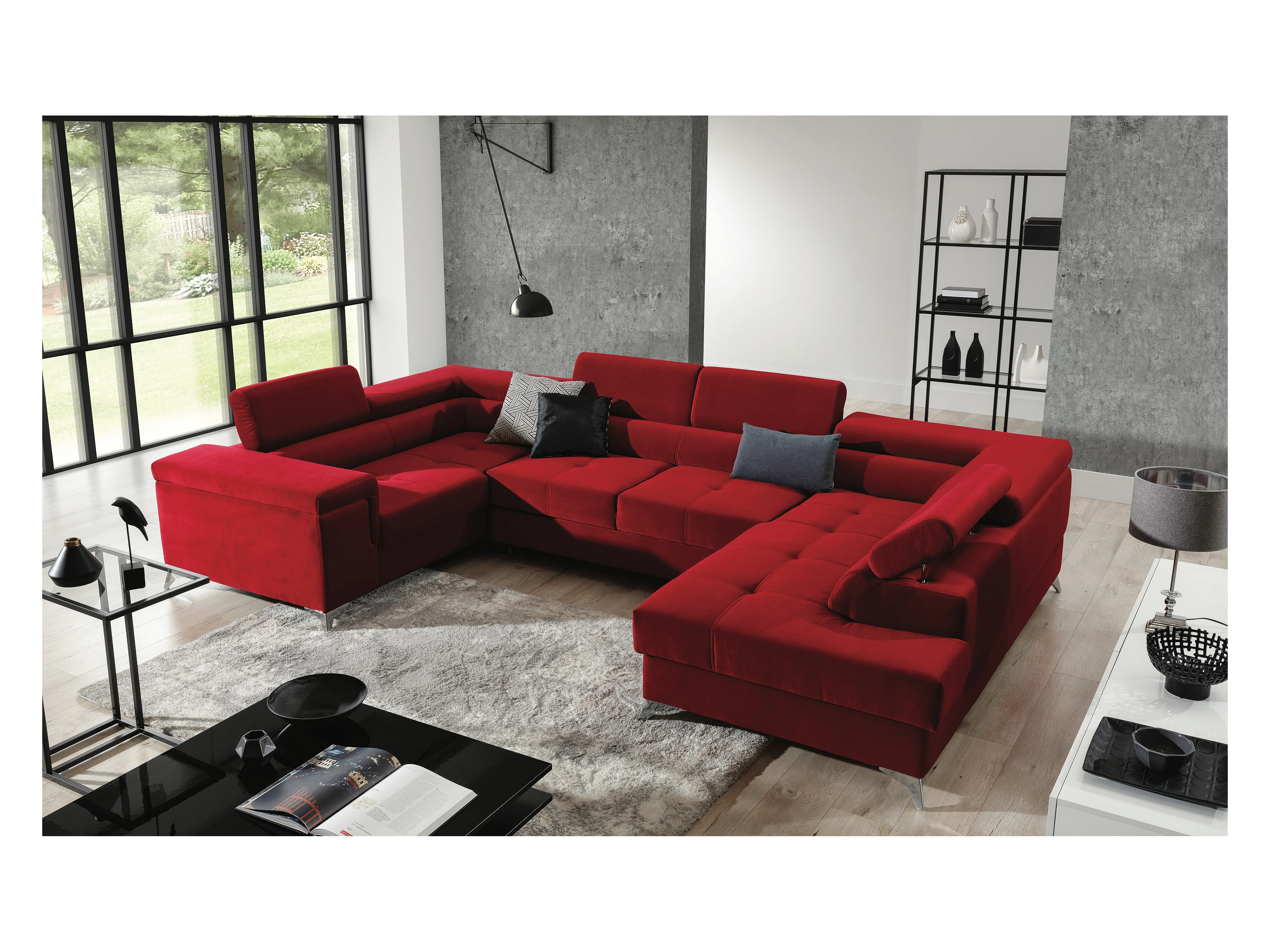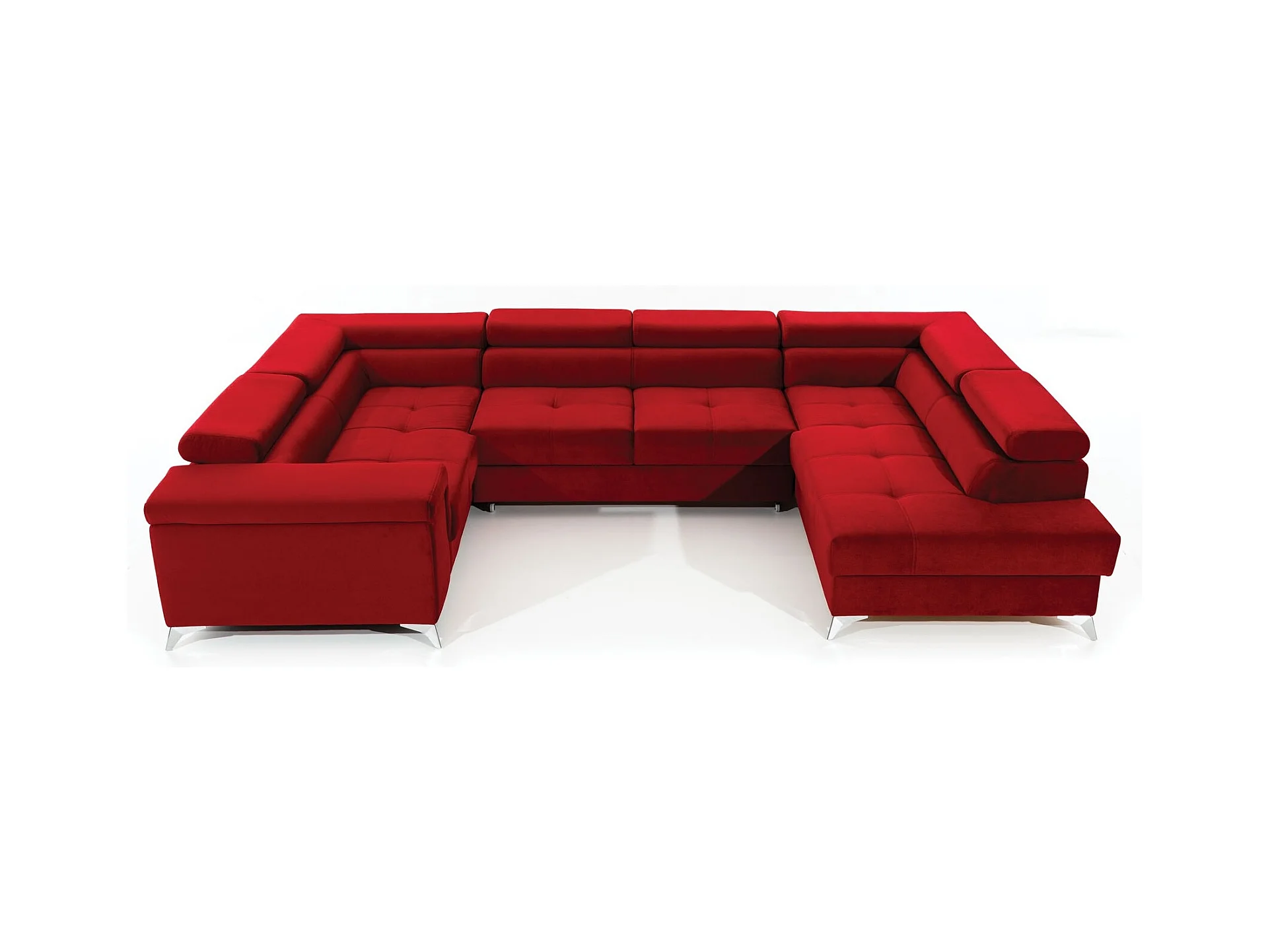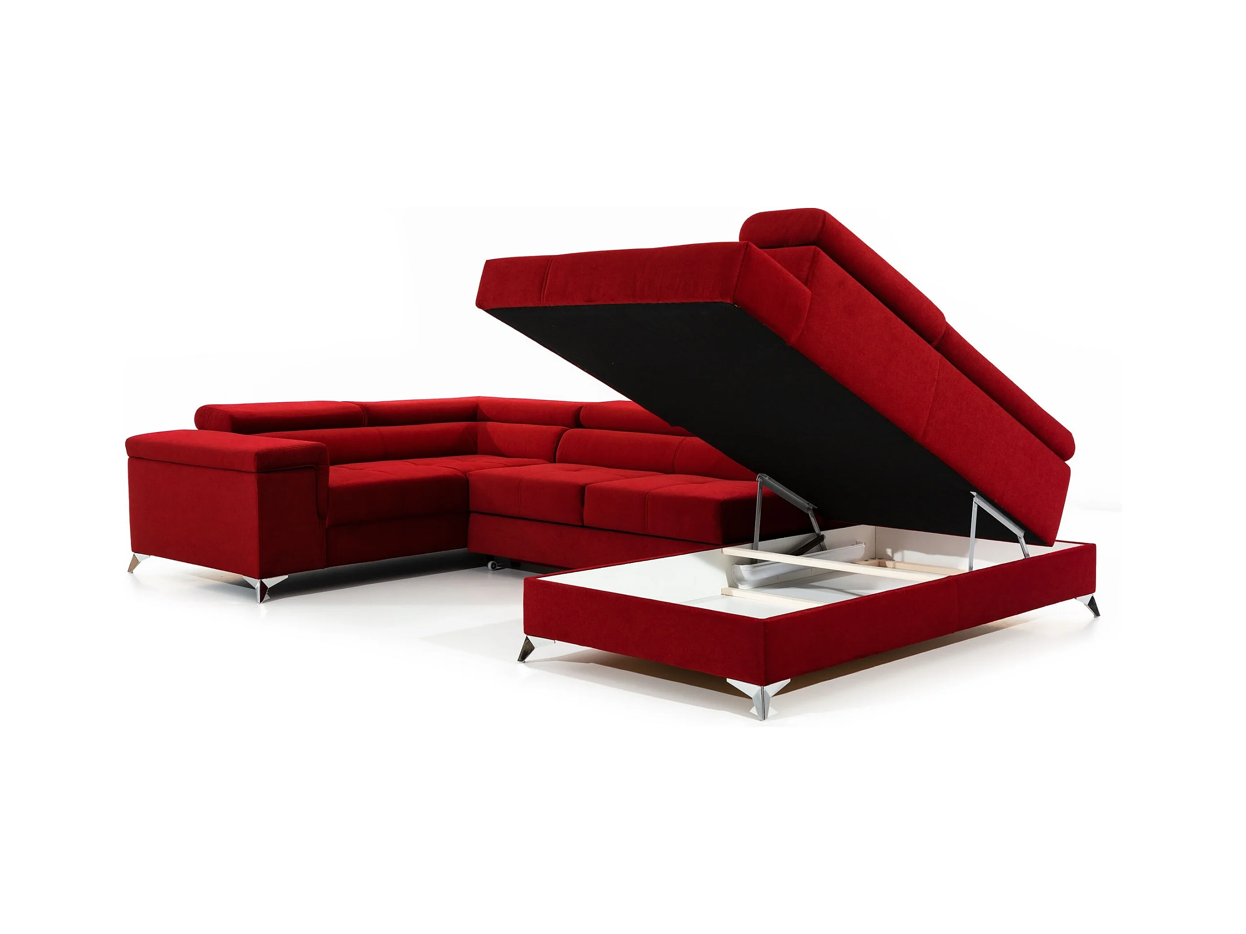 Canapé panoramique convertible velours rouge avec coffre de rangement Triano 342cm-Coffre de rangement à droite