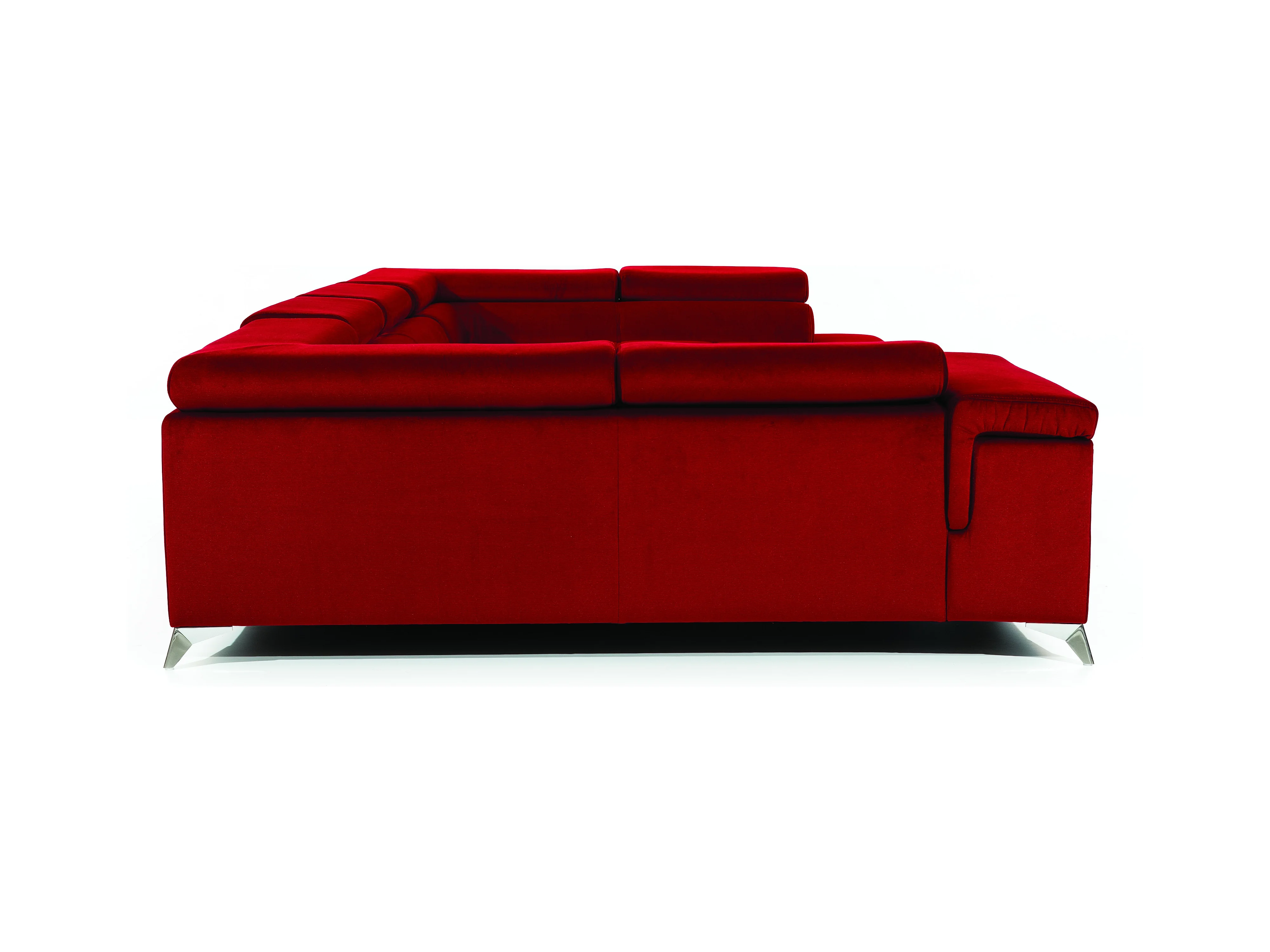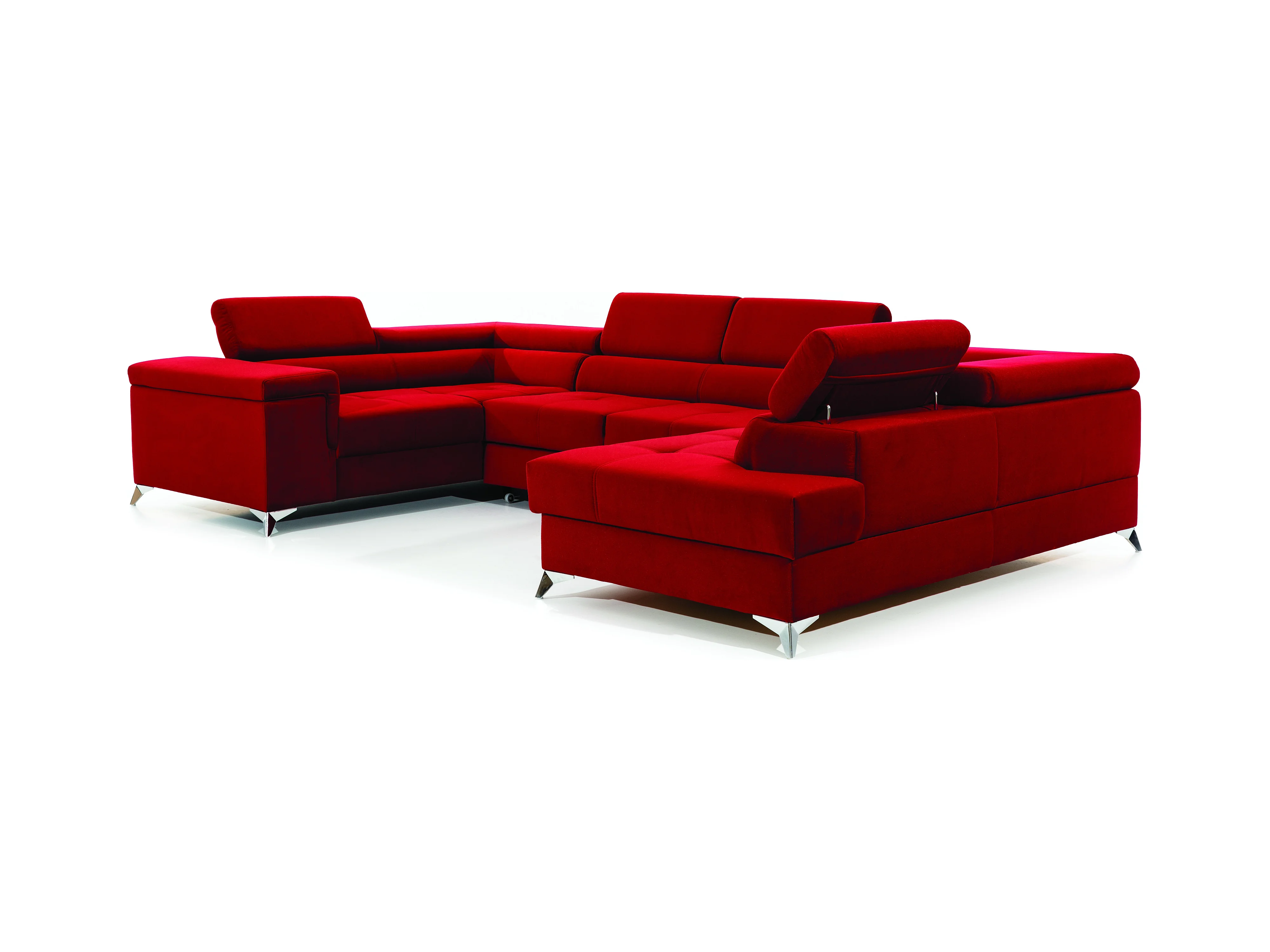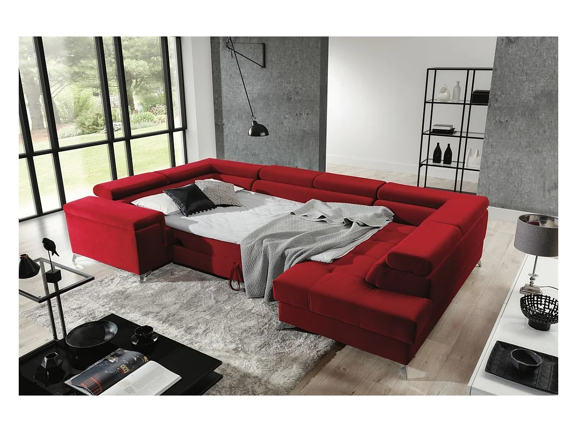 Canapé panoramique convertible velours rouge avec coffre de rangement Triano 342cm-Coffre de rangement à droite