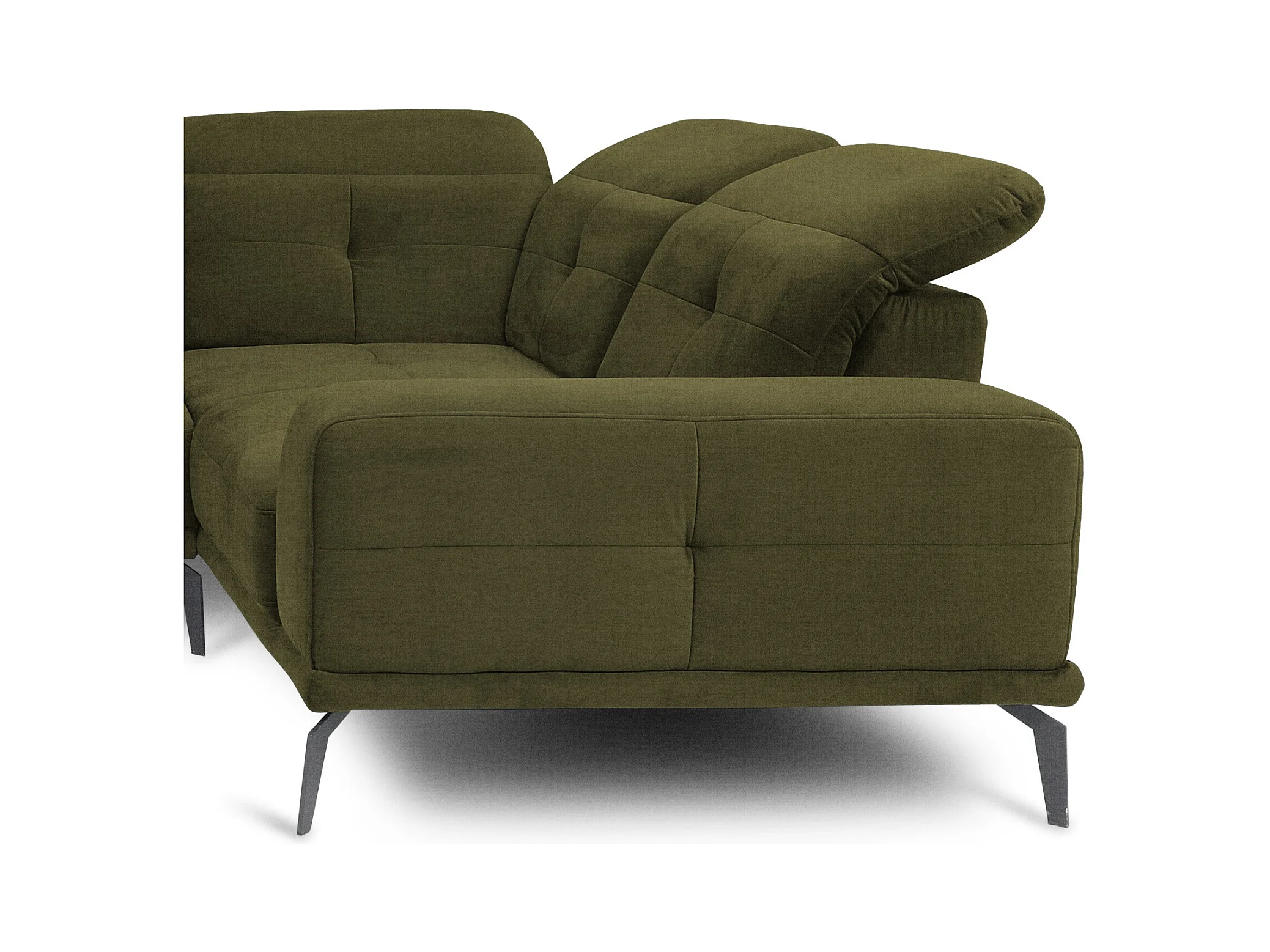 Canapé panoramique design tissu vert olive têtières angle droit avec accoudoir Stan 350cm
