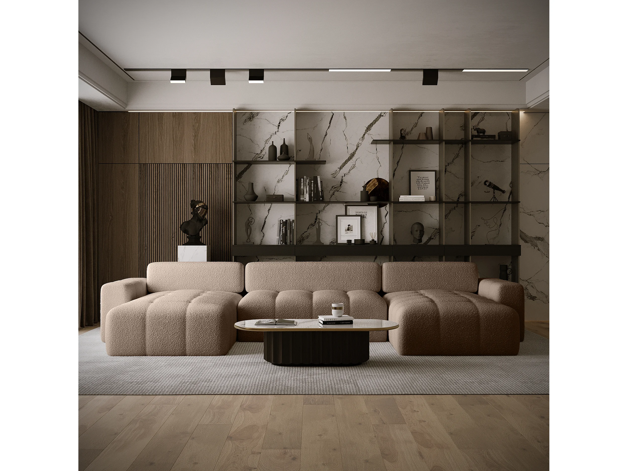 CANAPÉ PANORAMIQUE en tissu Bouclé 10 places Bornum U, Marron