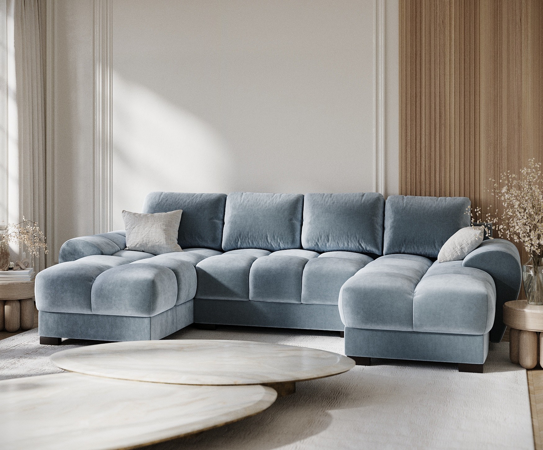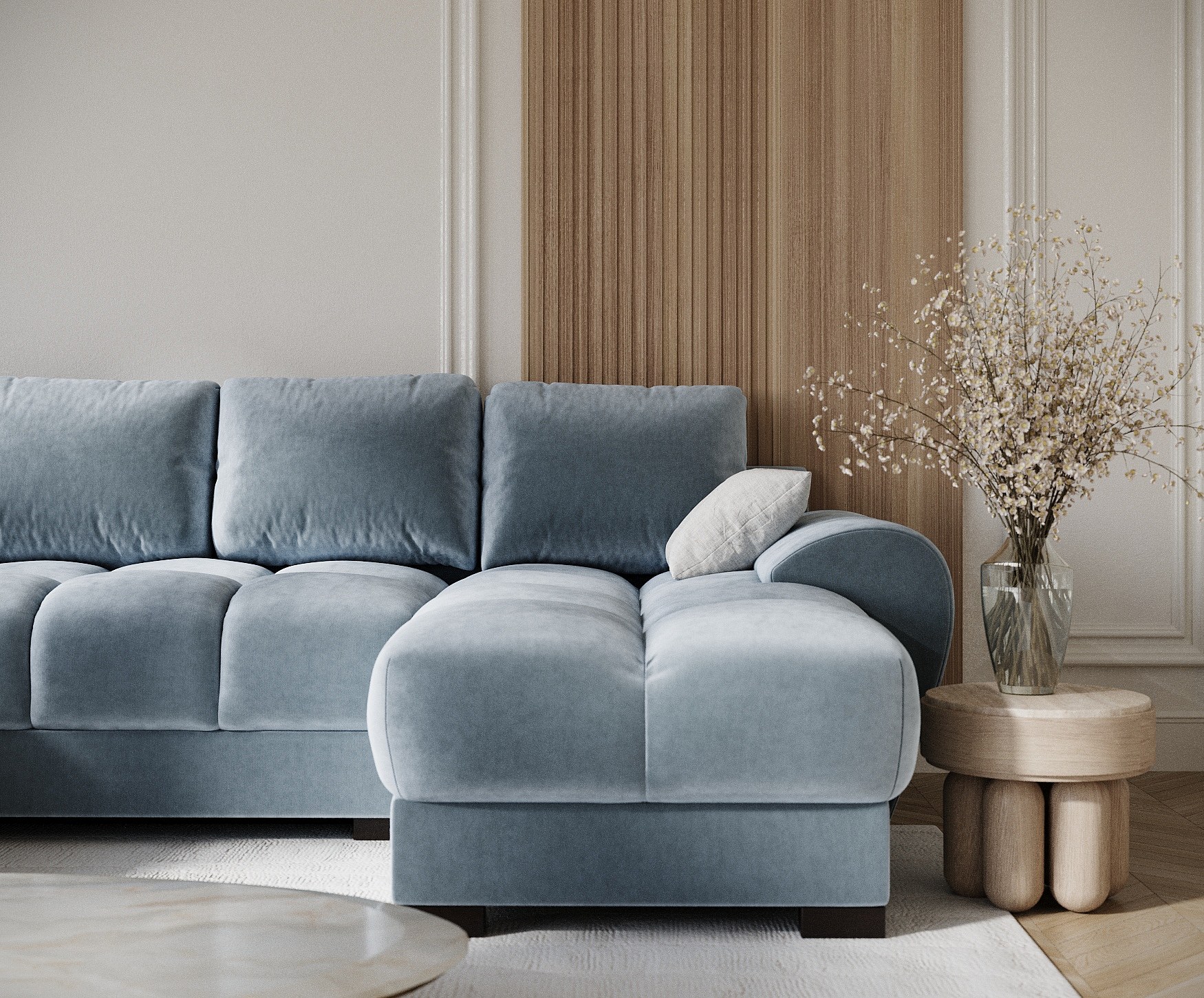 Canapé panoramique en tissu velours Peebles - 6 places - bleu