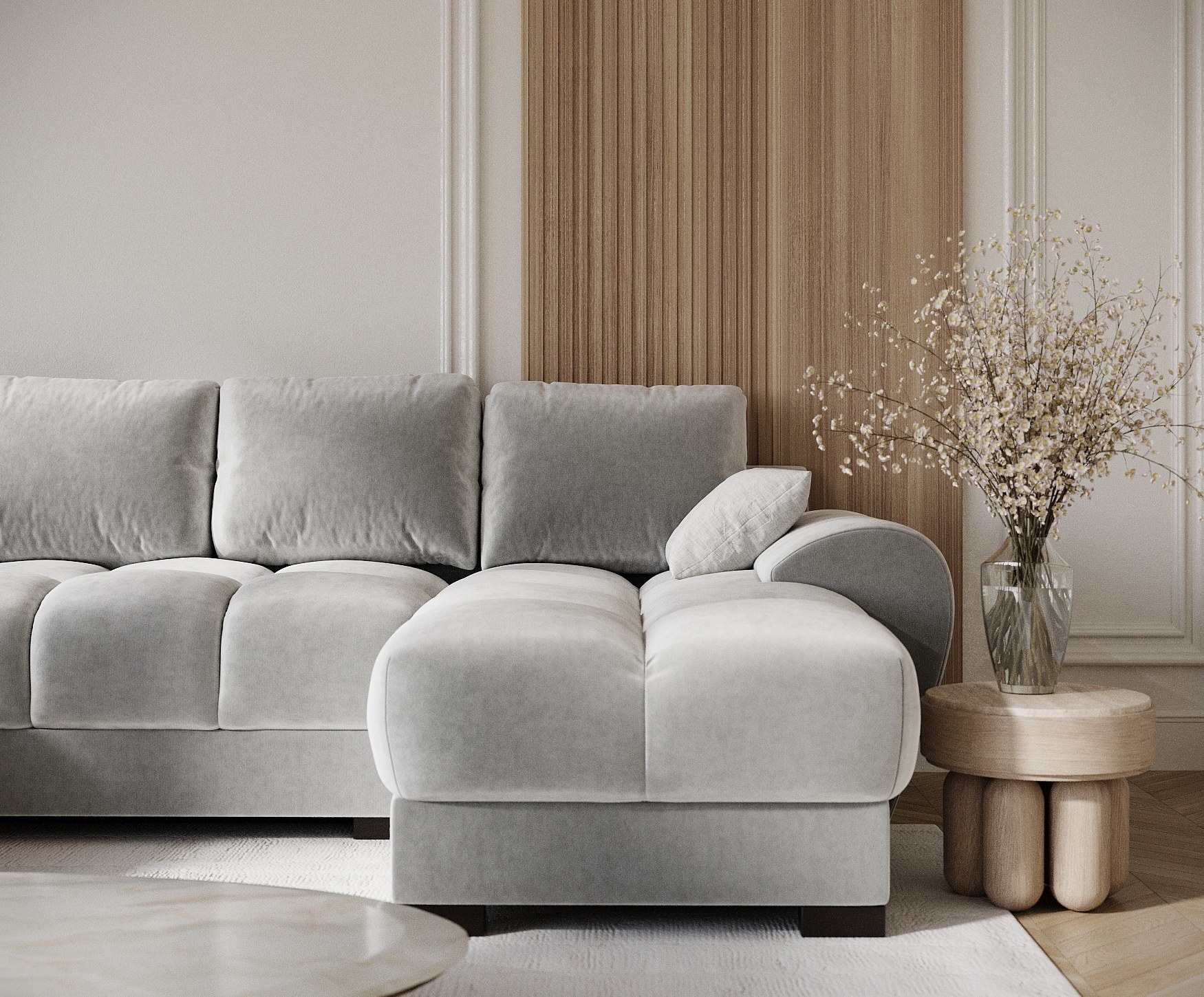 Canapé panoramique en tissu velours Peebles - 6 places - gris clair