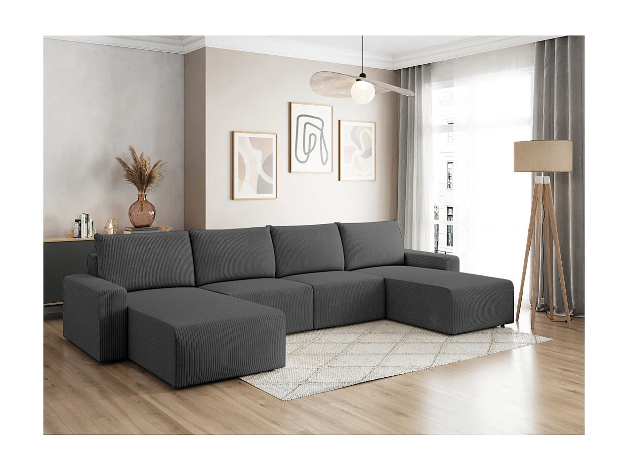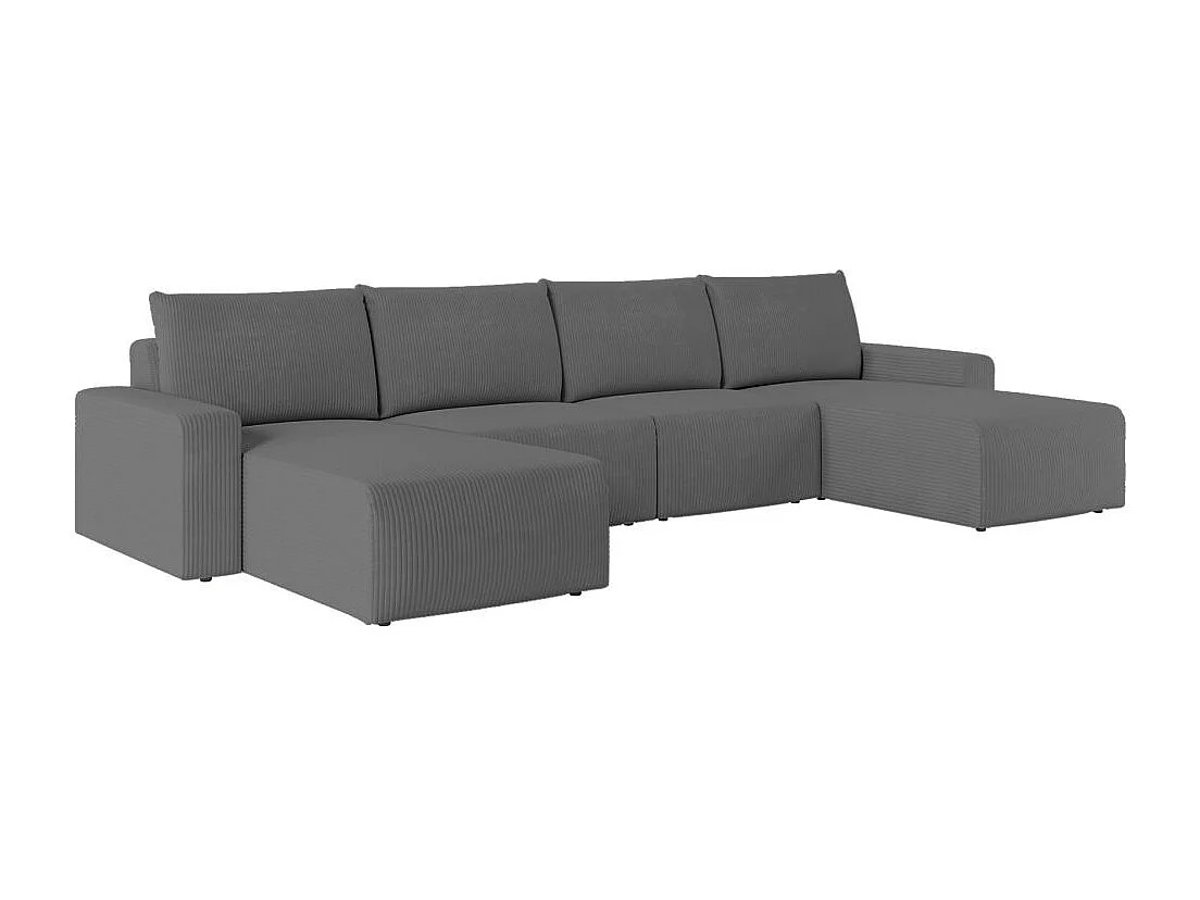 Canapé panoramique fixe 6 places ROMANE en velours côtelé - Gris