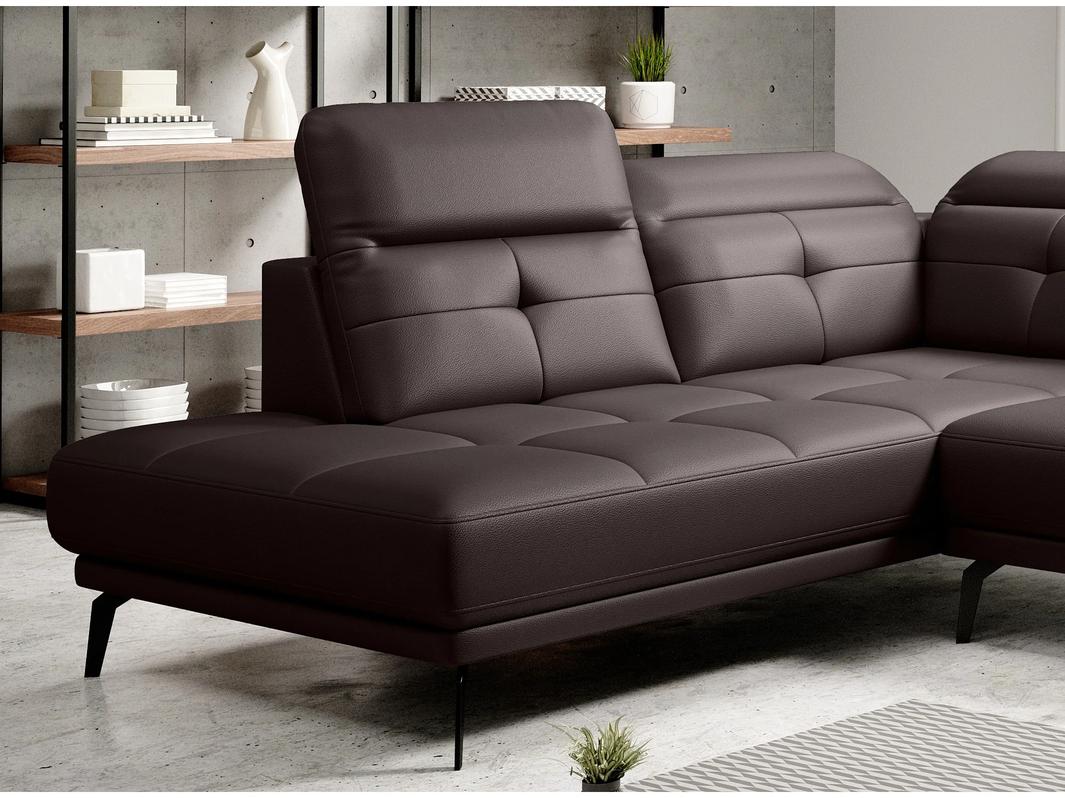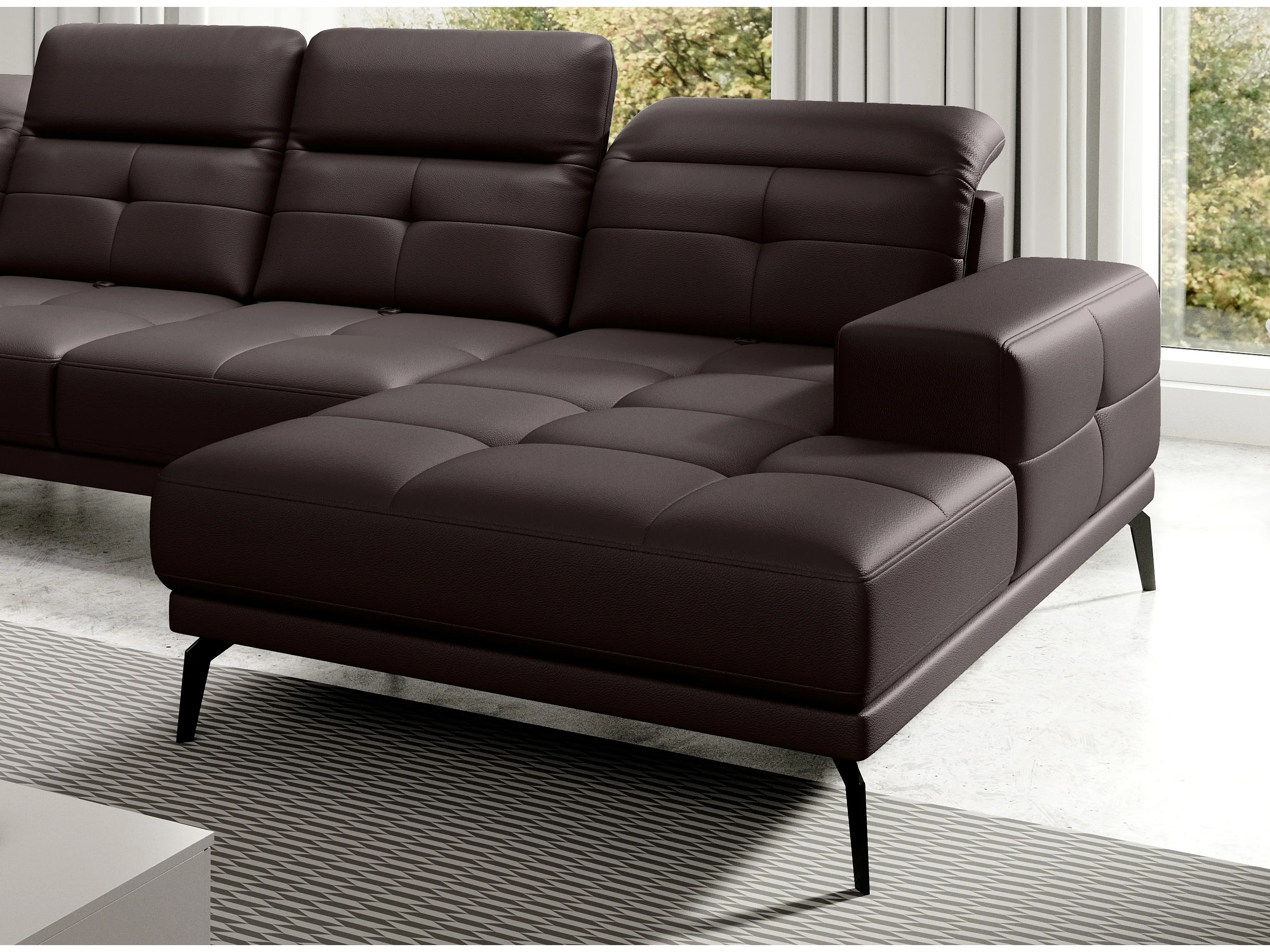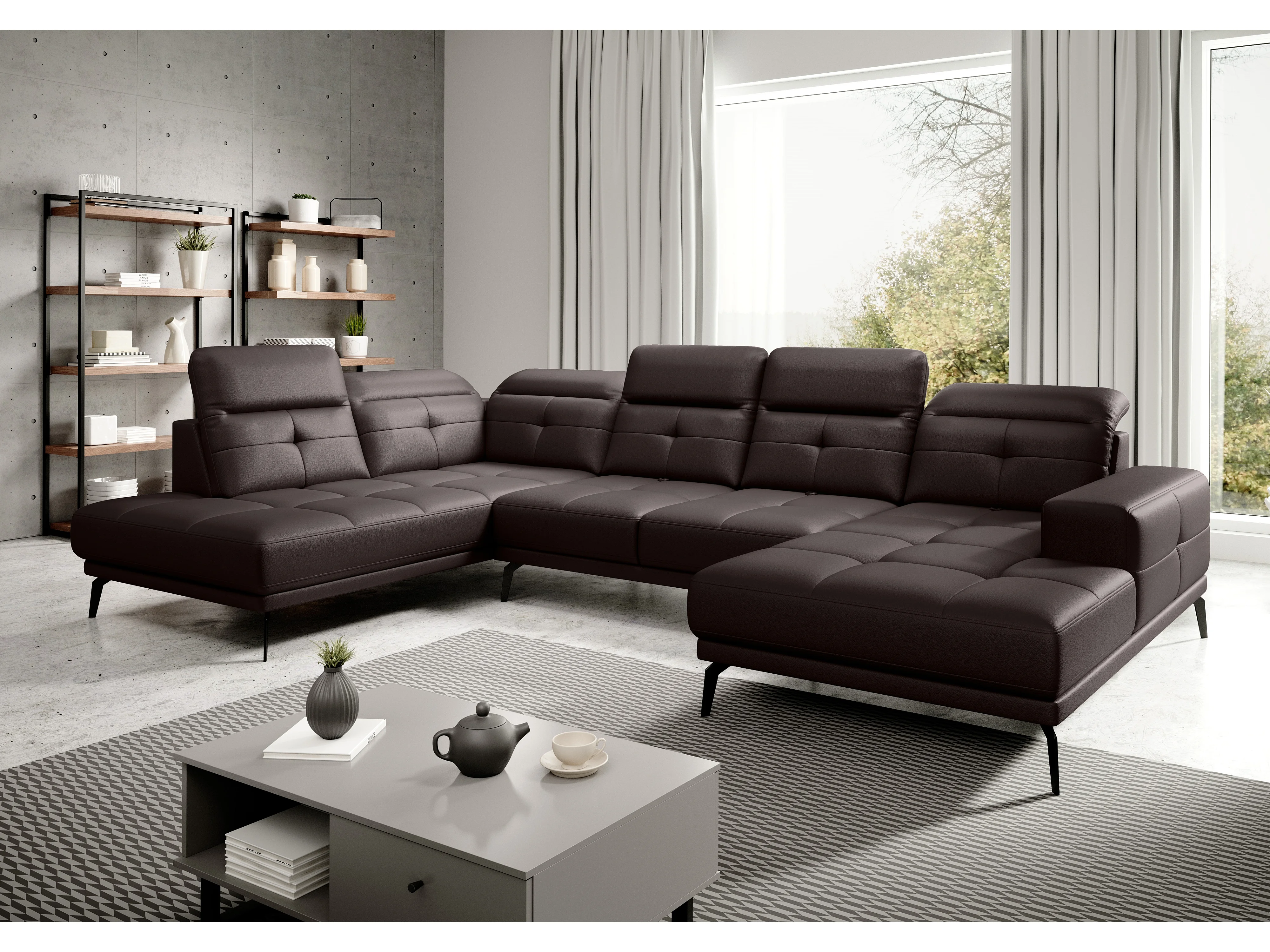 Canapé panoramique moderne simili cuir marron angle gauche Versus 350cm
