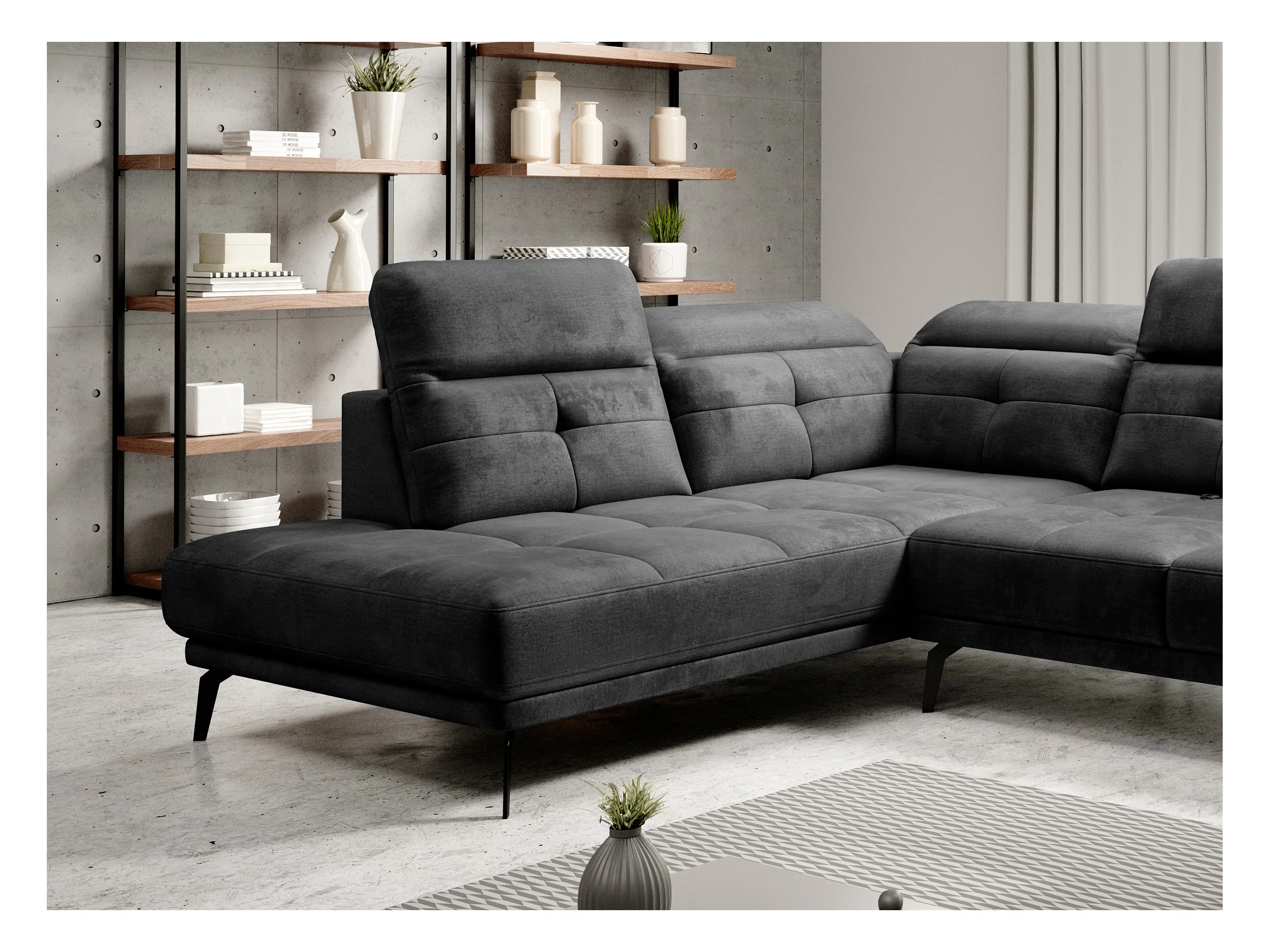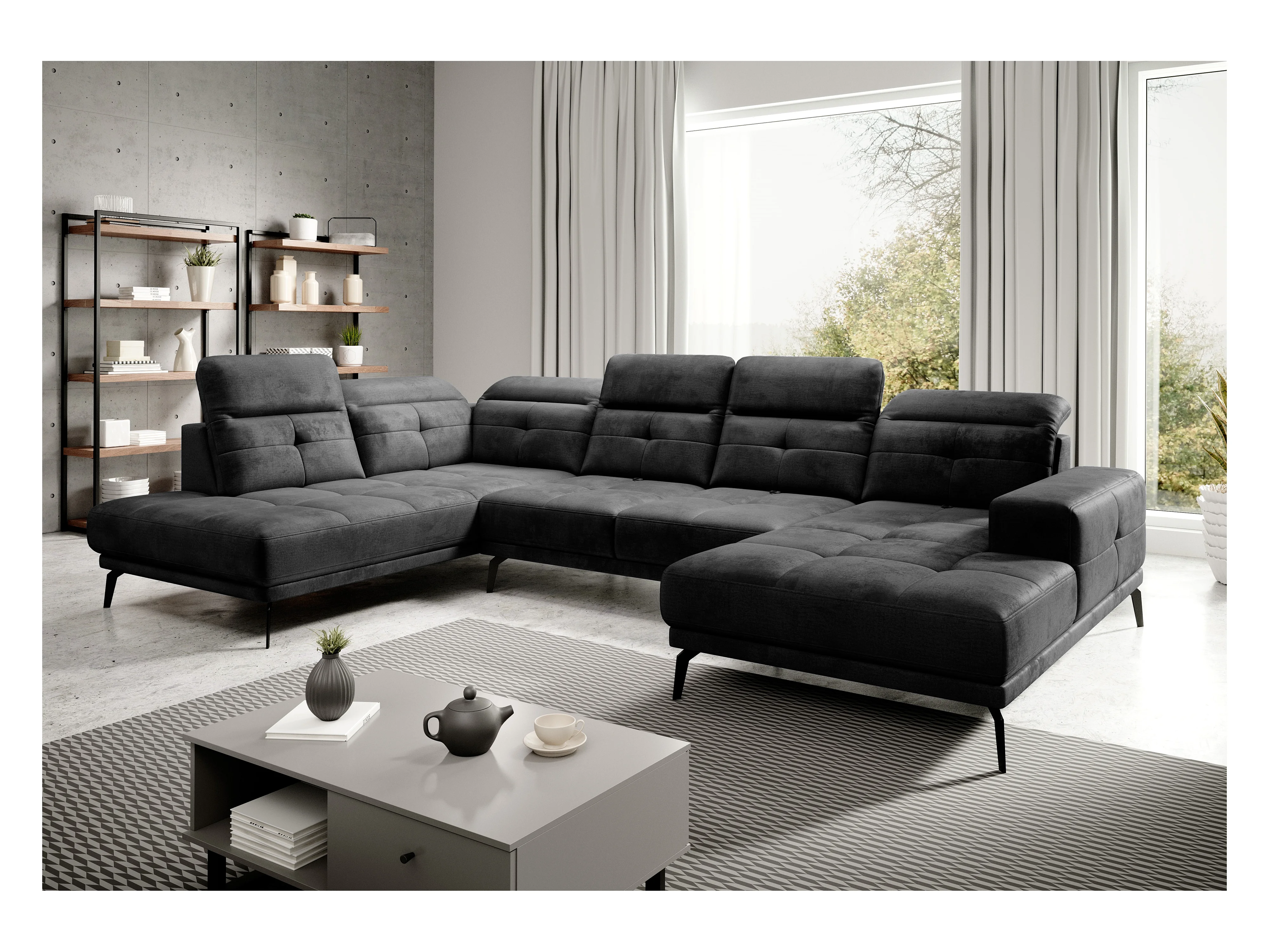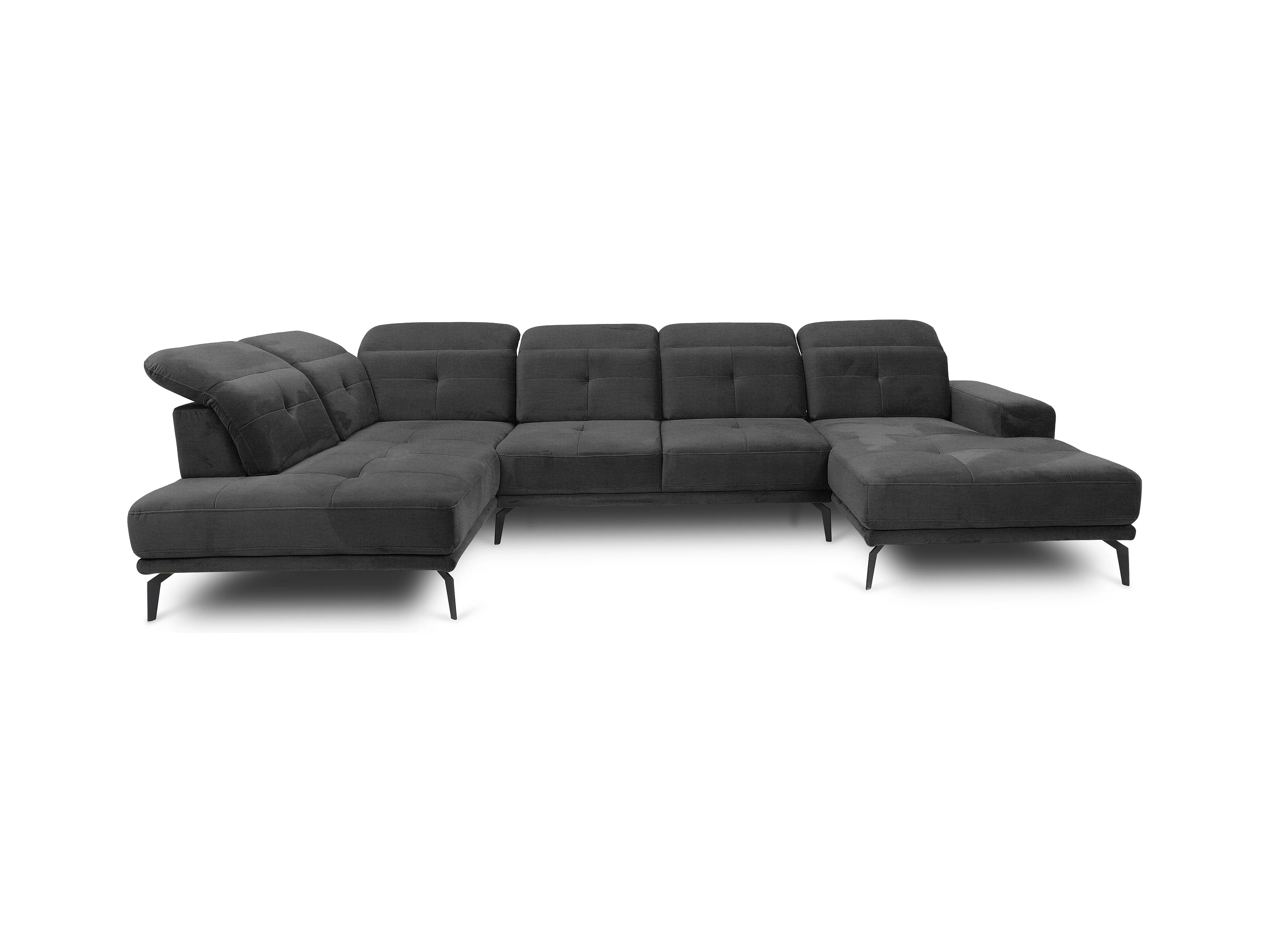 Canapé panoramique moderne tissu doux noir têtières angle gauche Versus 350cm