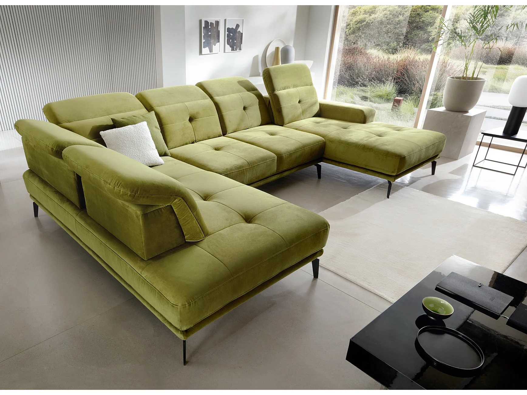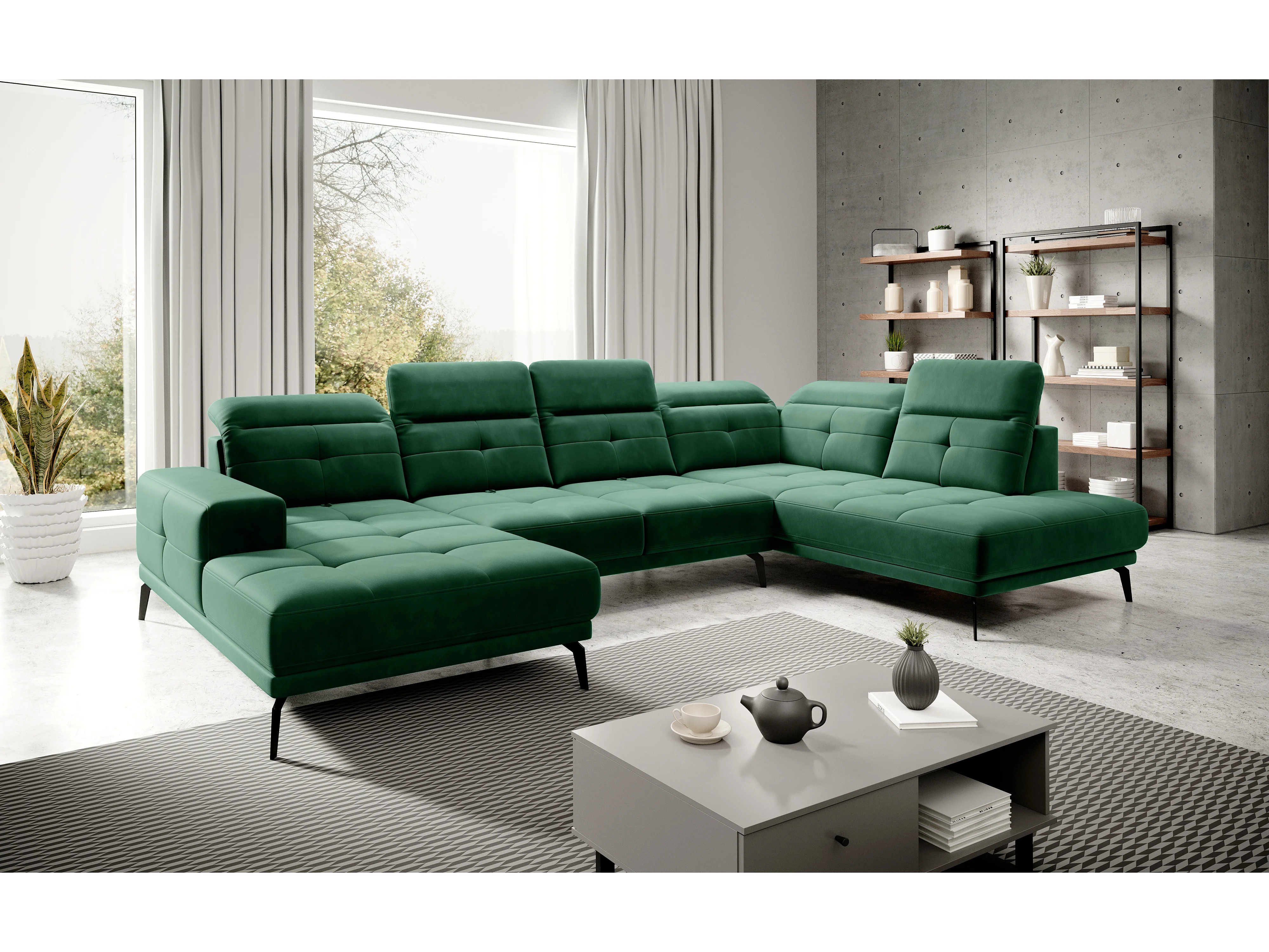 Canapé d’angle panoramique VERSUS tissu – Appuie-têtes réglables-Vert-angle droit