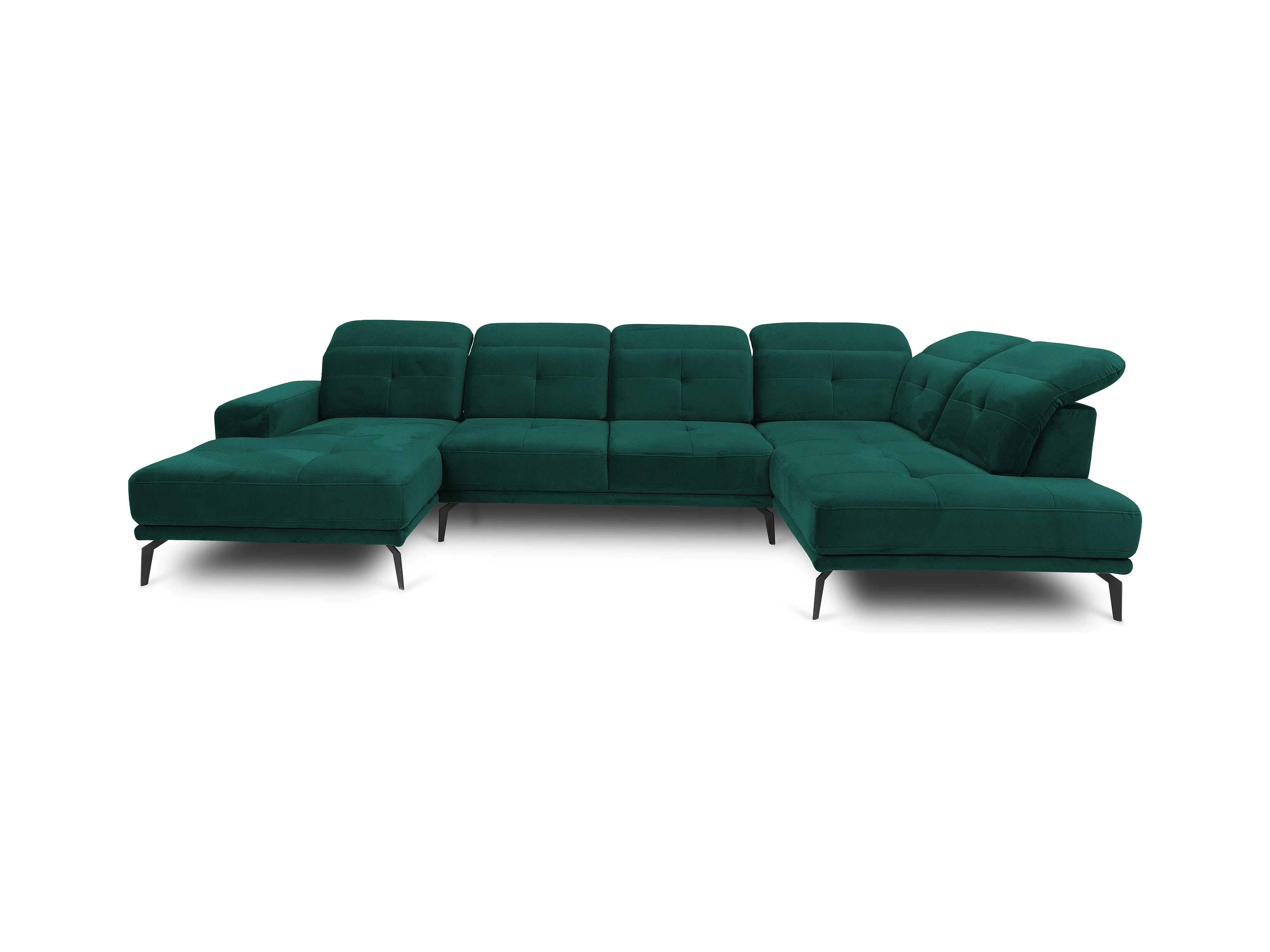Canapé panoramique moderne velours vert foncé têtières angle droit Versus 350cm