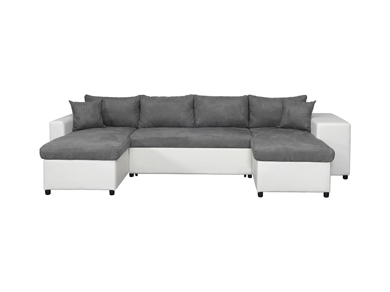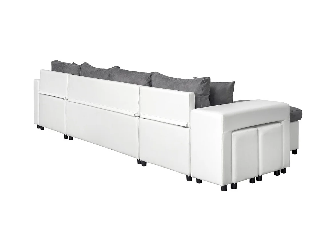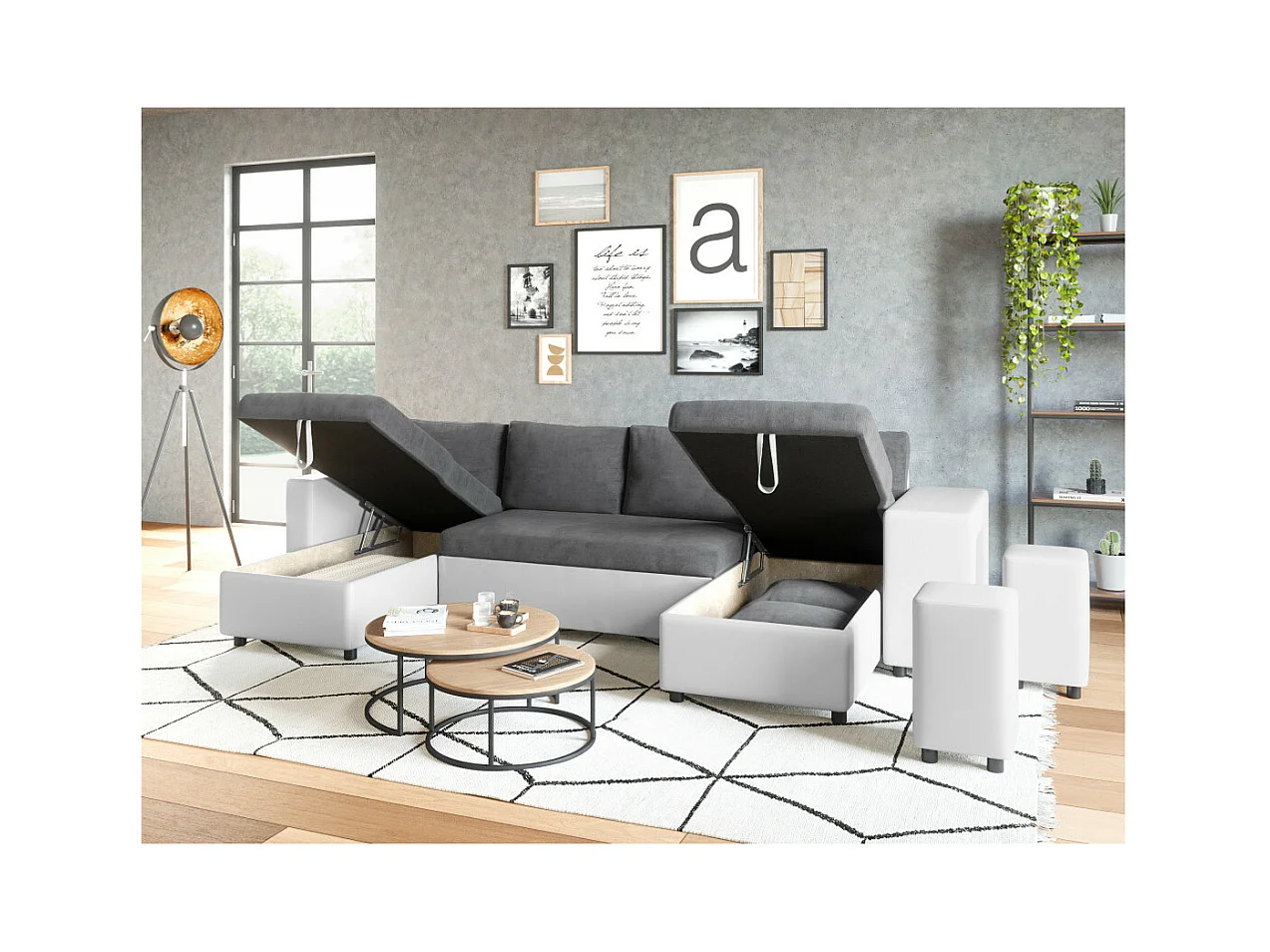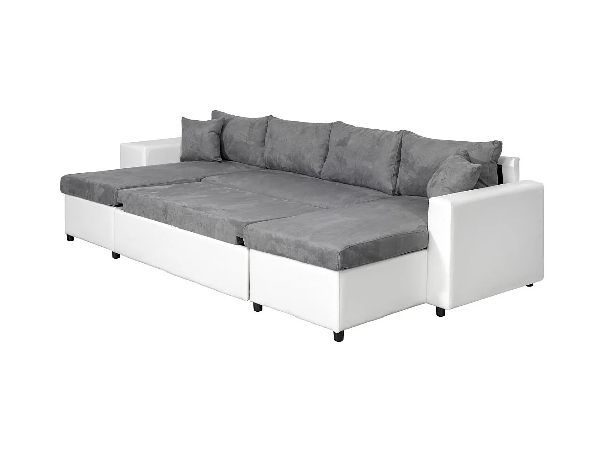 Canapé panoramique Oslo convertible avec coffres, poufs à droite - Simili/Microfibre - Blanc/Gris - L311 x P146 x H81cm - Loungitude