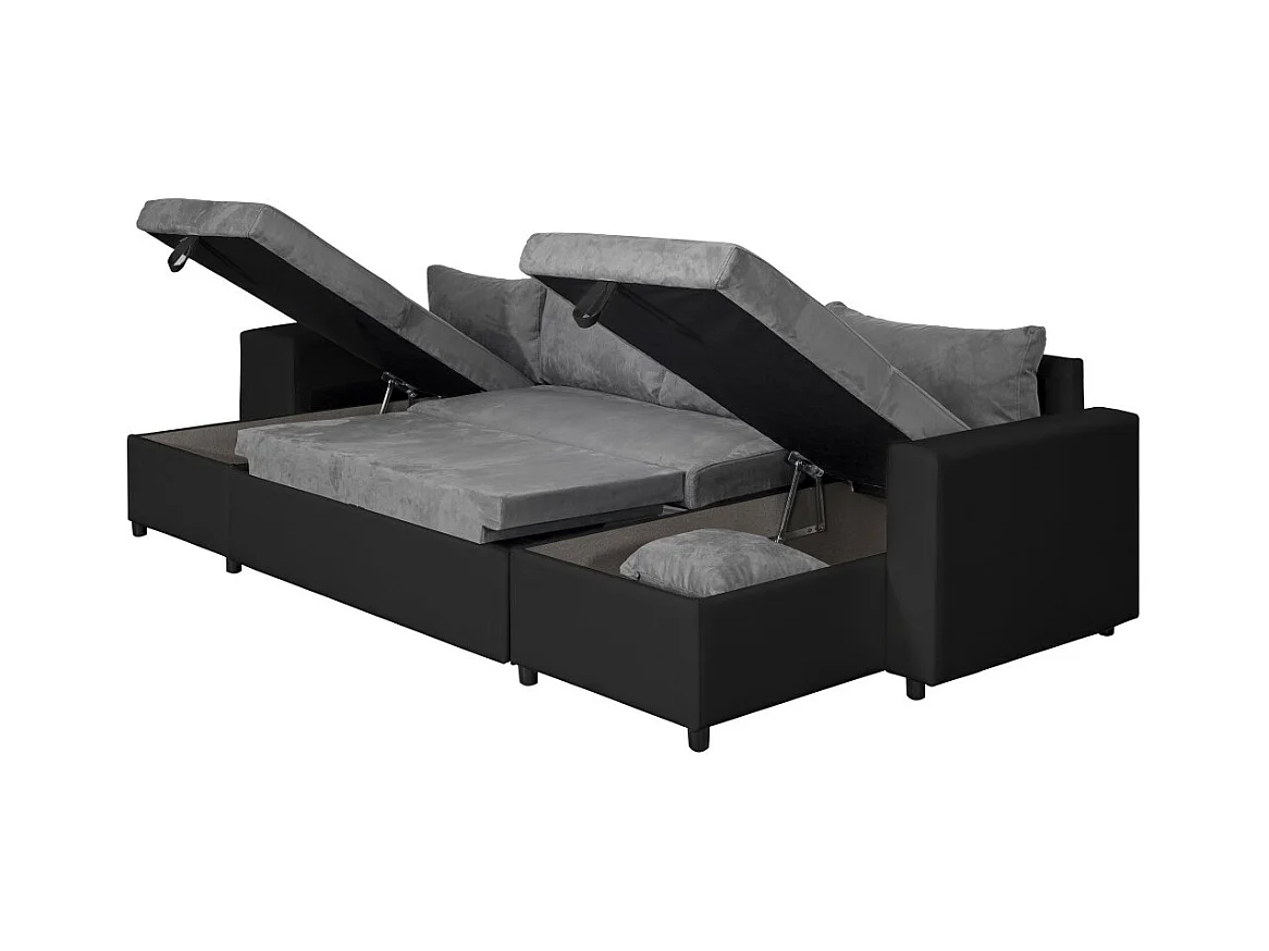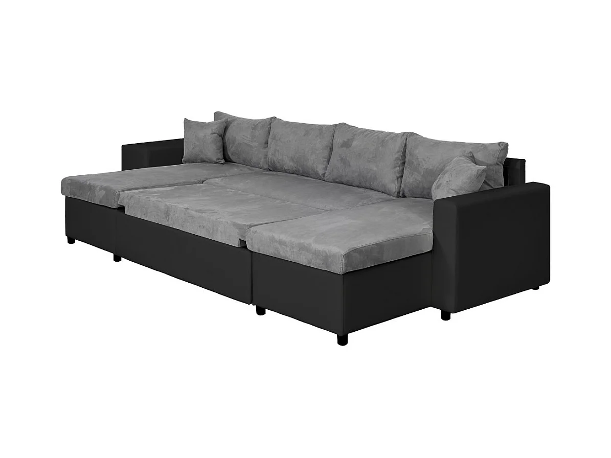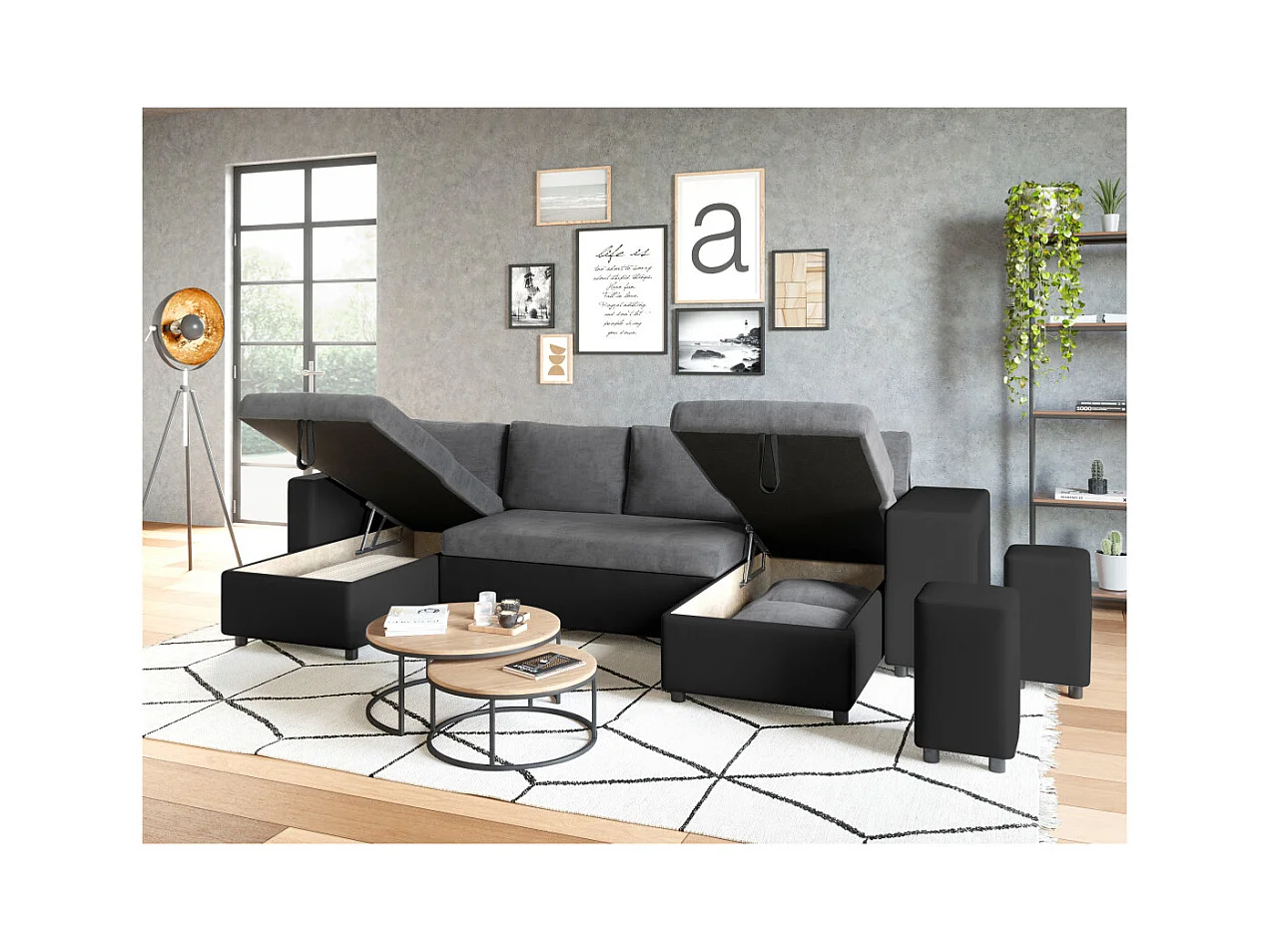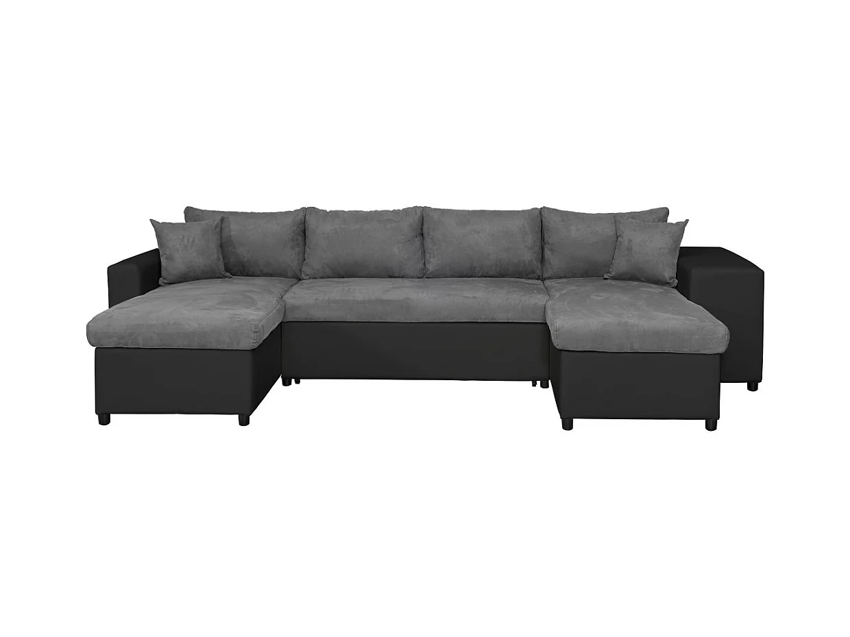 Canapé panoramique Oslo convertible avec coffres, poufs à gauche - Simili/Microfibre - Noir/Gris - L311 x P146 x H81cm - Loungitude