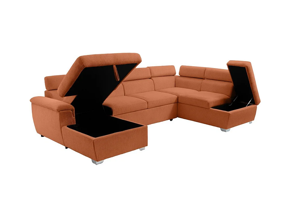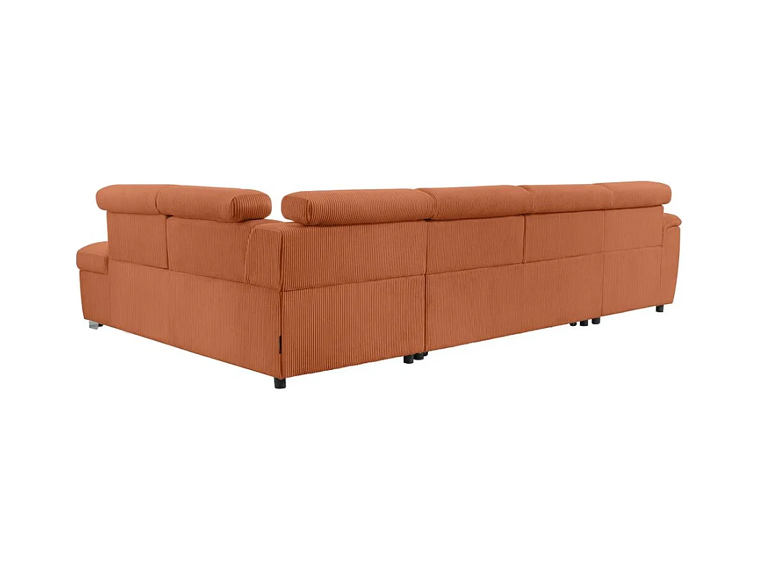 Canapé panoramique PAOLA 6 places convertible avec 2 coffres en velours côtelé terracotta