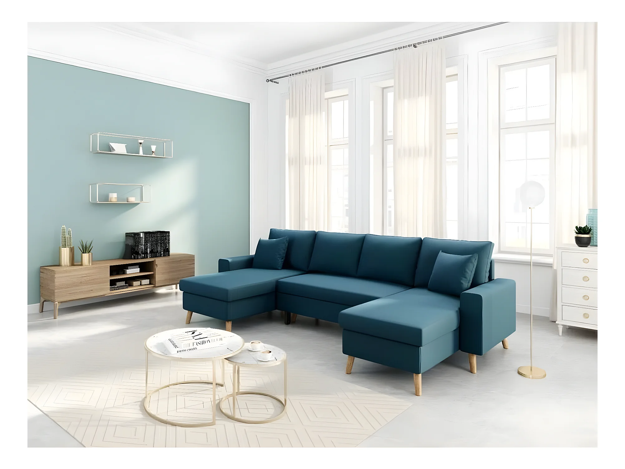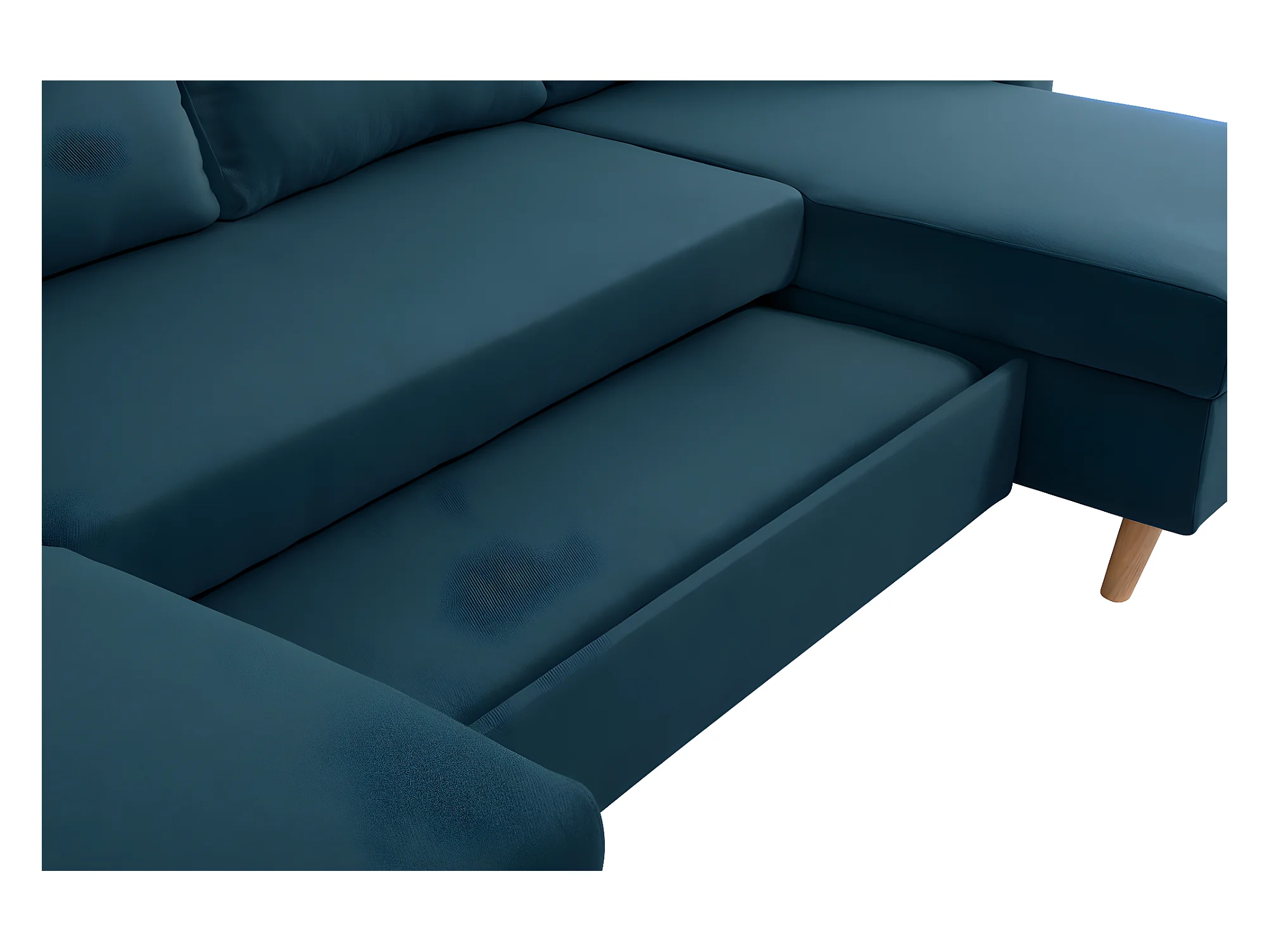Canapé Panoramique Scandinave Convertible 2 Coffres en Tissu Déperlant